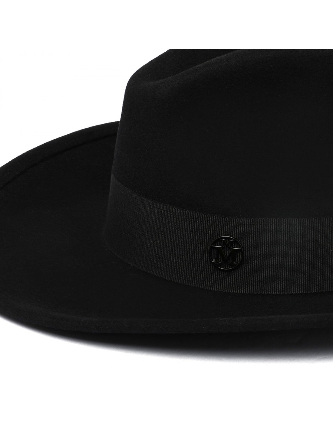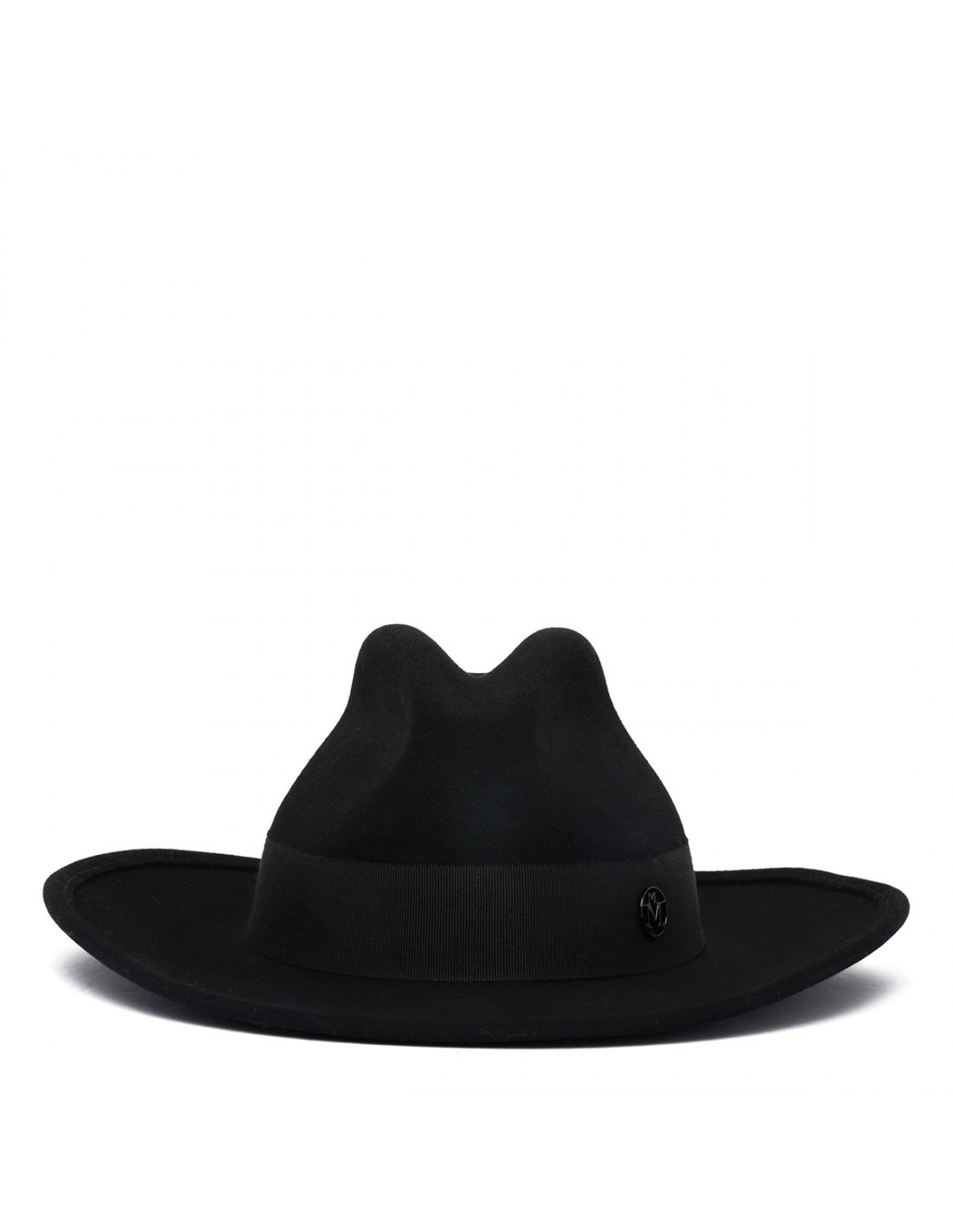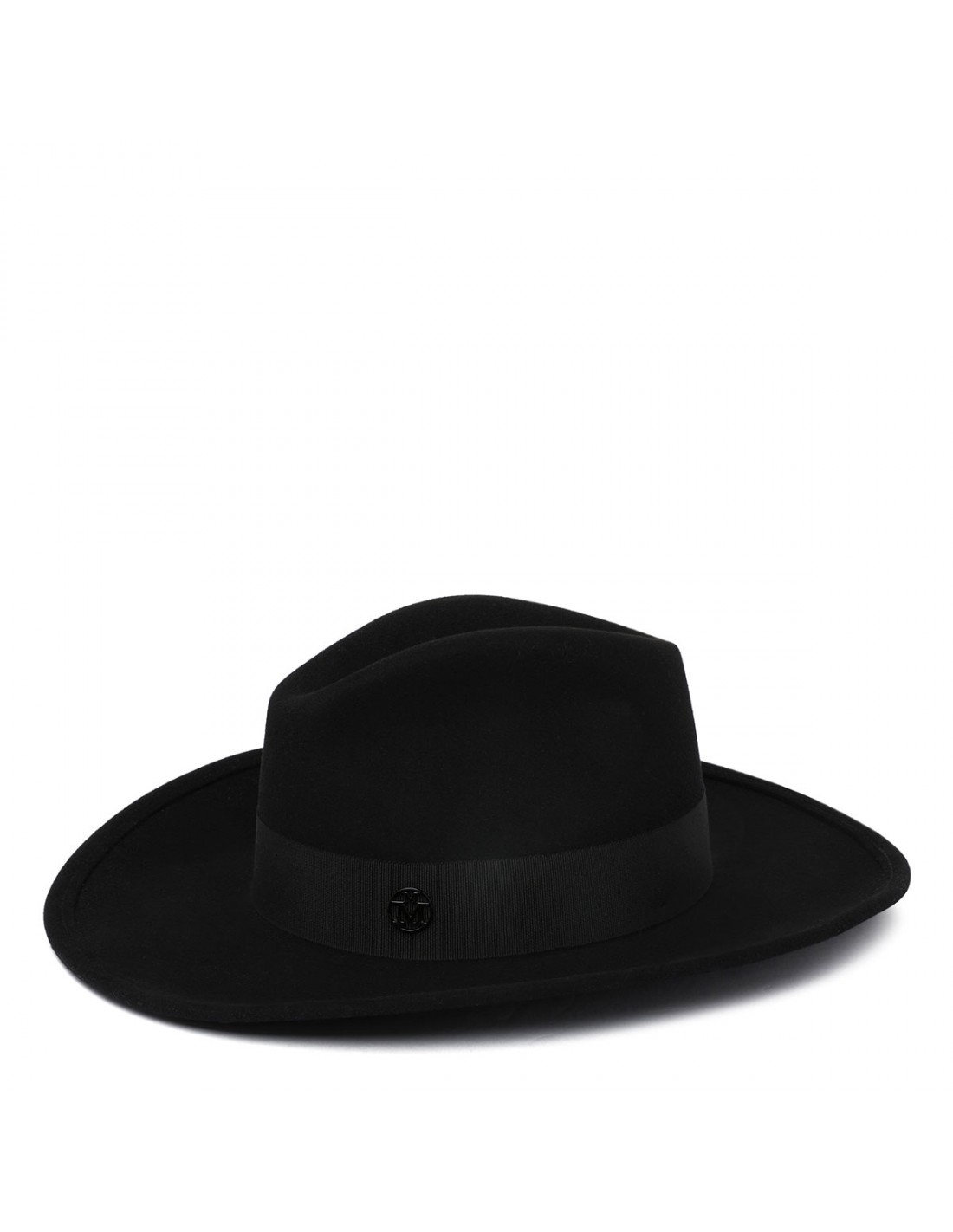 Black rabbit felt Austin cowboy hat from Maison Michel featuring Western style, waterproof treatment, black gros-grain band, tonal monogram Maison Michel logo.