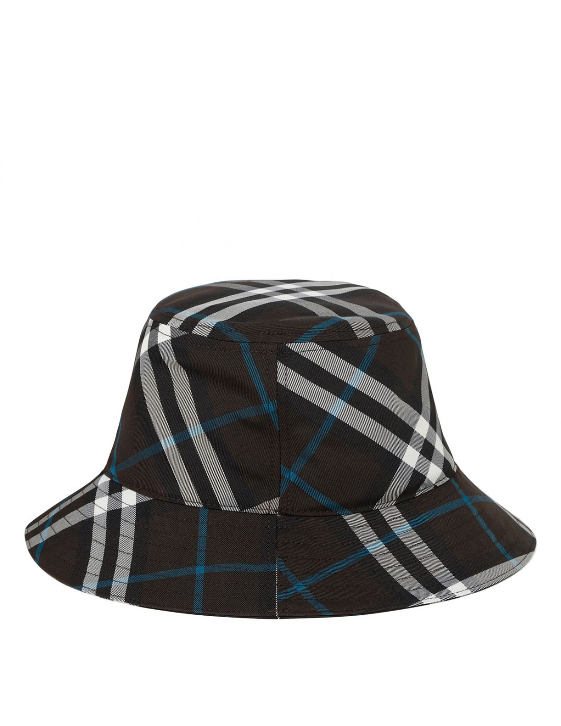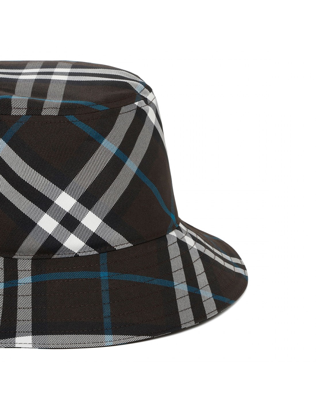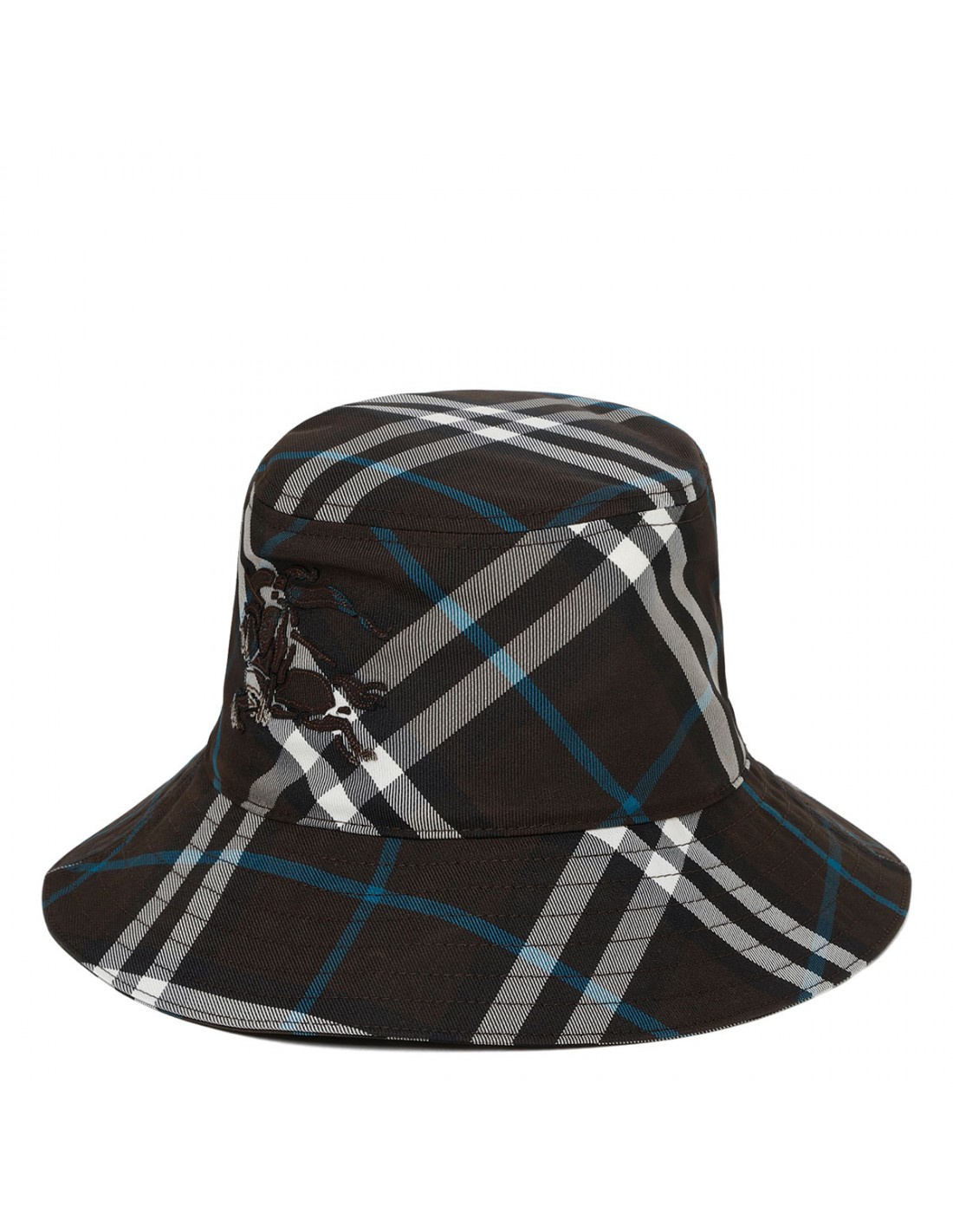 Multicolor twill bucket hat from Burberry featuring iconic check motif, Equestrian Knight Design at front, classic brim. Unlined.