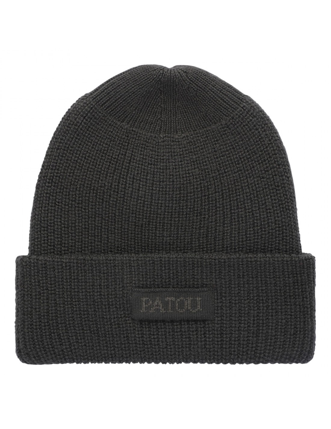 A beanie made from wool with a ribbed texture, featuring a cuff and a tone-on-tone logo detail.