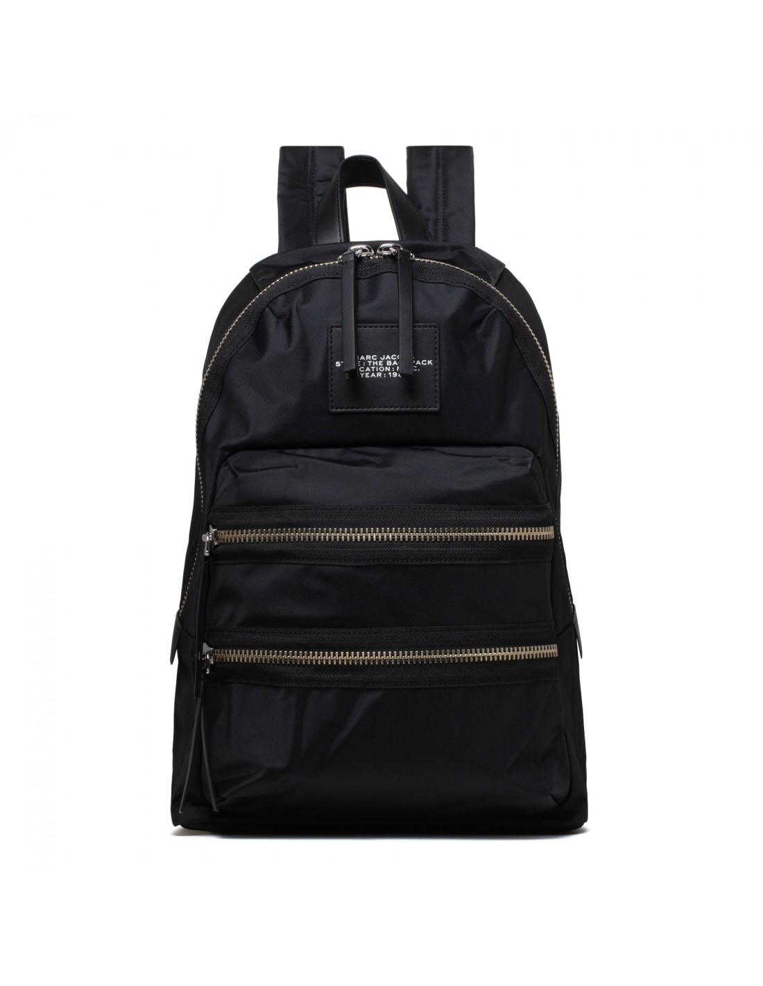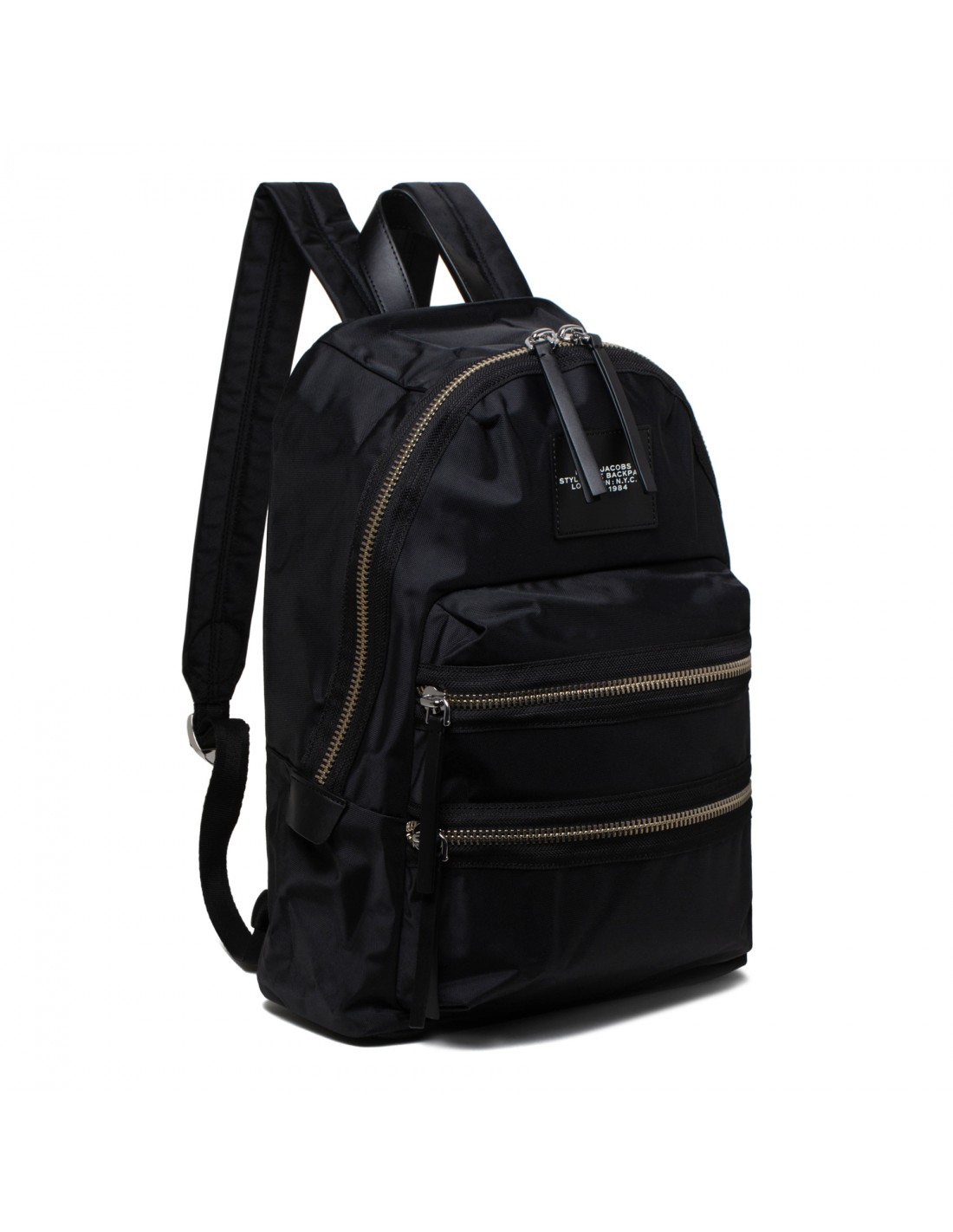 Black nylon The Biker large backpack from Marc Jacobs featuring lightly padded adjustable straps, logo label, zip closure on top, external zipped pockets, top handle.