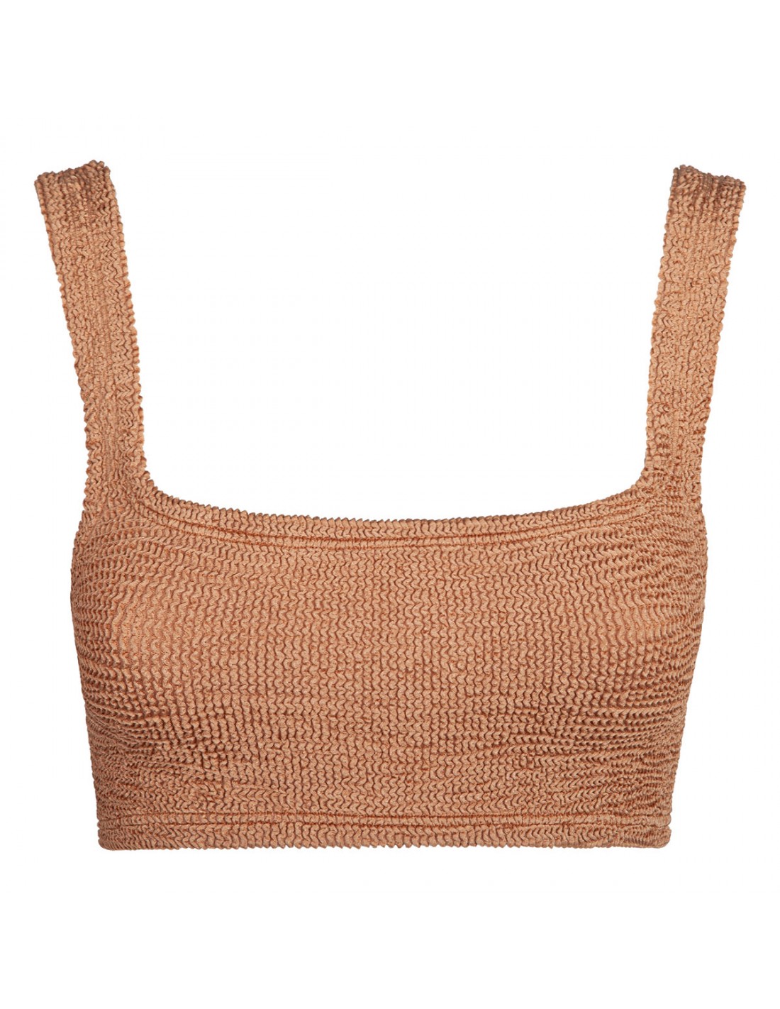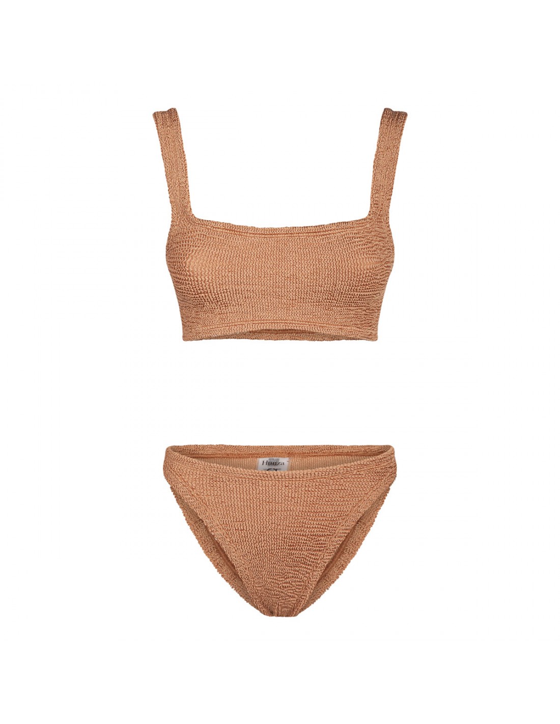 Metallic cocoa Original Crinkle™ fabric Xandra bikini set from Hunza G featuring bra with scoop neck and wide shoulder straps, classic bottom.