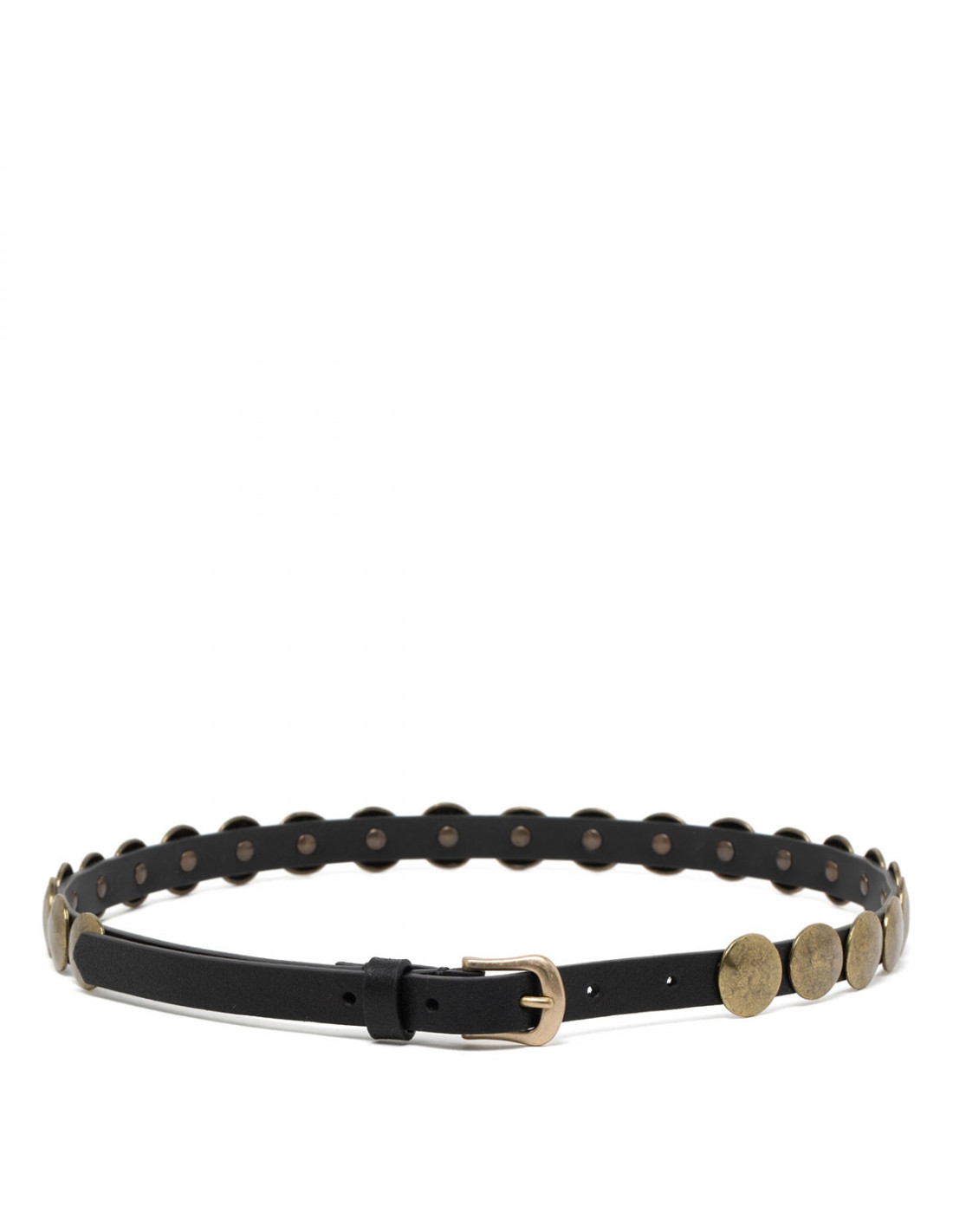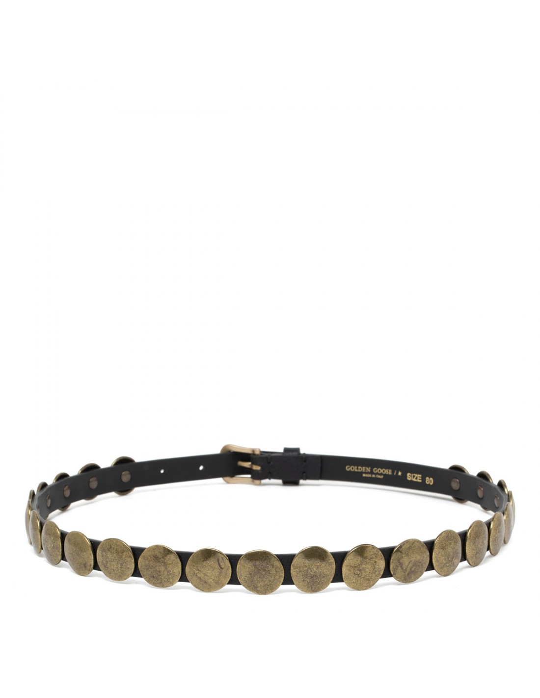 Black washed leather Trinidad belt from Golden Goose featuring gold-tone maxi studs along entire length, buckle closure and leather loop.