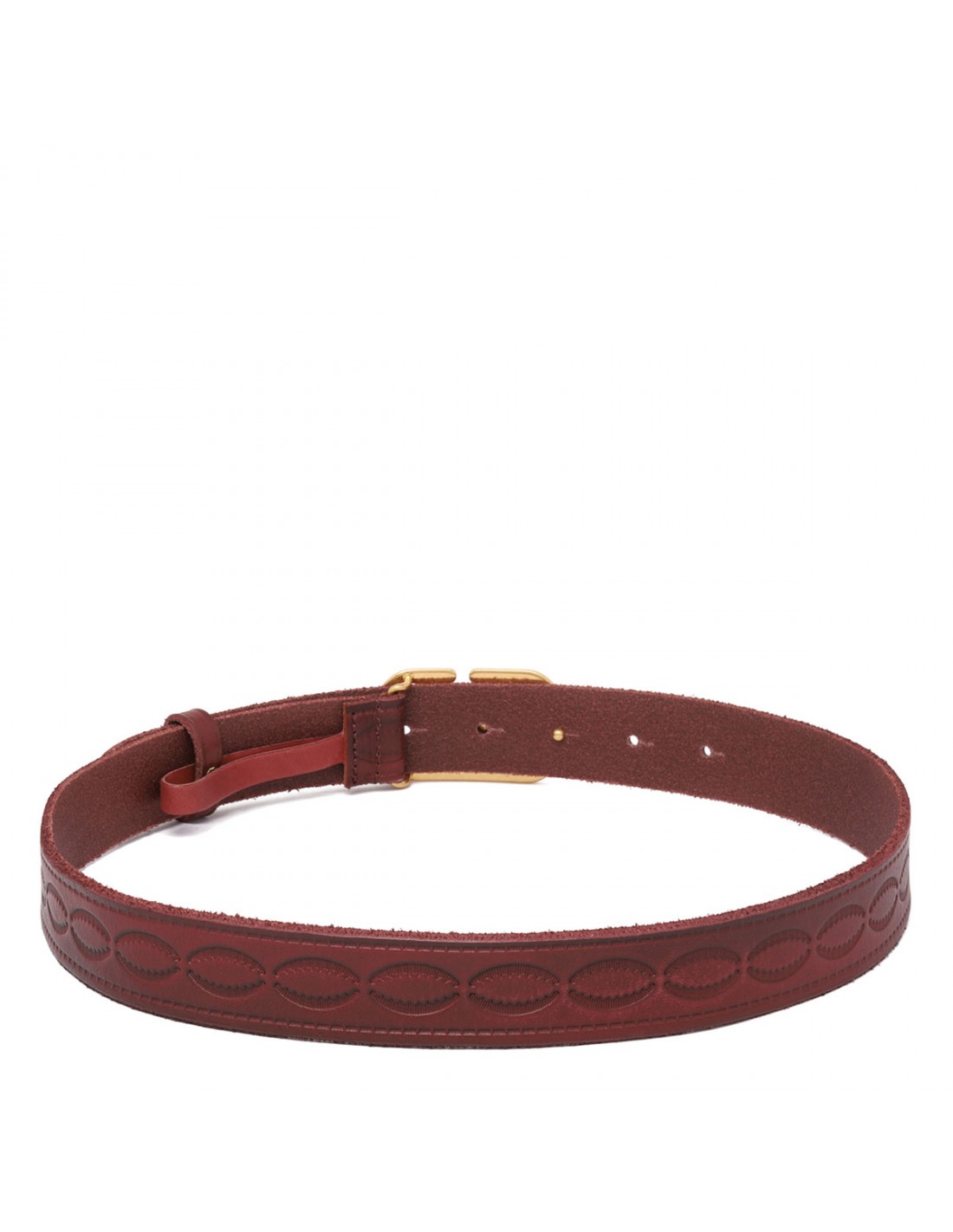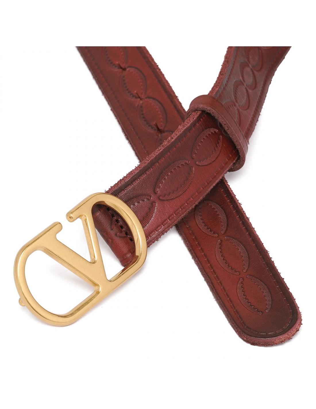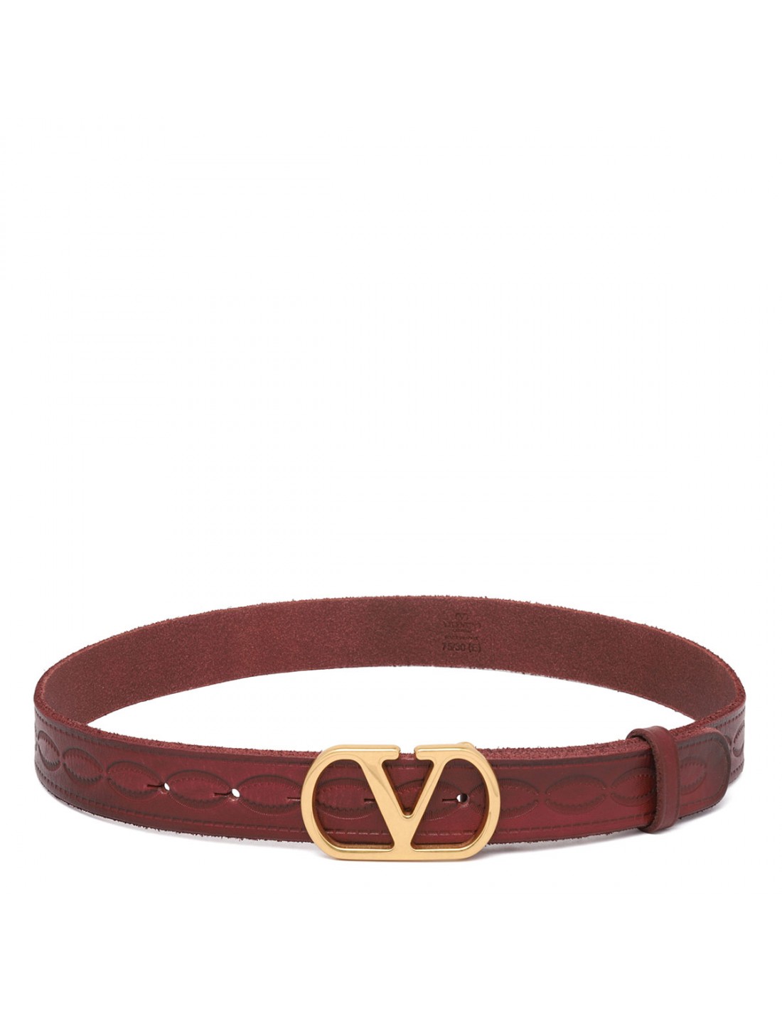 The Valentino Garavani VLogo Signature belt in dark aubergine calfskin features a refined design and timeless elegance. Equipped with the VLogo buckle in antique brass-finish metal, it has a width of 30 mm.