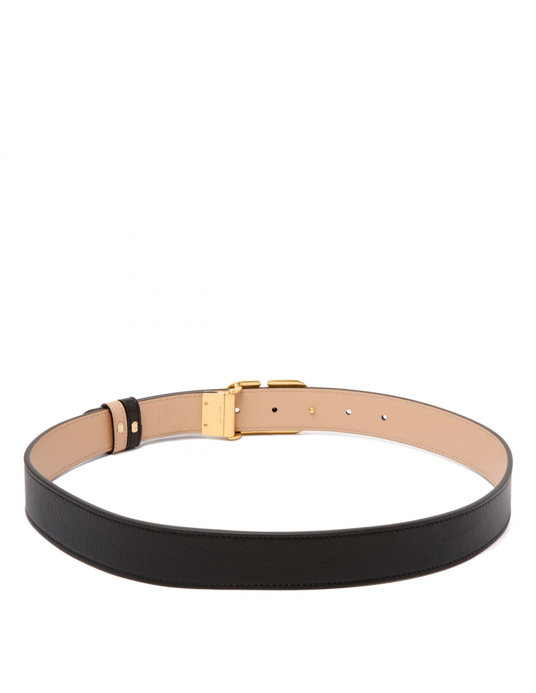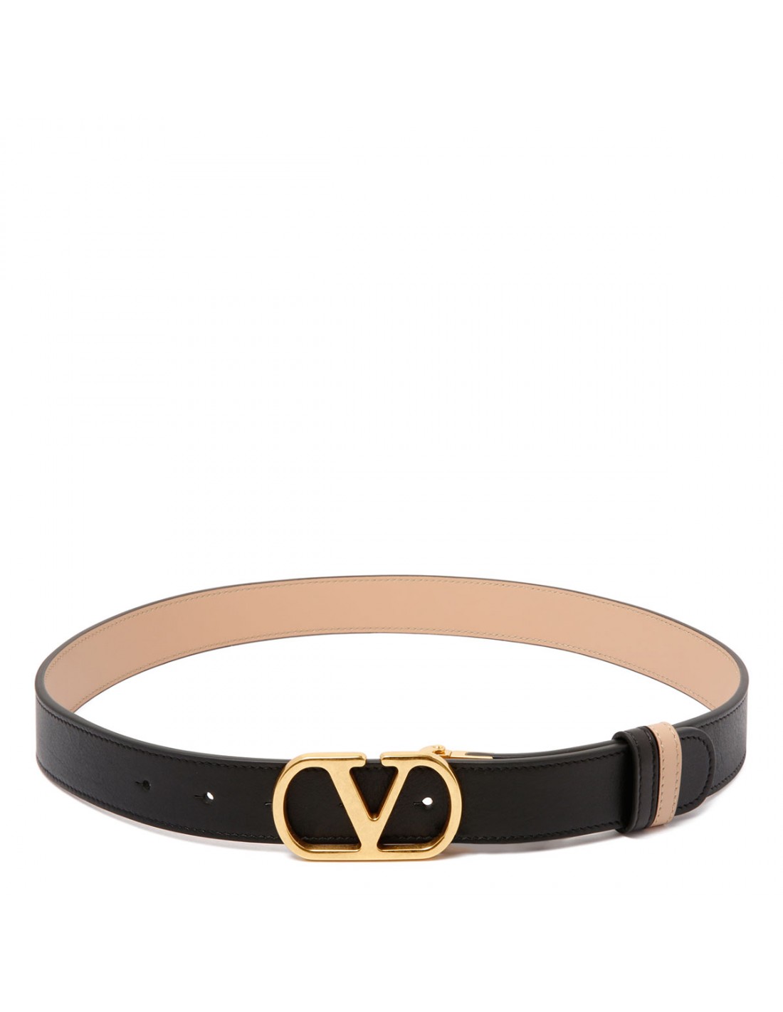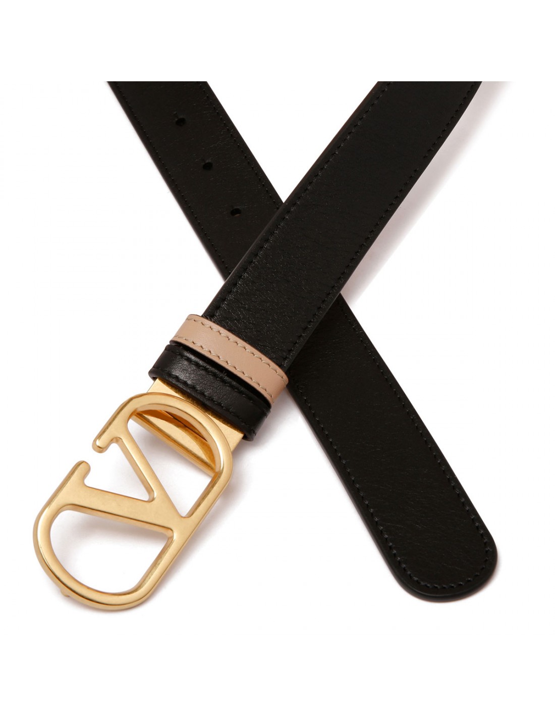 Black and sand-rose leather calfskin from Valentino Garavani featuring antique brass finish Vlogo Signature buckle closure, double leather loop. H. 30.