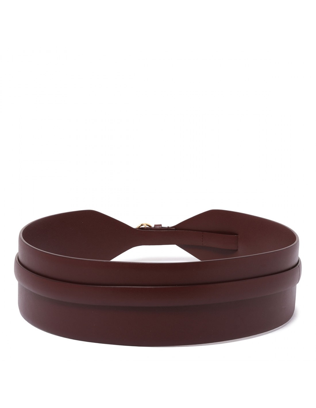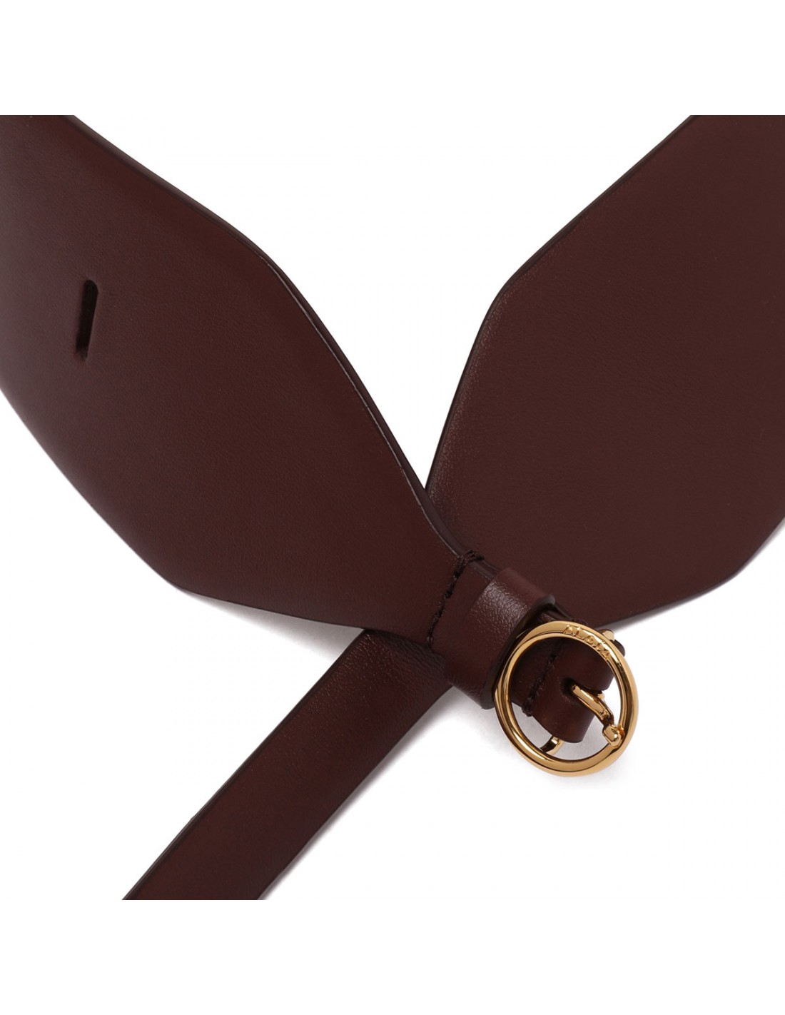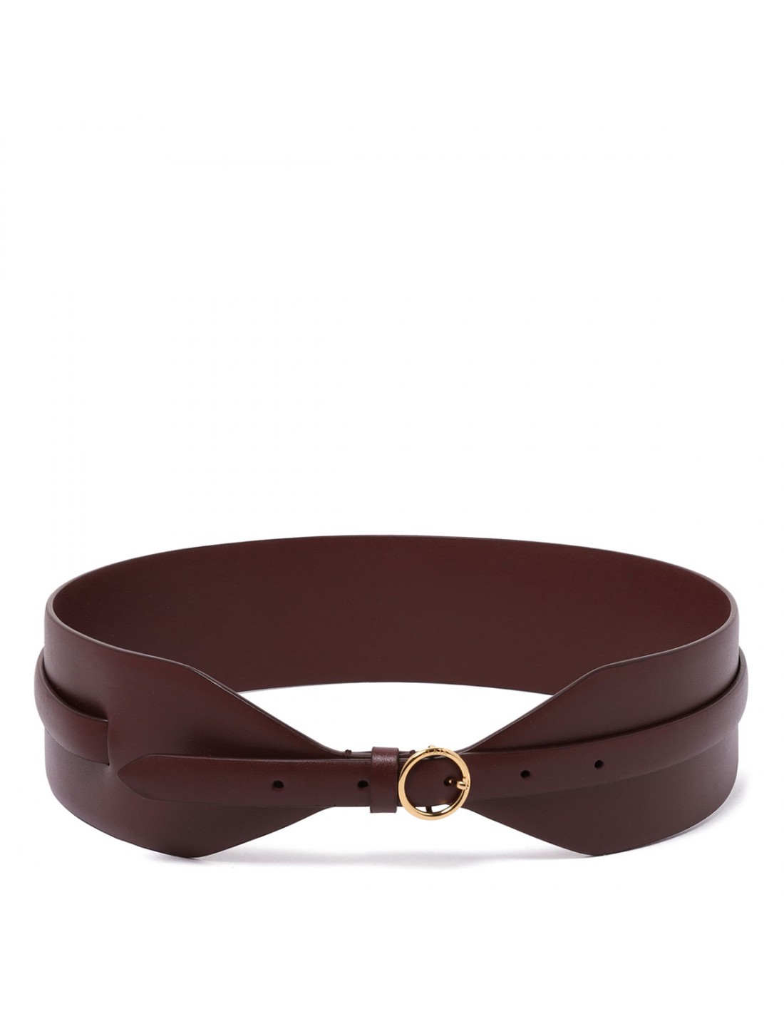 Rouge grenat leather double large belt from Alaia featuring thin belt integrated to enhance the waist, glossy finish, adjustable buckle fastening.