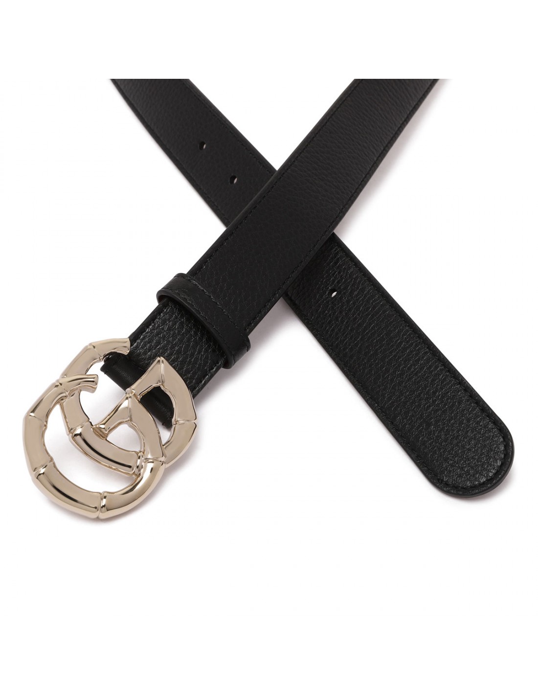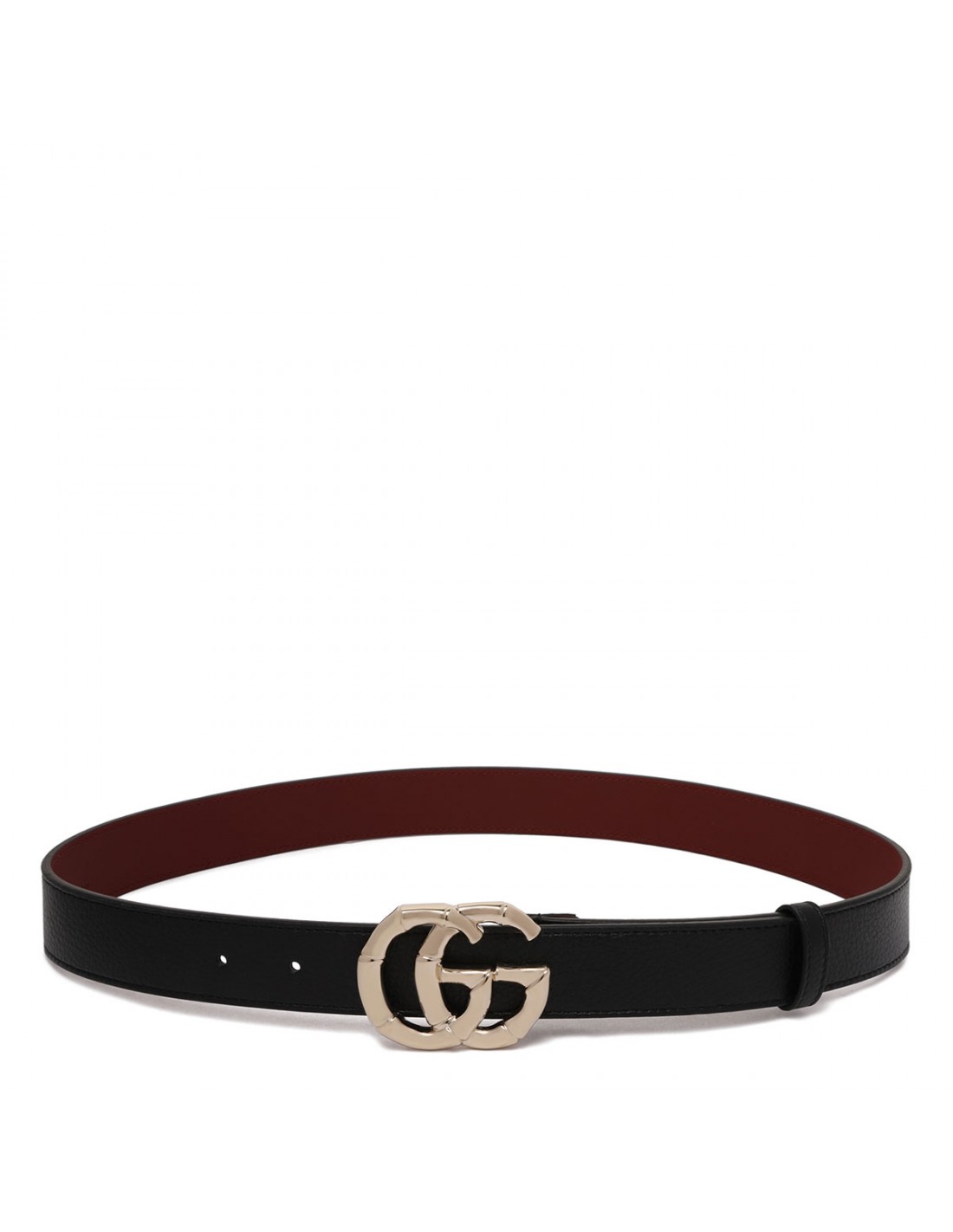 Black leather GG Marmont belt from Gucci featuring double bamboo-effect G buckle fastening, leather loop.