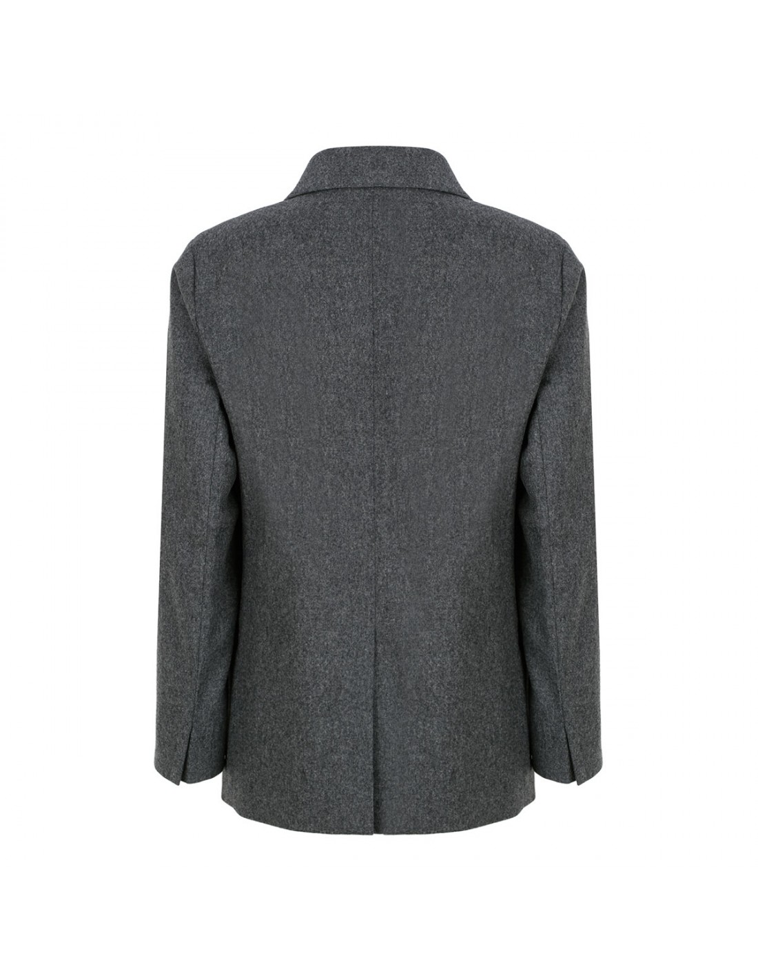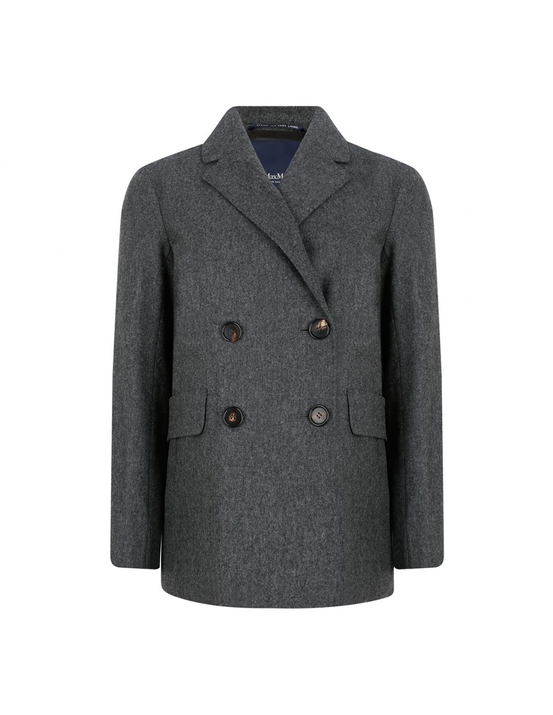 Gray flannel wool Lena blazer from 'S Max Mara featuring double-breasted design, lapel collar, long set-in sleeves with cuff slit, button fastening, side flap pockets, back vent.