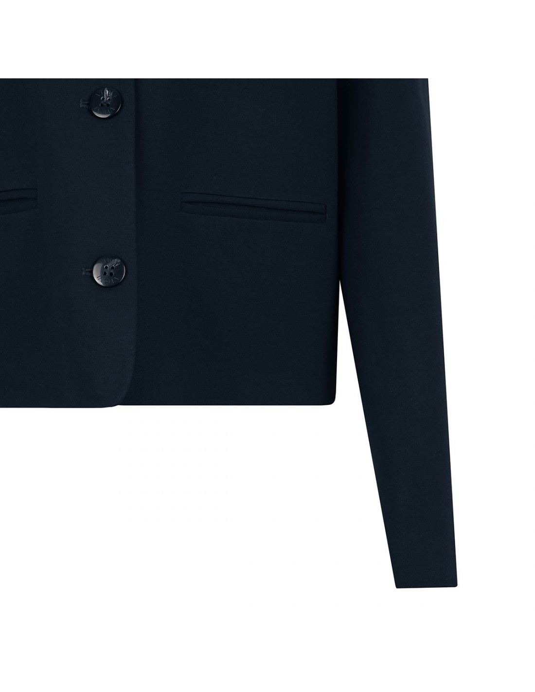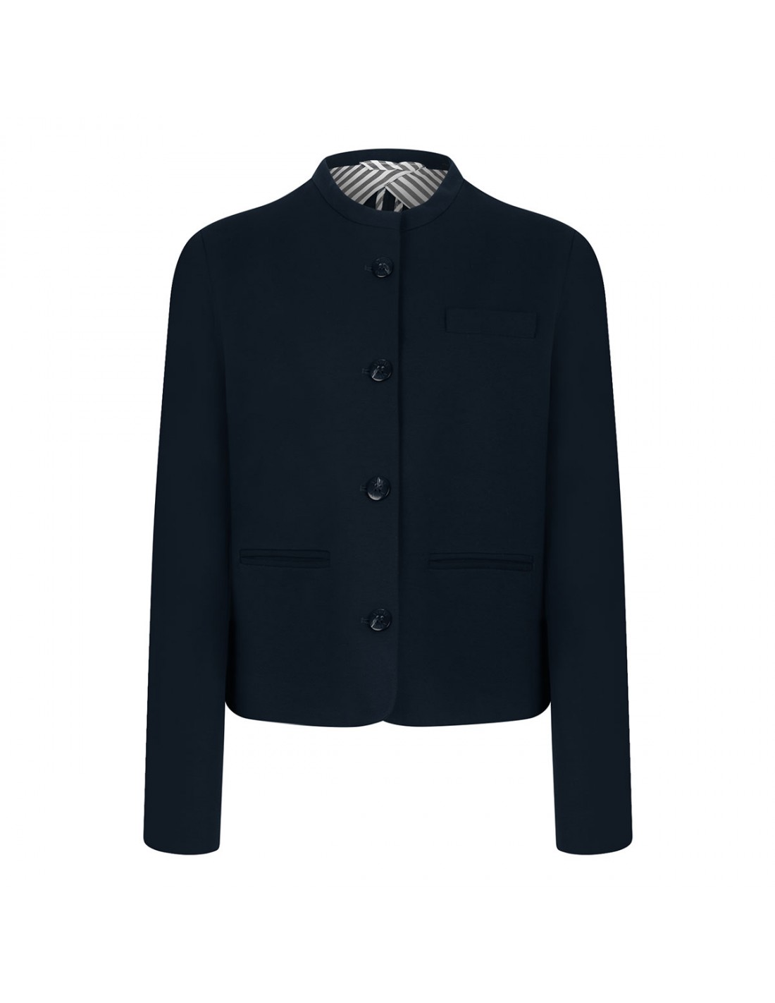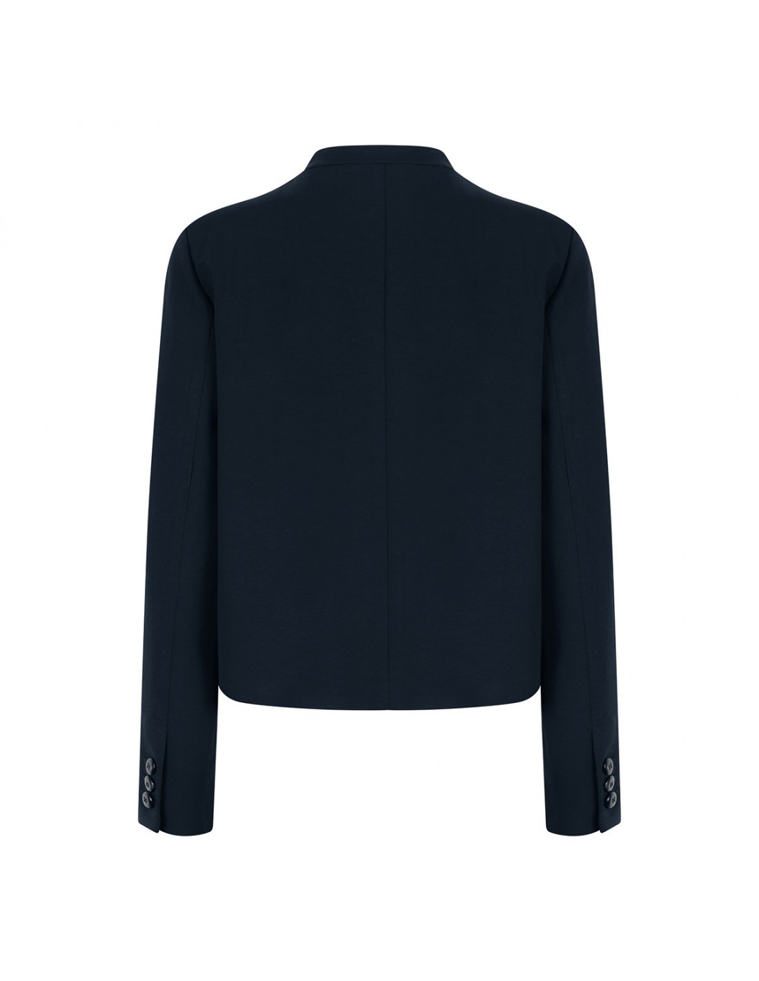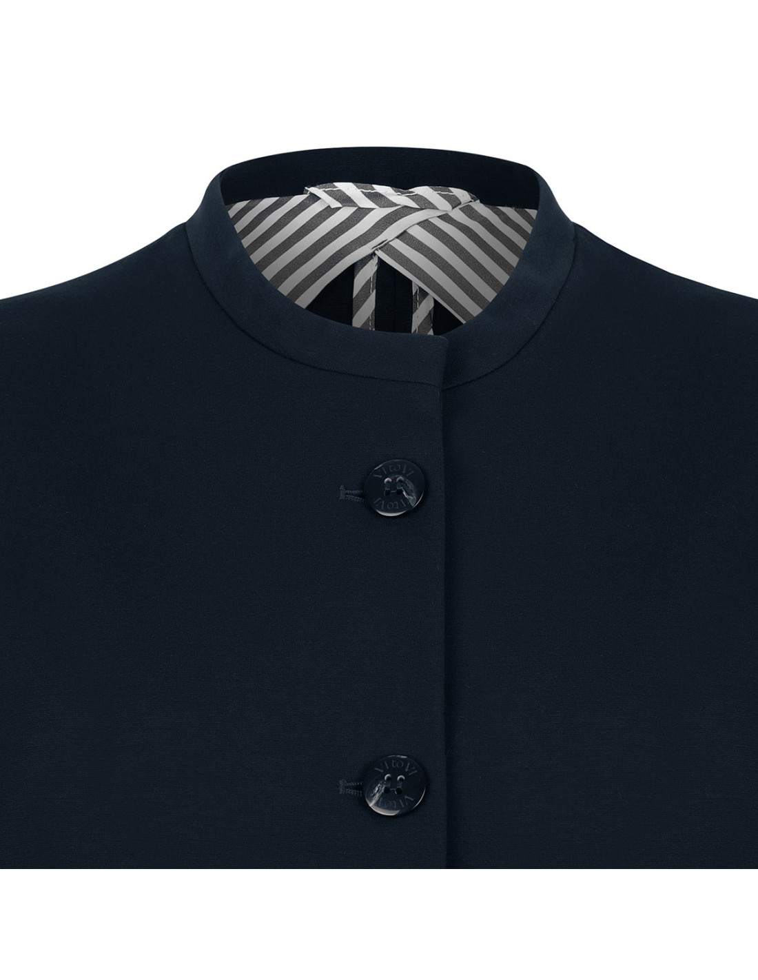 Blue viscose blend Very blazer from Vitovi featuring stand collar, single-breasted style, two-button closure, buttoned cuffs, dropped and unstructured shoulders, two front pockets.