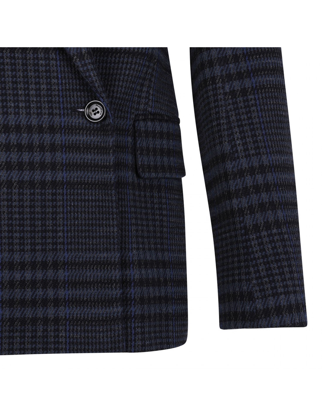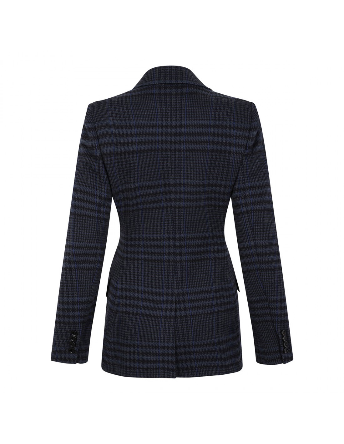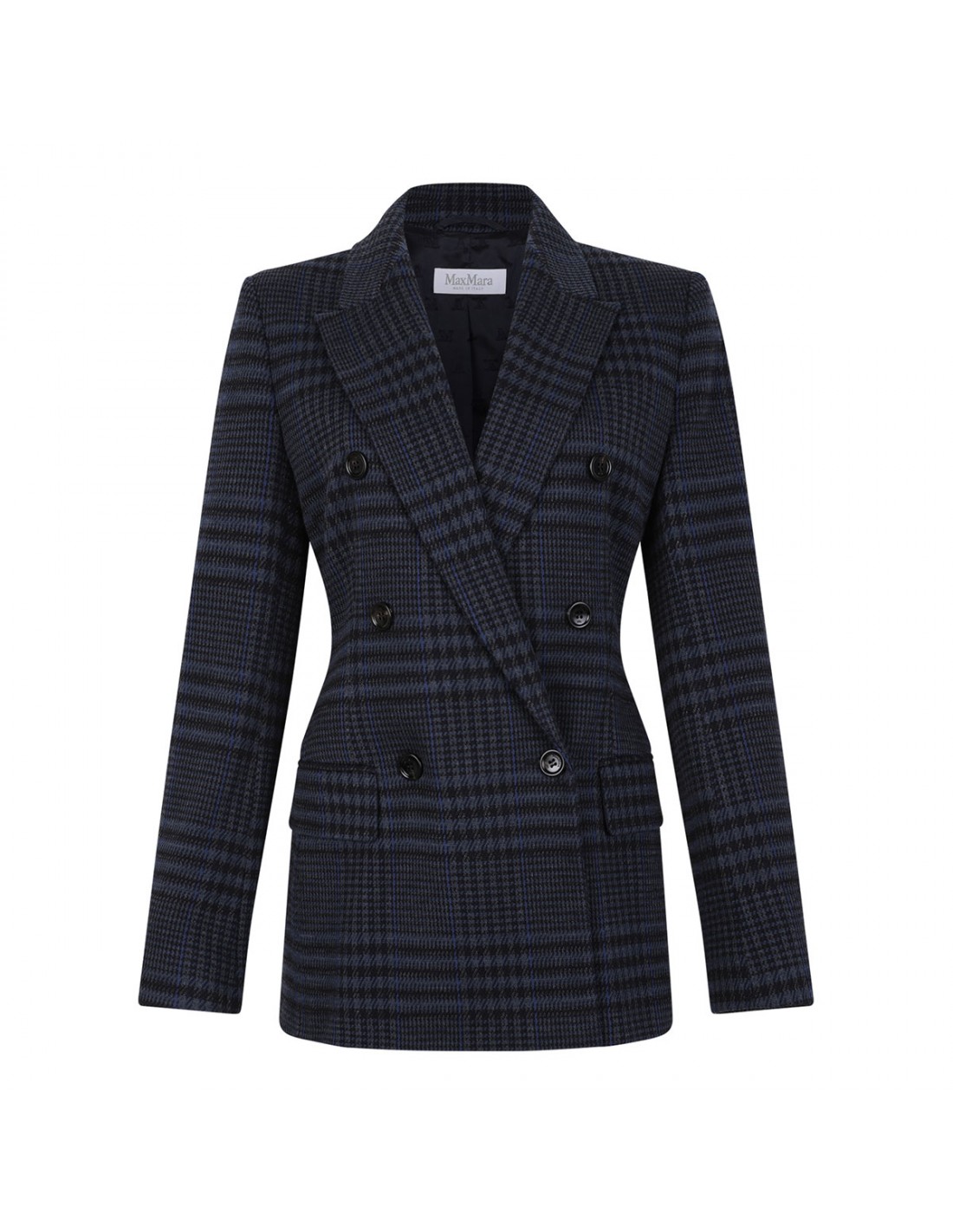 Blue wool and cotton blend Blisso jacket from Max Mara featuring plaid motif, double-breasted silhouette, button closure, peaked lapels, buttoned cuffs, front flap pockets and back vent.