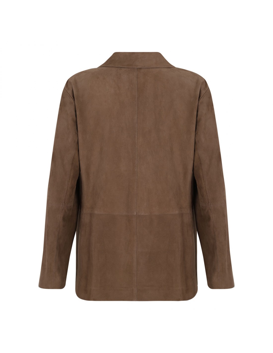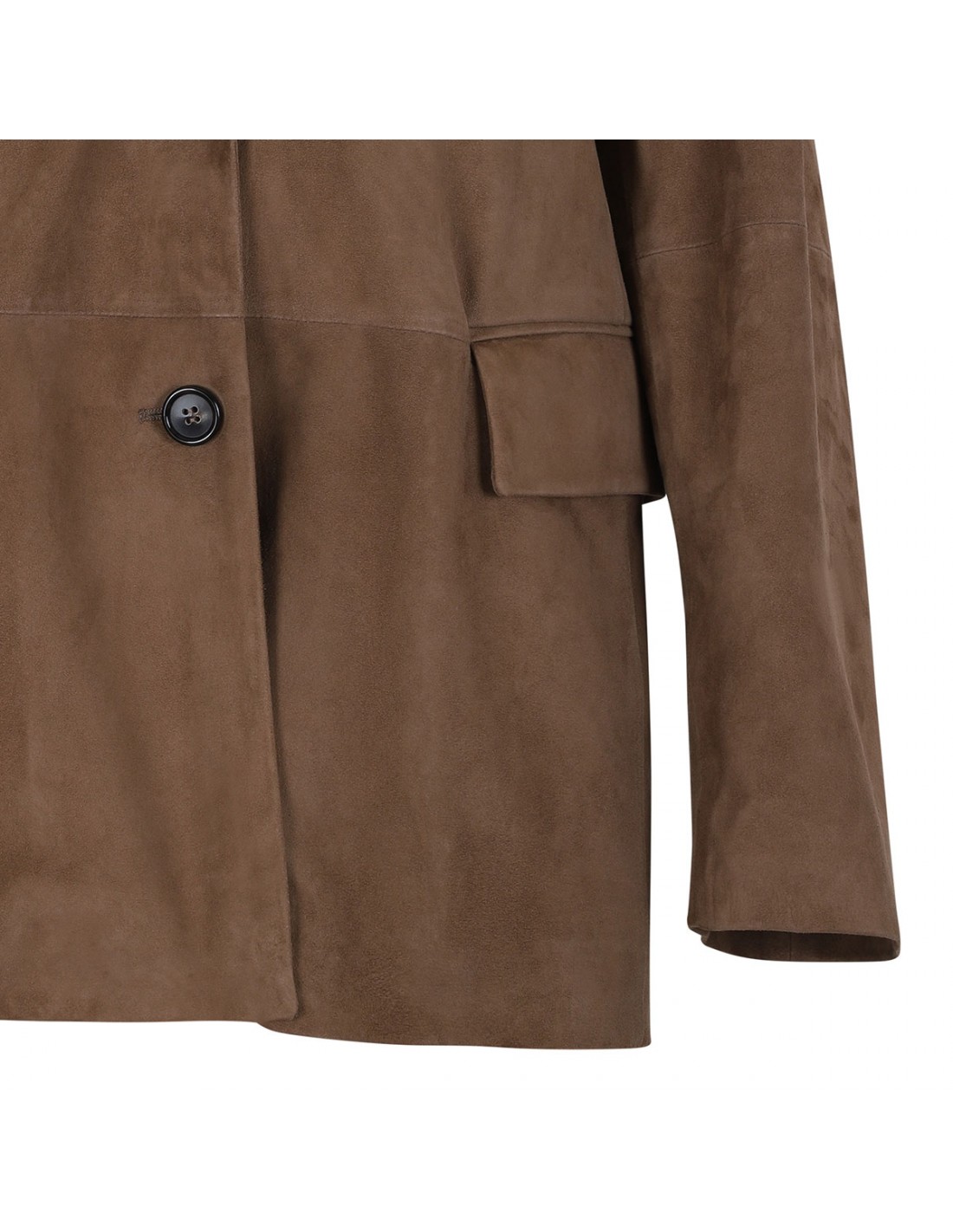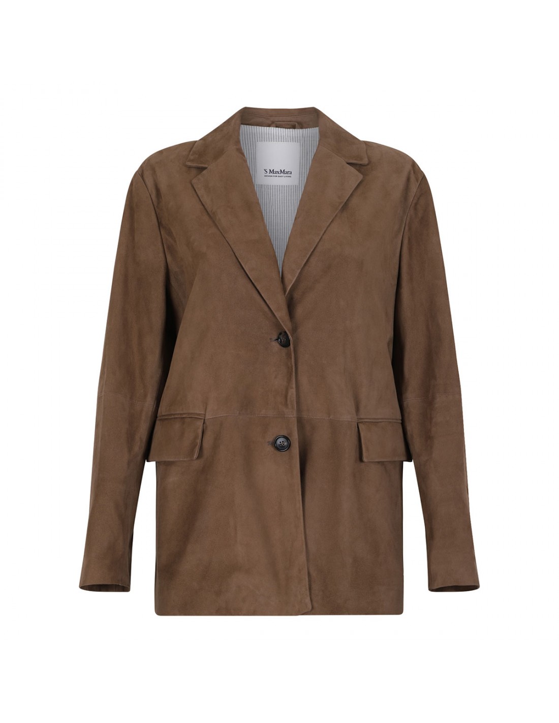 Hazelnut brown soft suede Anfora jacket from 'S Max Mara featuring straight silhouette, single-breasted style, lapel collar, two-button front fastening, front flap pockets.