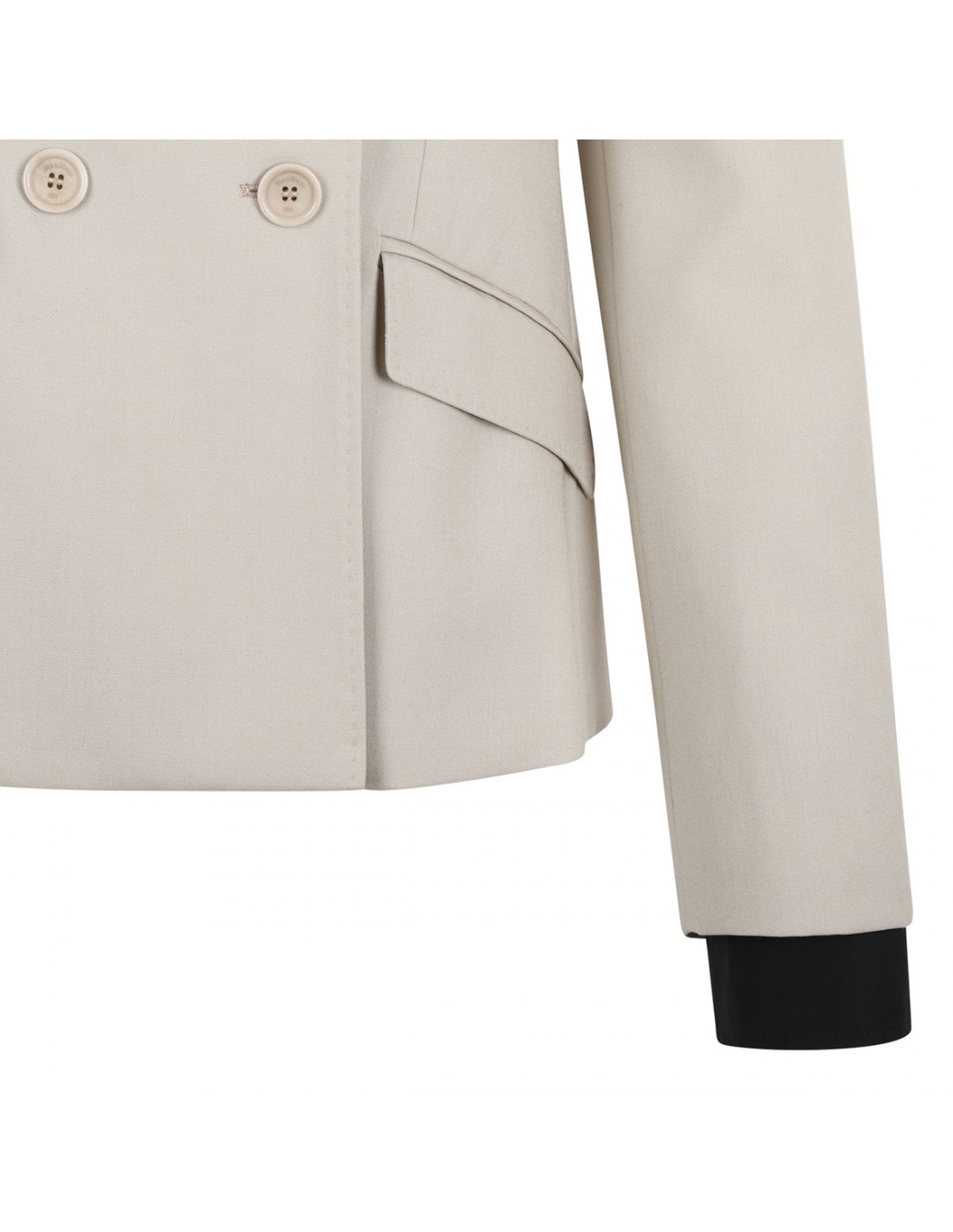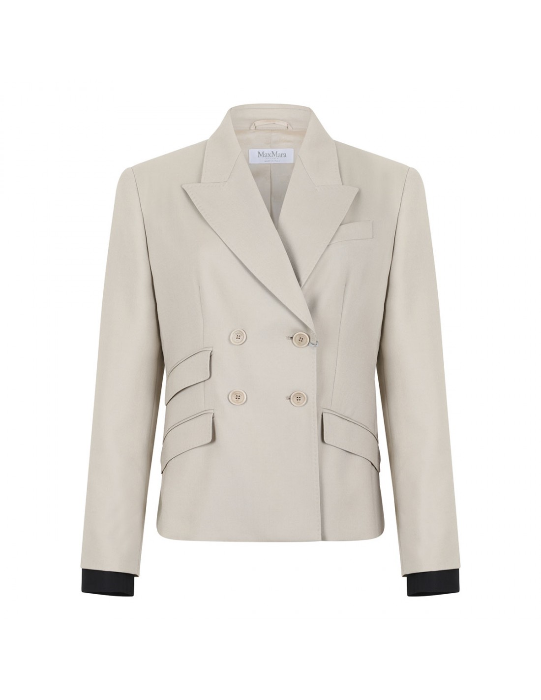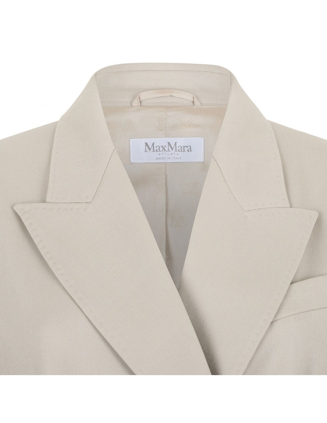 Sand mohair, wool and silk canvas Placido blazer from Max Mara featuring peak lapels, sleeves with slit and buttons at the cuffs, front button fastening, detachable cuffs in cotton poplin, chest pocket, three flap pockets at the front, back slits, stretch monogram fabric lining.