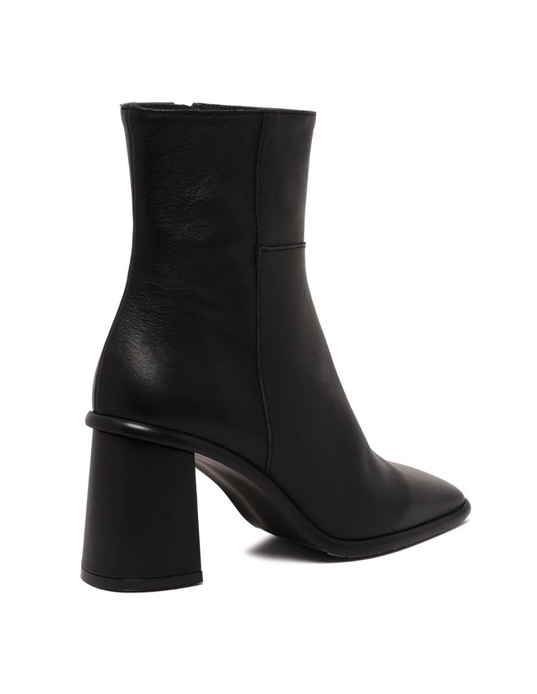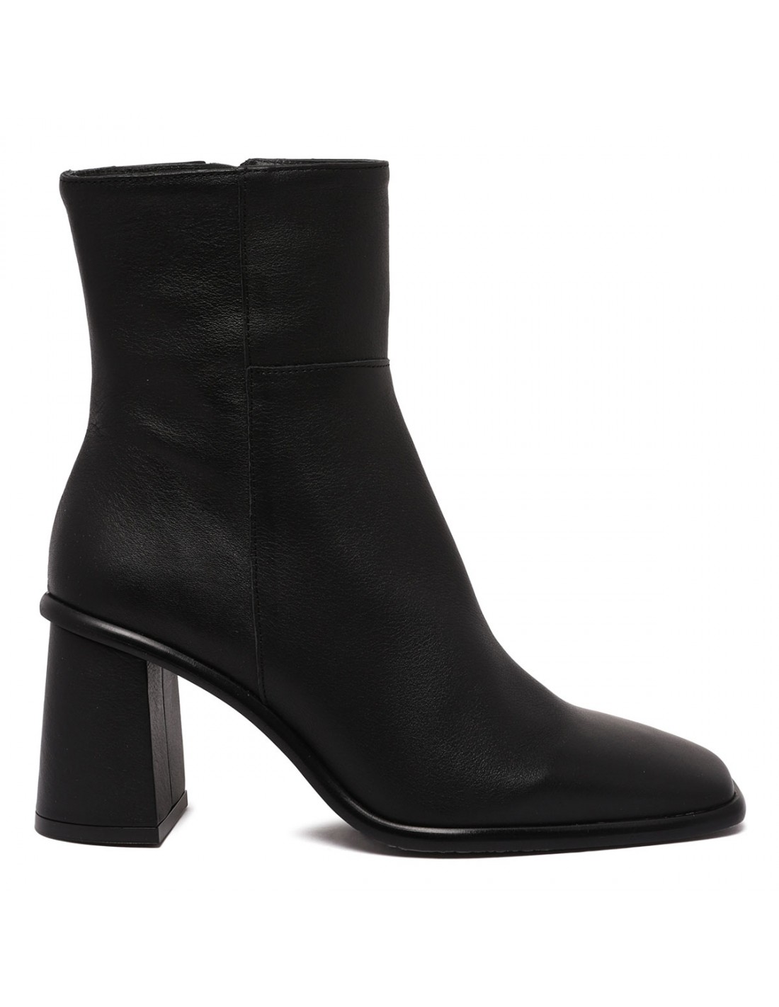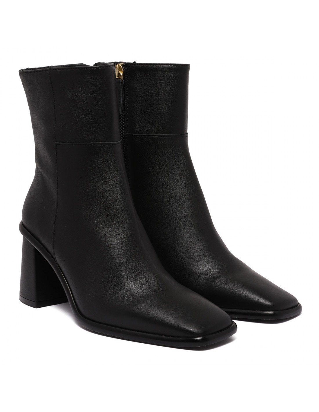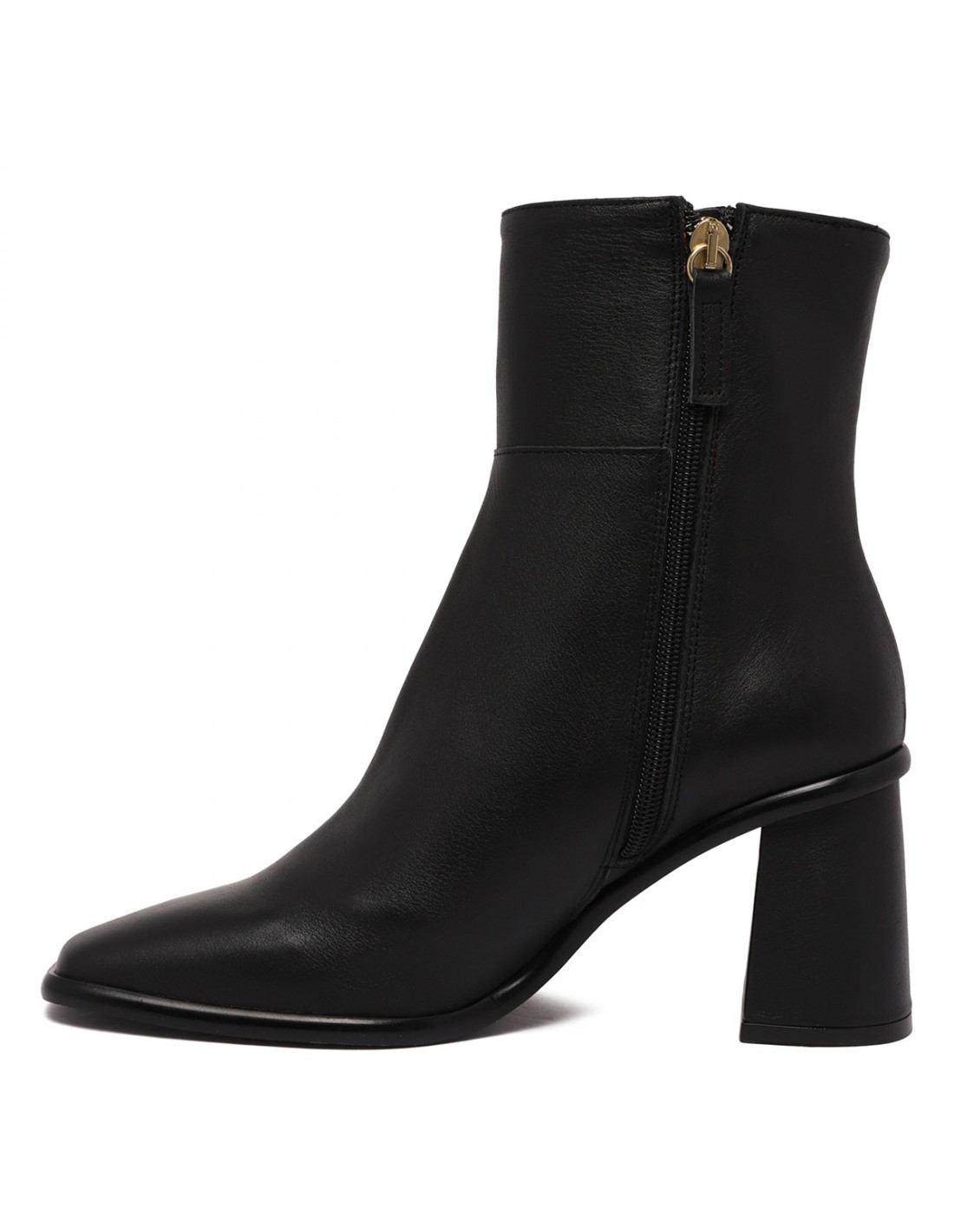 Vintage black leather West ankle boots from Alohas featuring zip fastening along inner side, leather heel loop, squared toe, block heel, leather insole and sole.