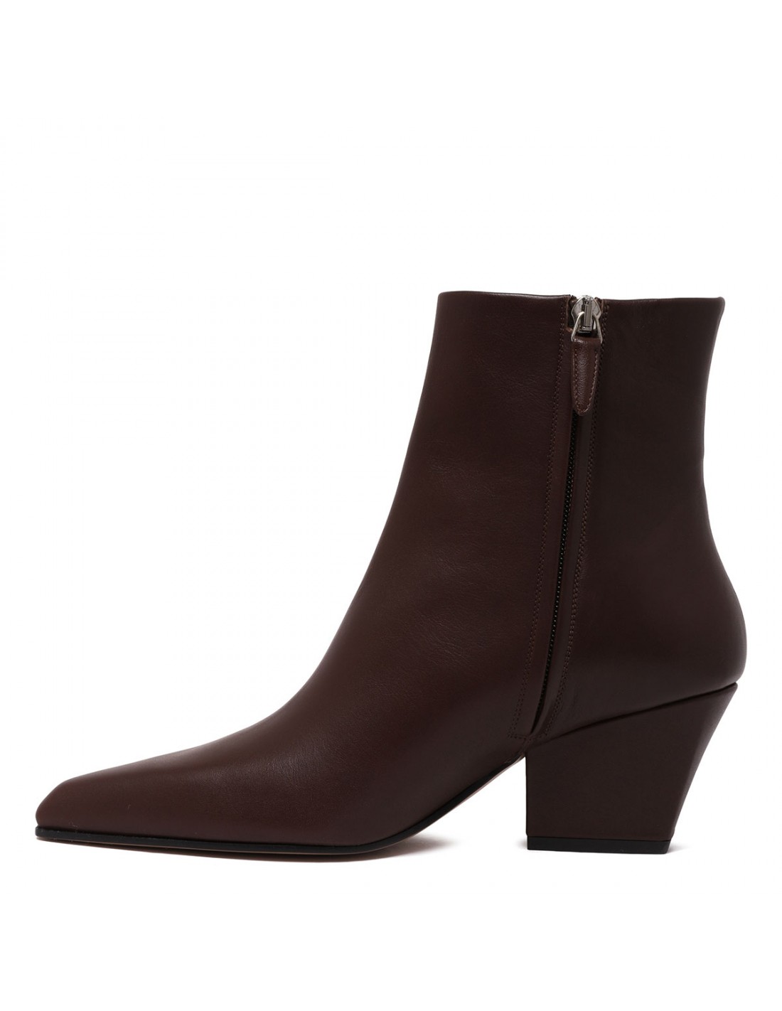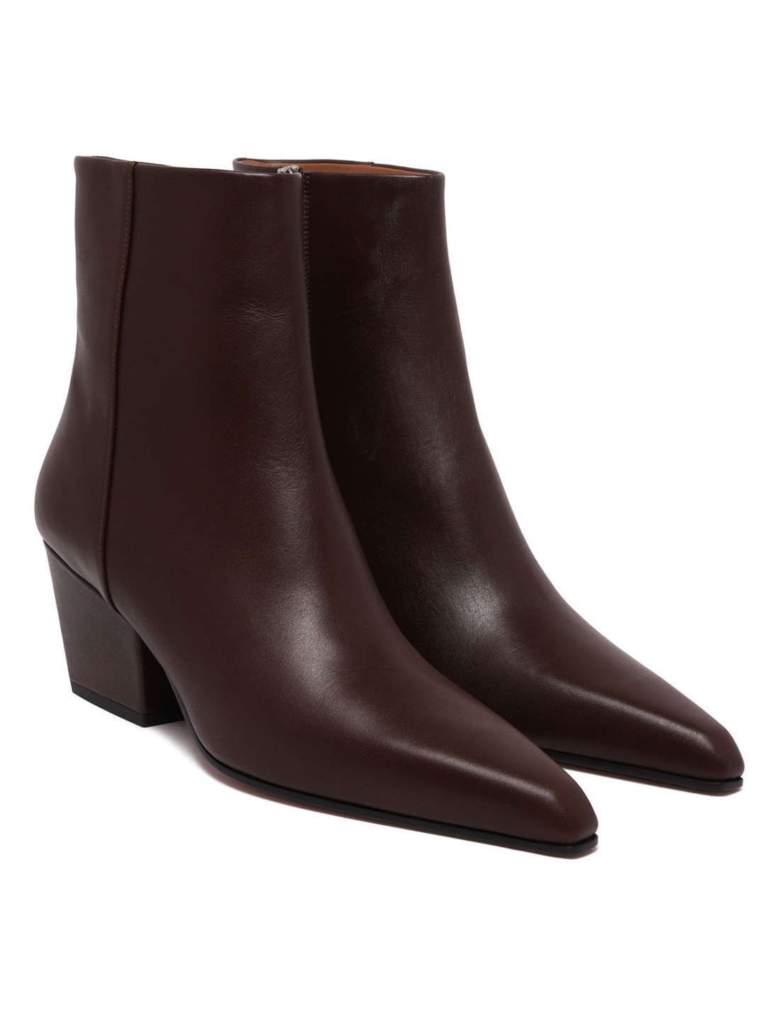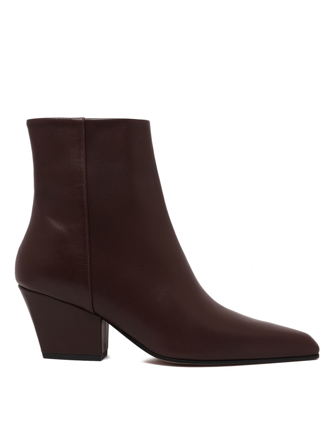 Mocha hue smooth calf leather Jane ankle boots from Paris Texas featuring square toe, covered 60 Texan heel, leather insole and sole.