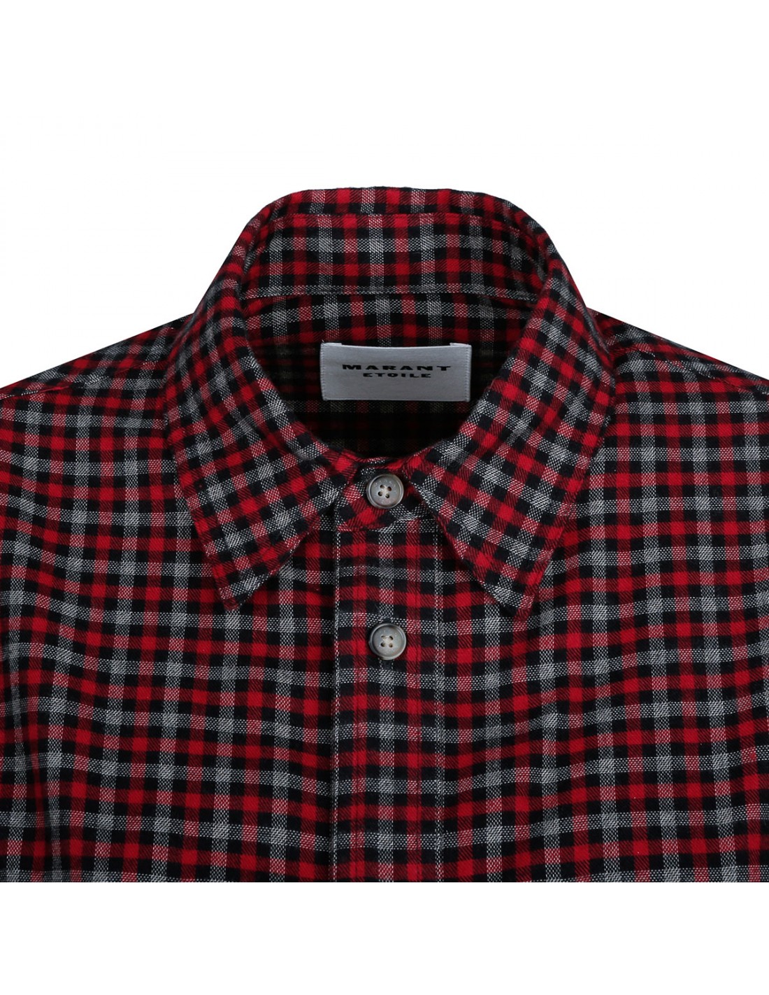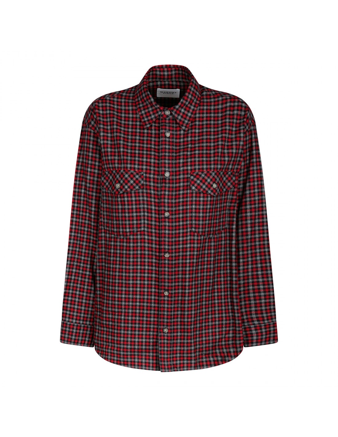 Red, gray and black cotton Sahema shirt from Isabel Marant Etoile featuring check motif allover, pointed collar, button fastening along front, double buttoned flap pocket on chest, long sleeves with buttoned cuffs.