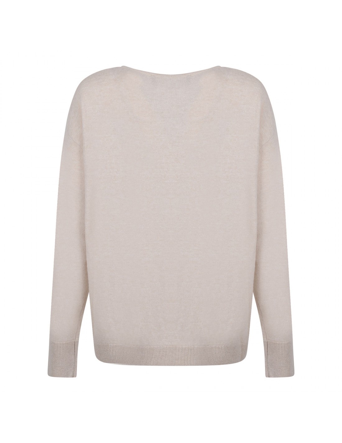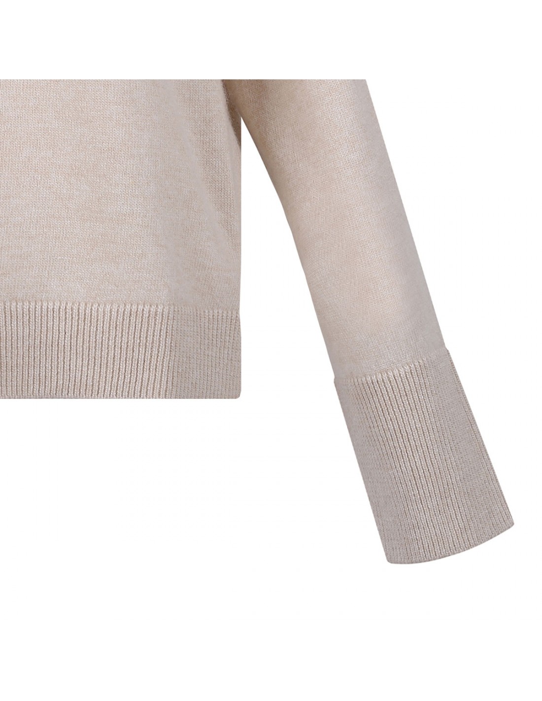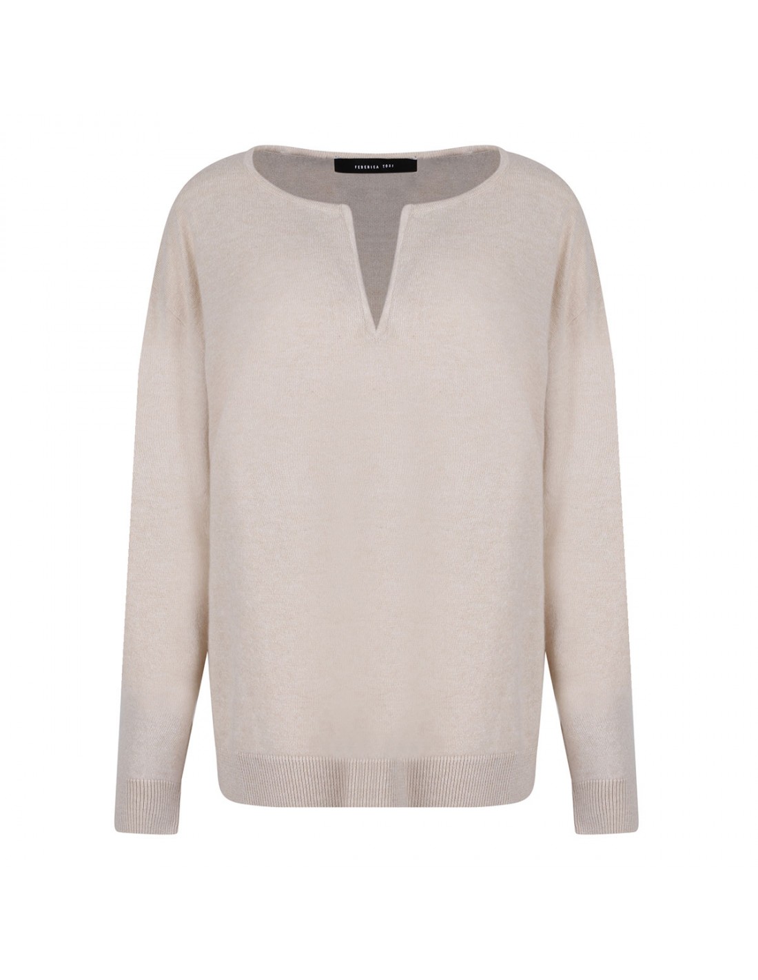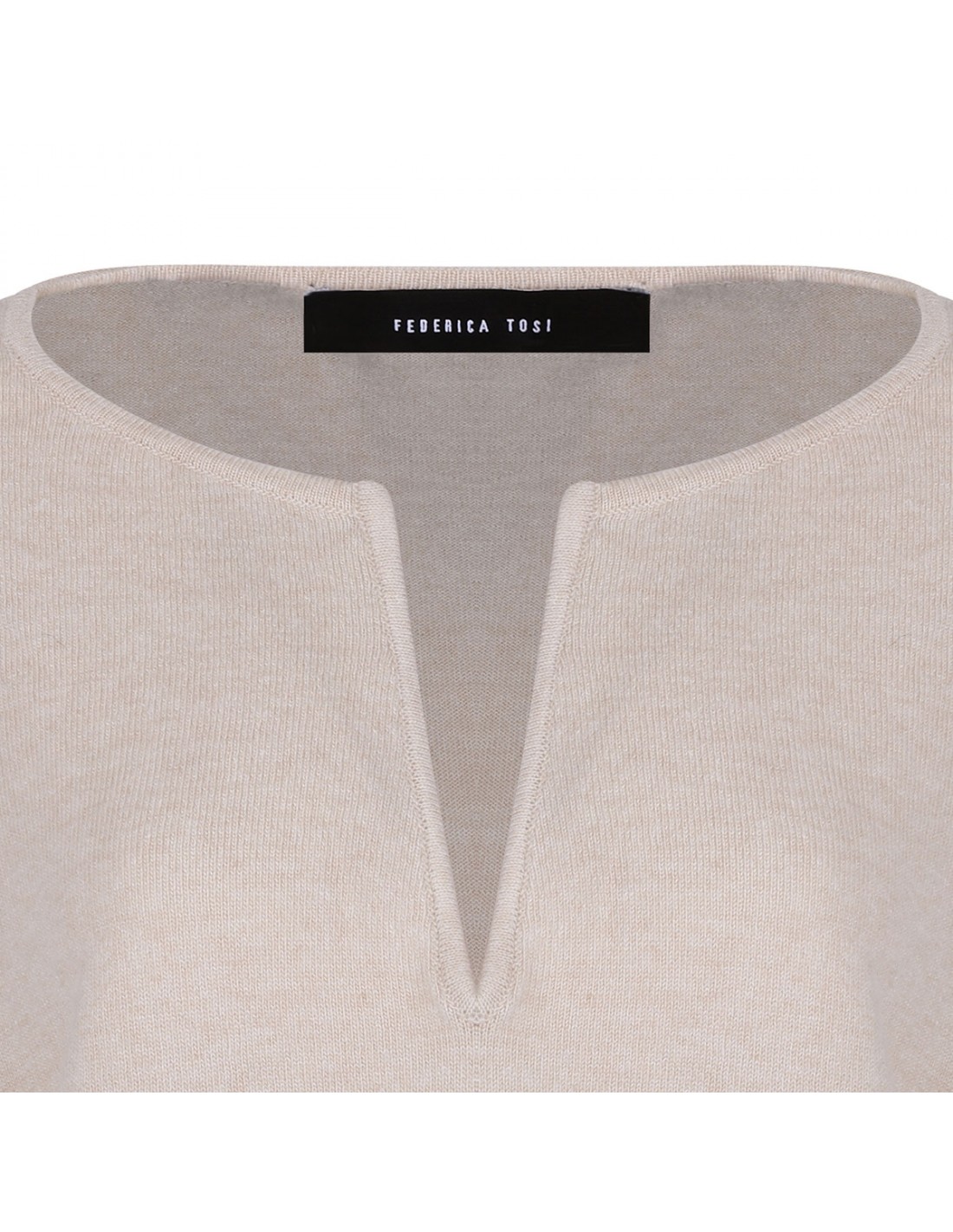 Butter-hue wool blend sweater from Federica Tosi featuring crew collar with V split, long sleeves, ribbed-knit edges.