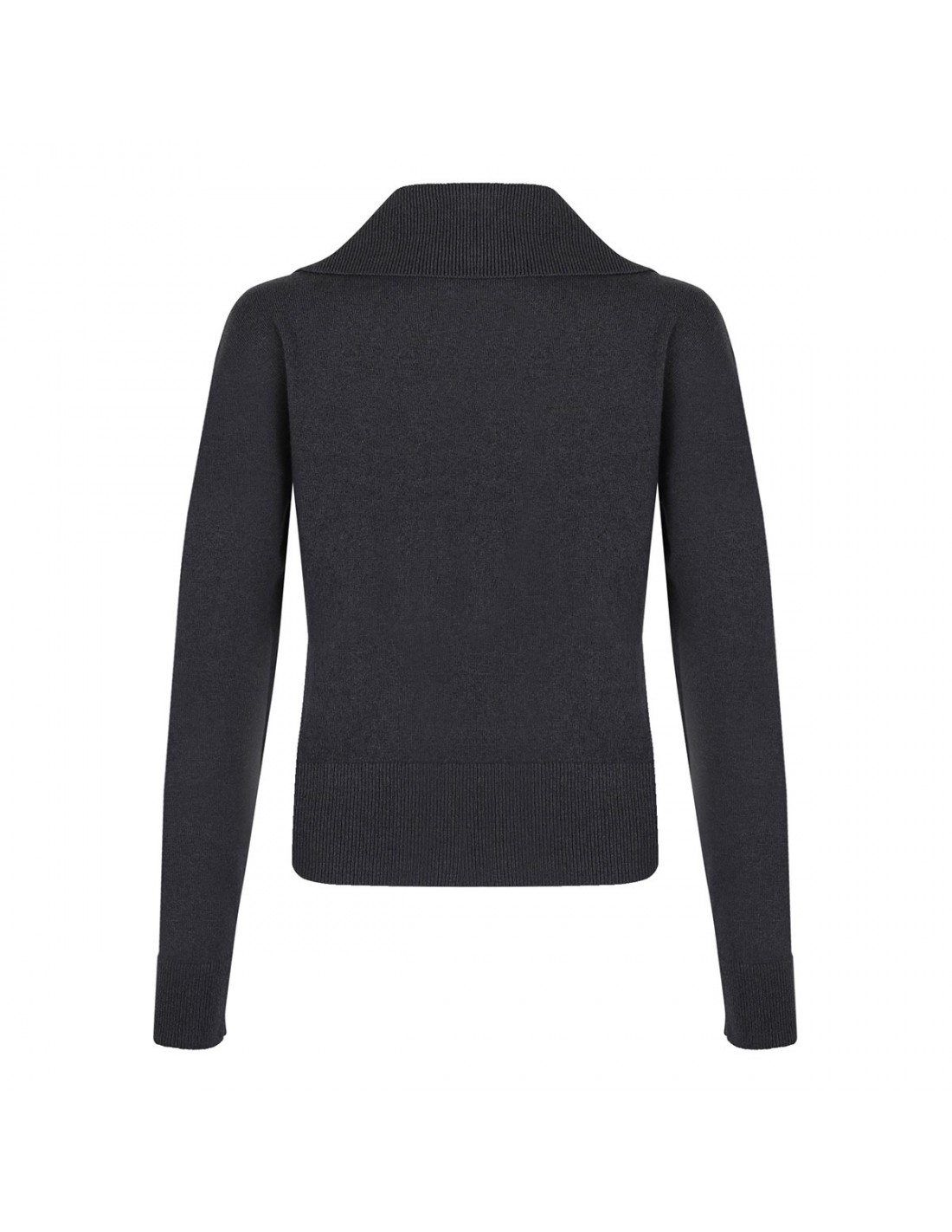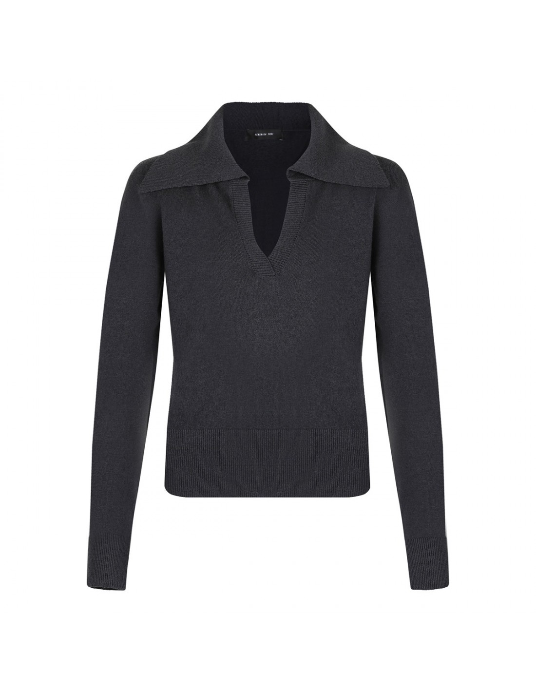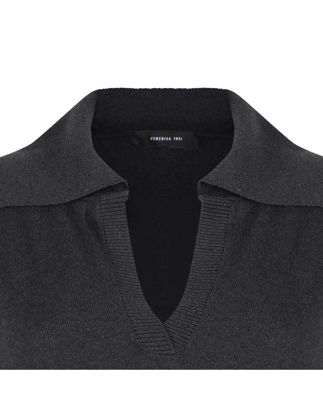 Dark gray wool, cashmere and viscose blend polo-sweater from Federica Tosi featuring polo collar, V split, long sleeves, ribbed-knit edges.