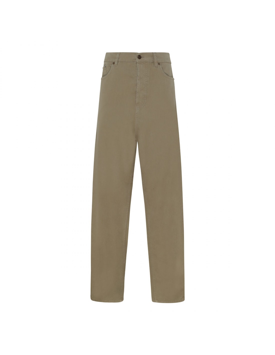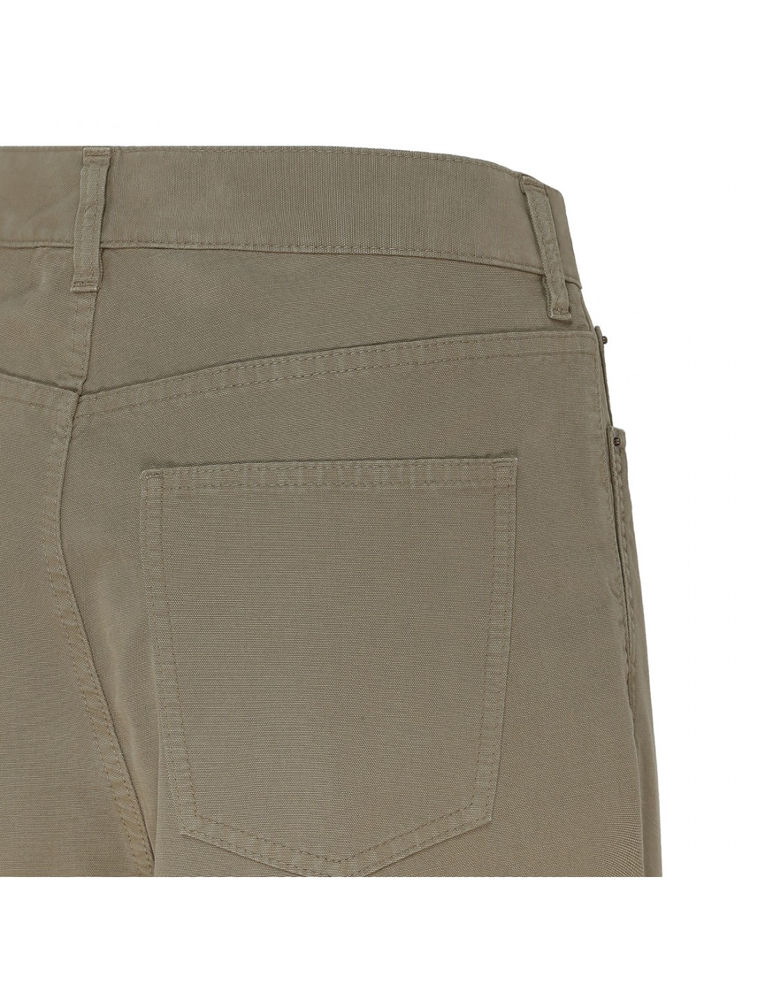 Khaki cotton ankle pants from Saint Laurent featuring baggy fit, classic five-pocket style, button closure, zip fly, belt loops on the waistband.