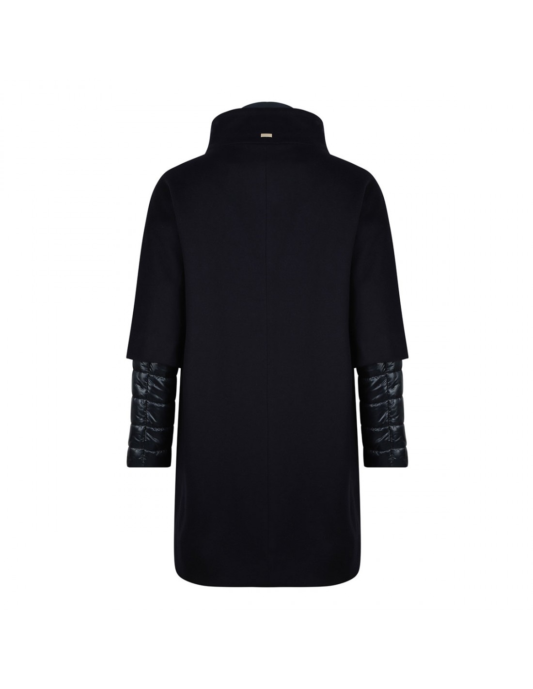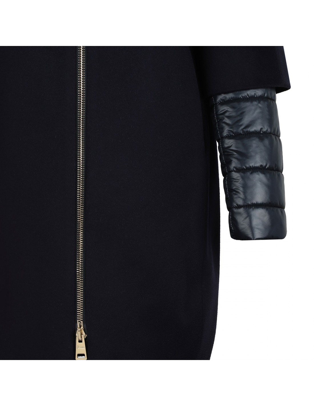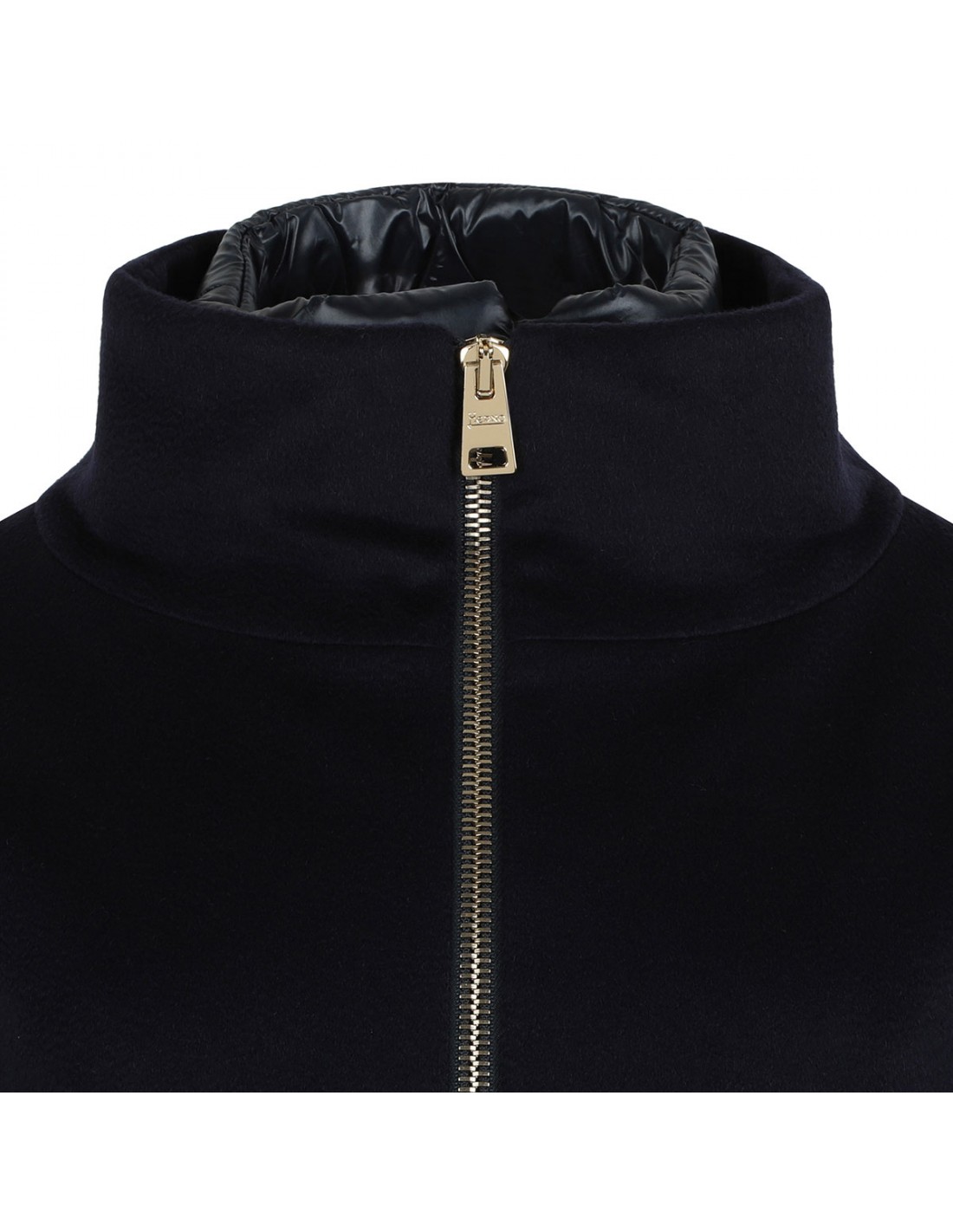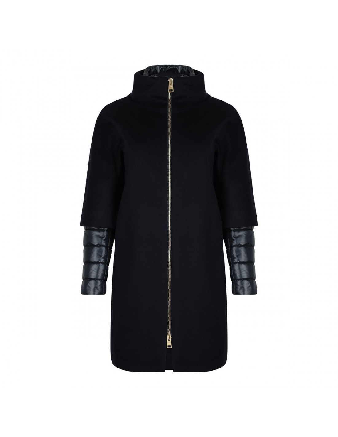 Navy blue pure wool from Herno featuring sable-effect finish, water-resistant iconic Nylon Ultralight bib, two-way zip fastening, stand protective collar, regular fit, front welt pockets, metal logo on back, wadding padding.