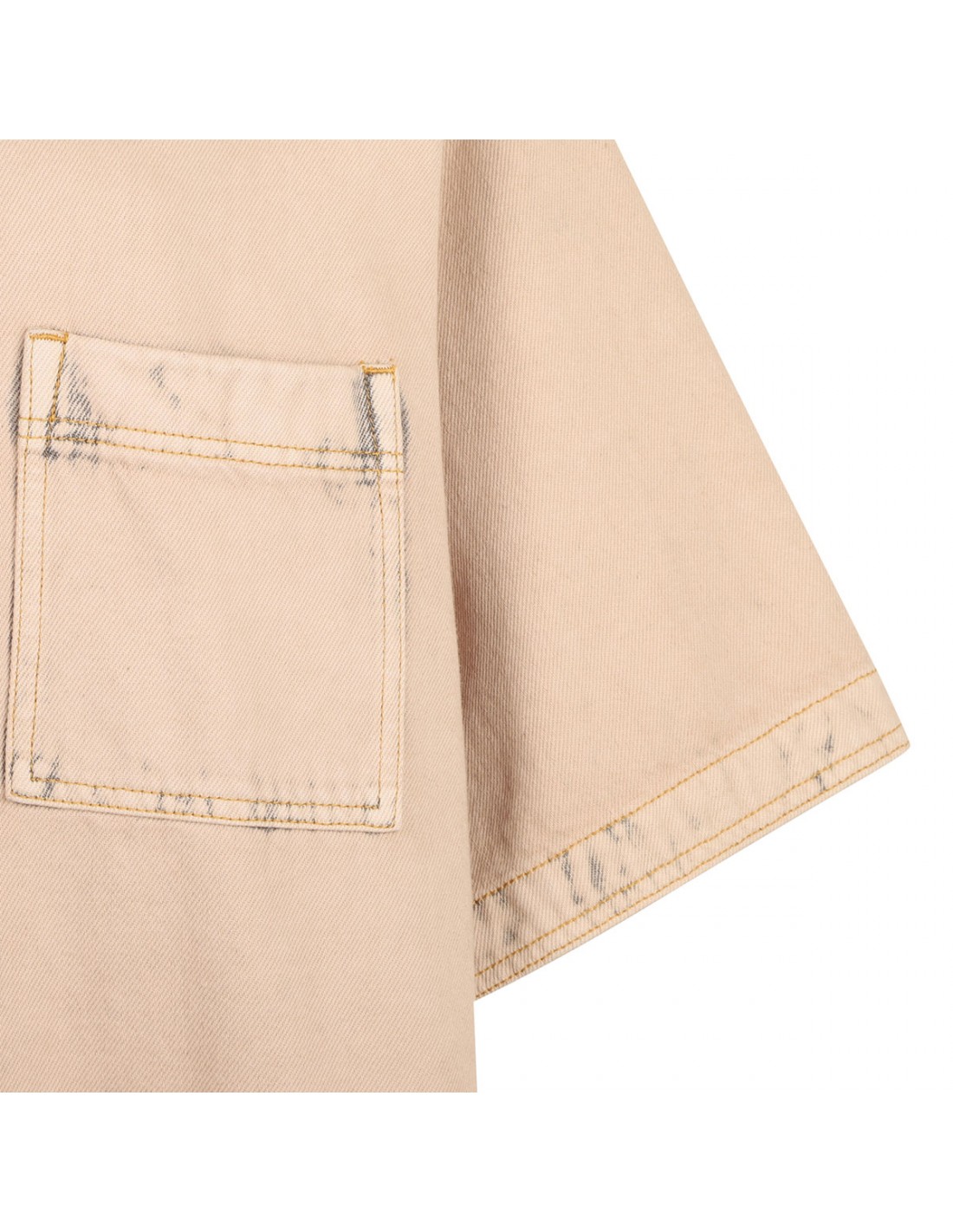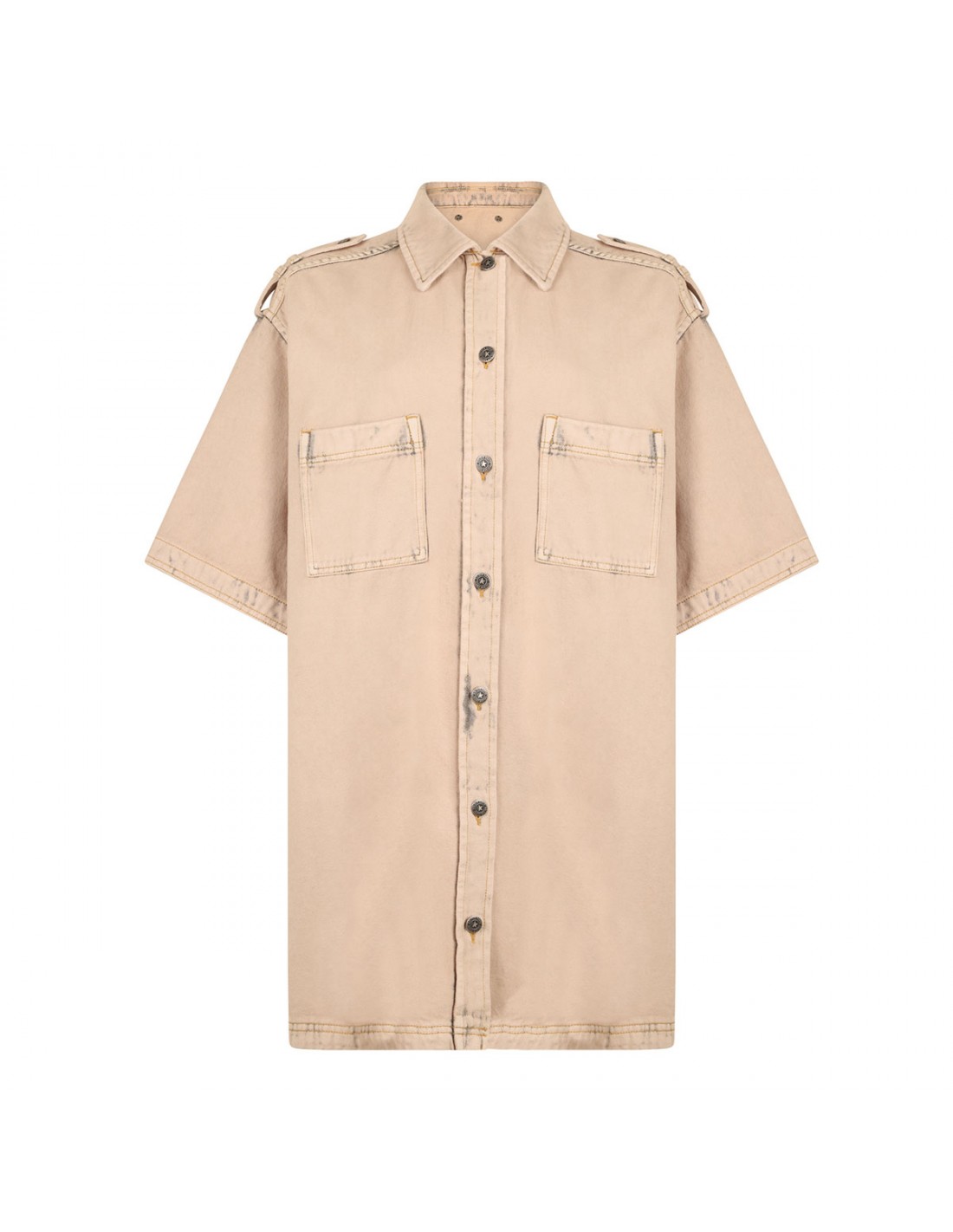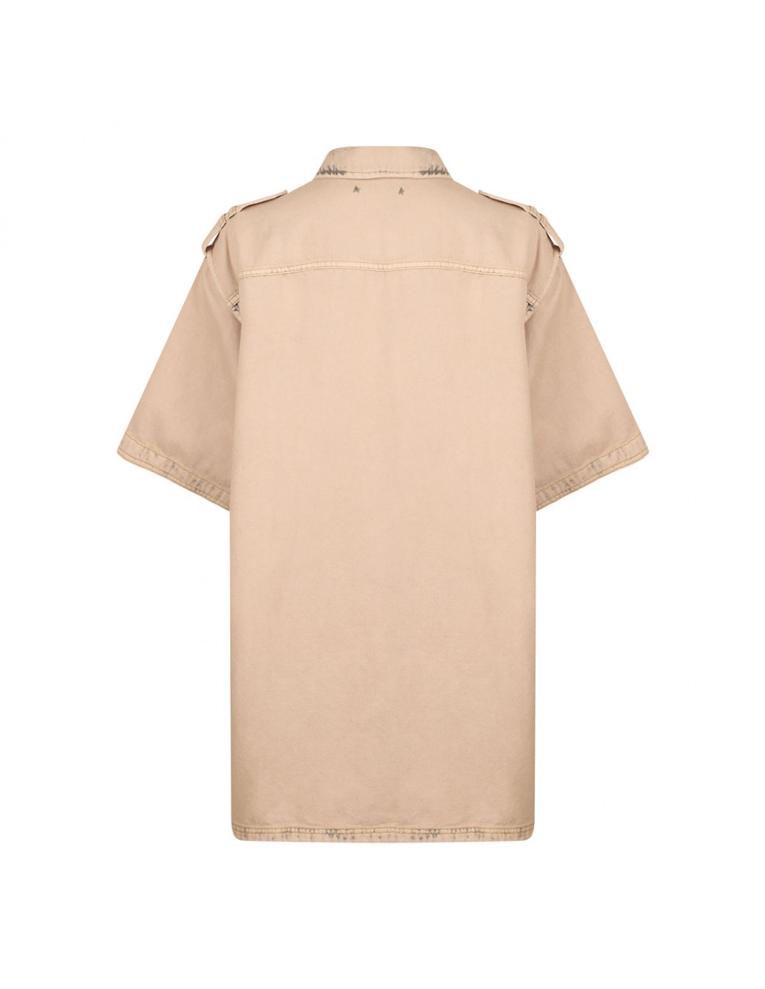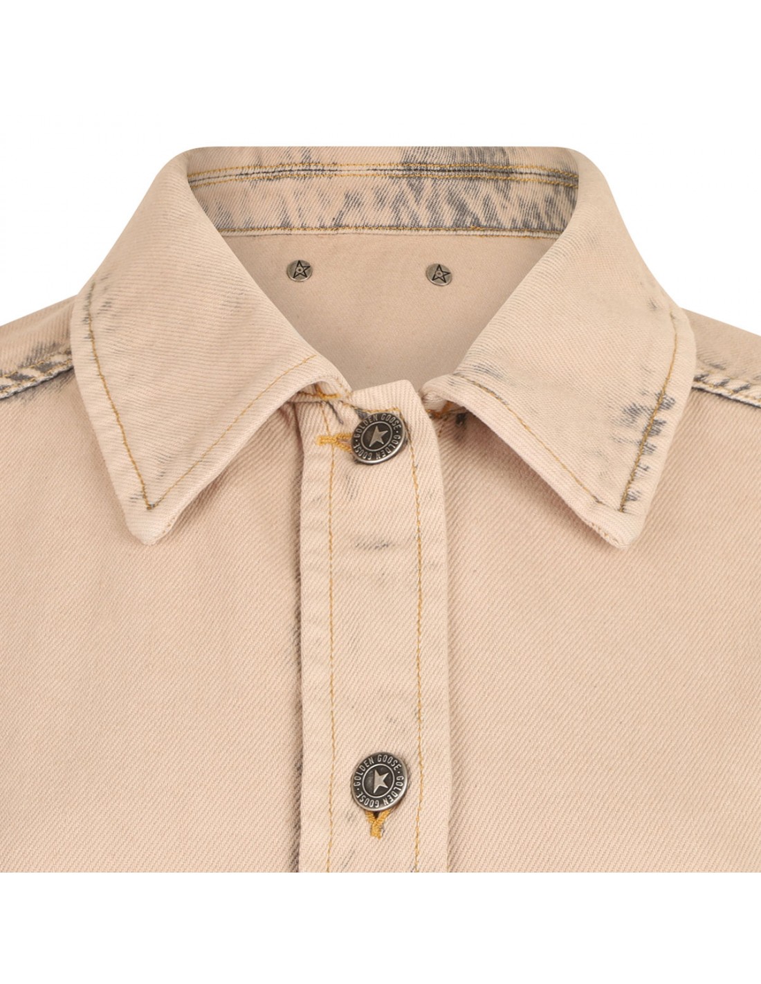 Cotton denim shirt from Golden Goose featuring two front patch pockets, short sleeves, button closure on front, double star on the back, oversized silhouette, shoulder epaulettes.