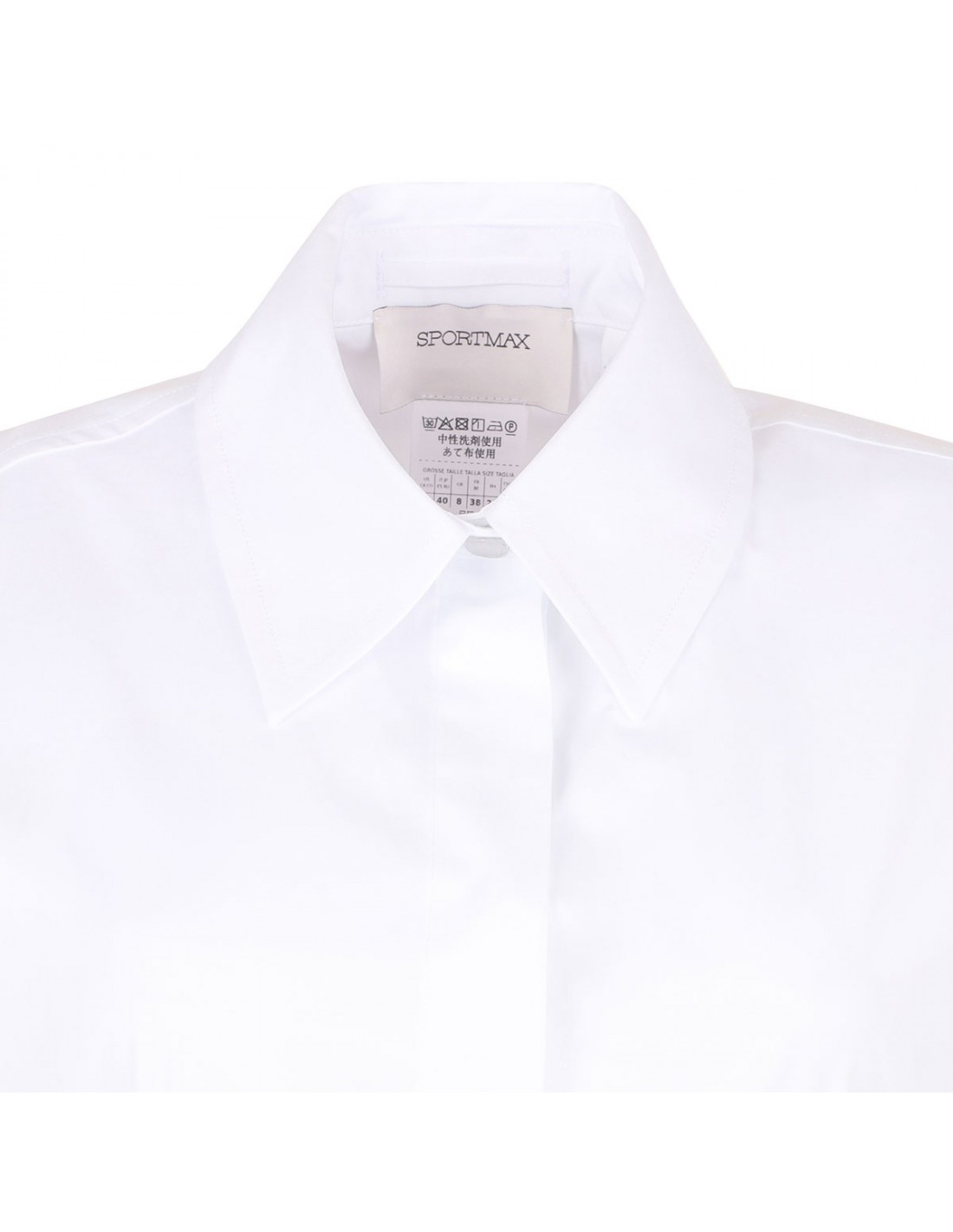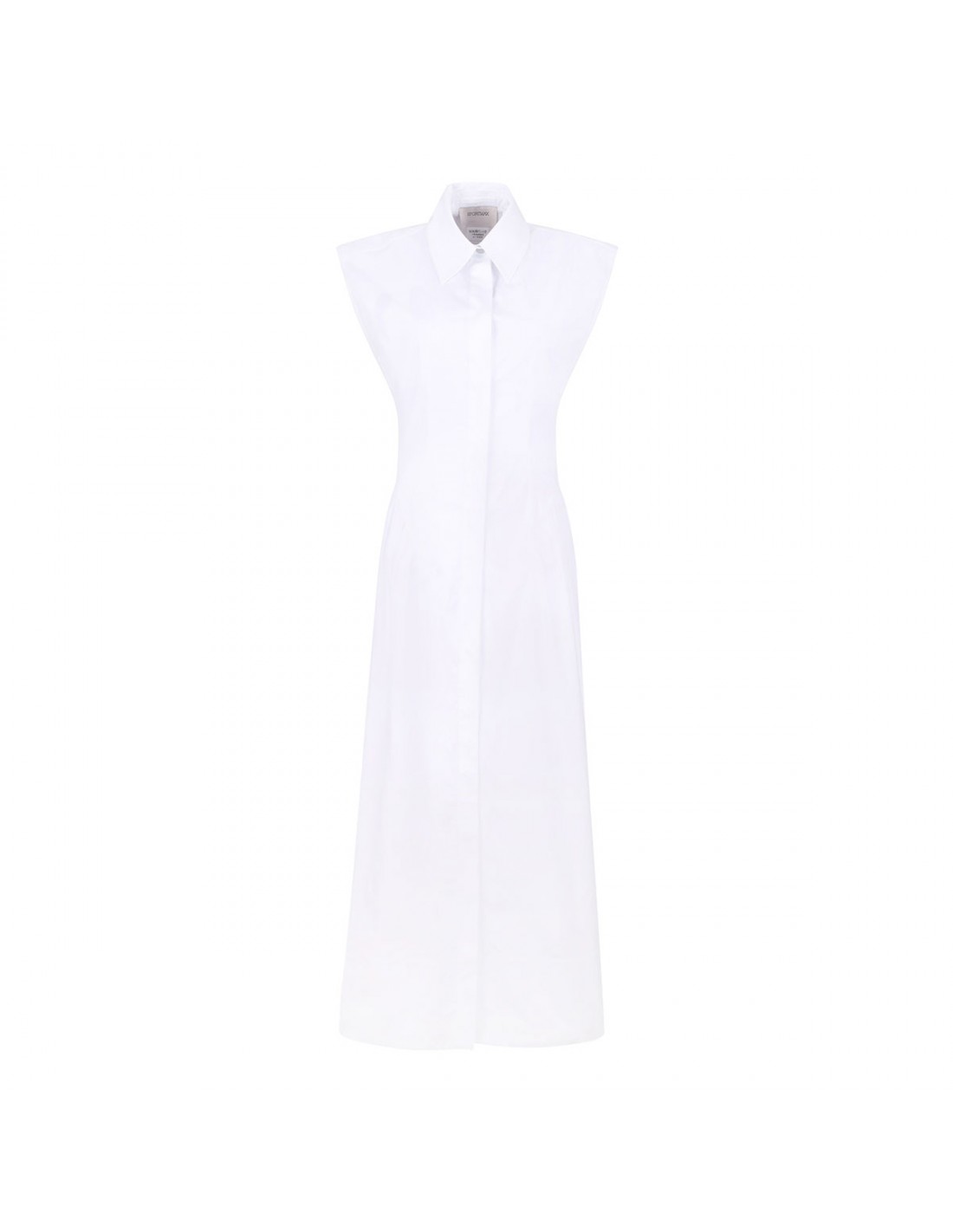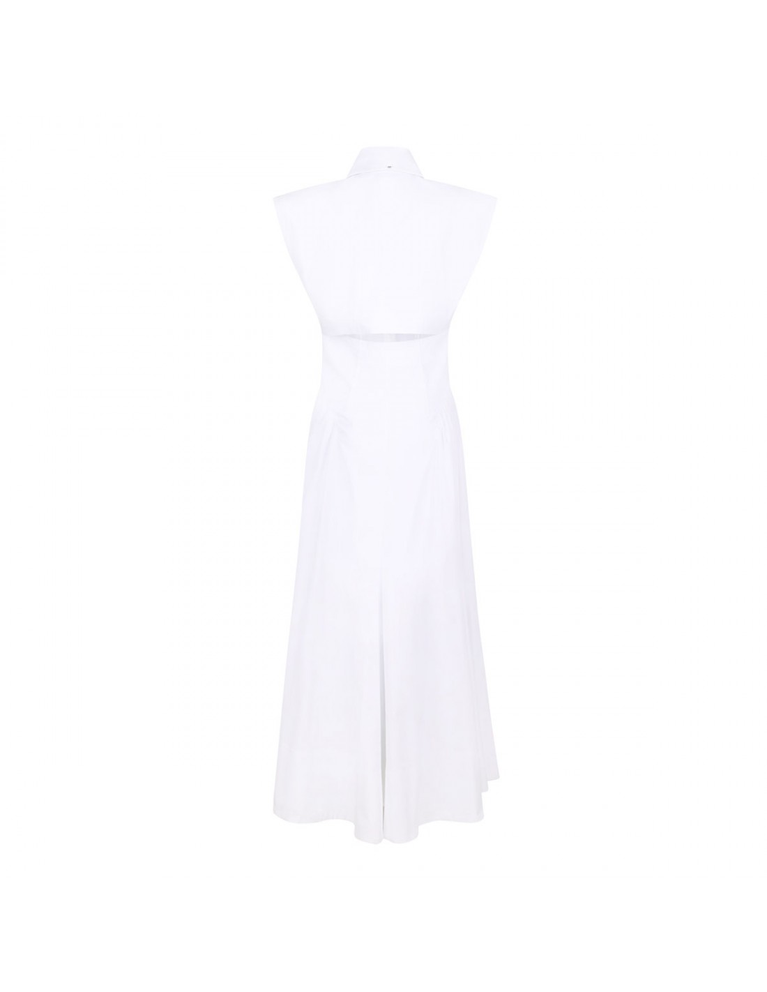 Optic white cotton sleeveless dress from Sportmax featuring pointed collar, concealed button front, dart and two rounded seams at the side, cut-out detail at waist level, wide volume at the skirt, regular fit.