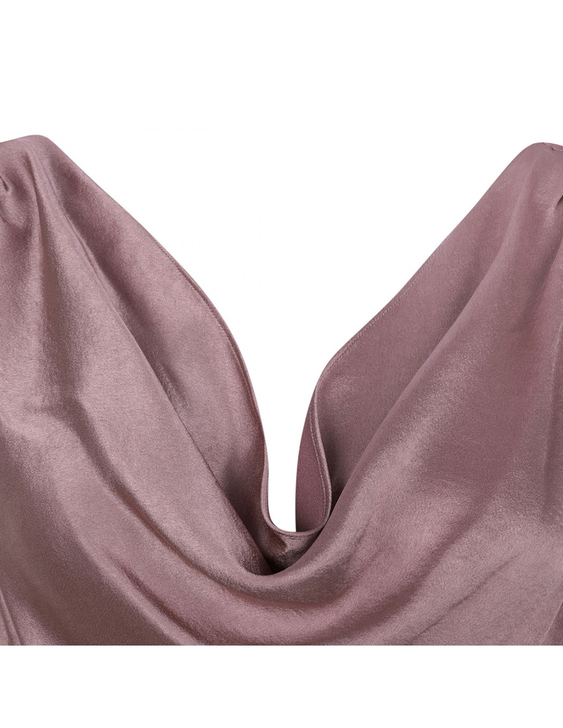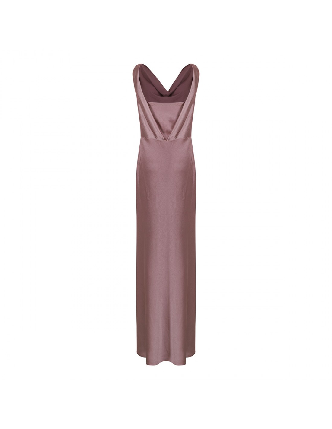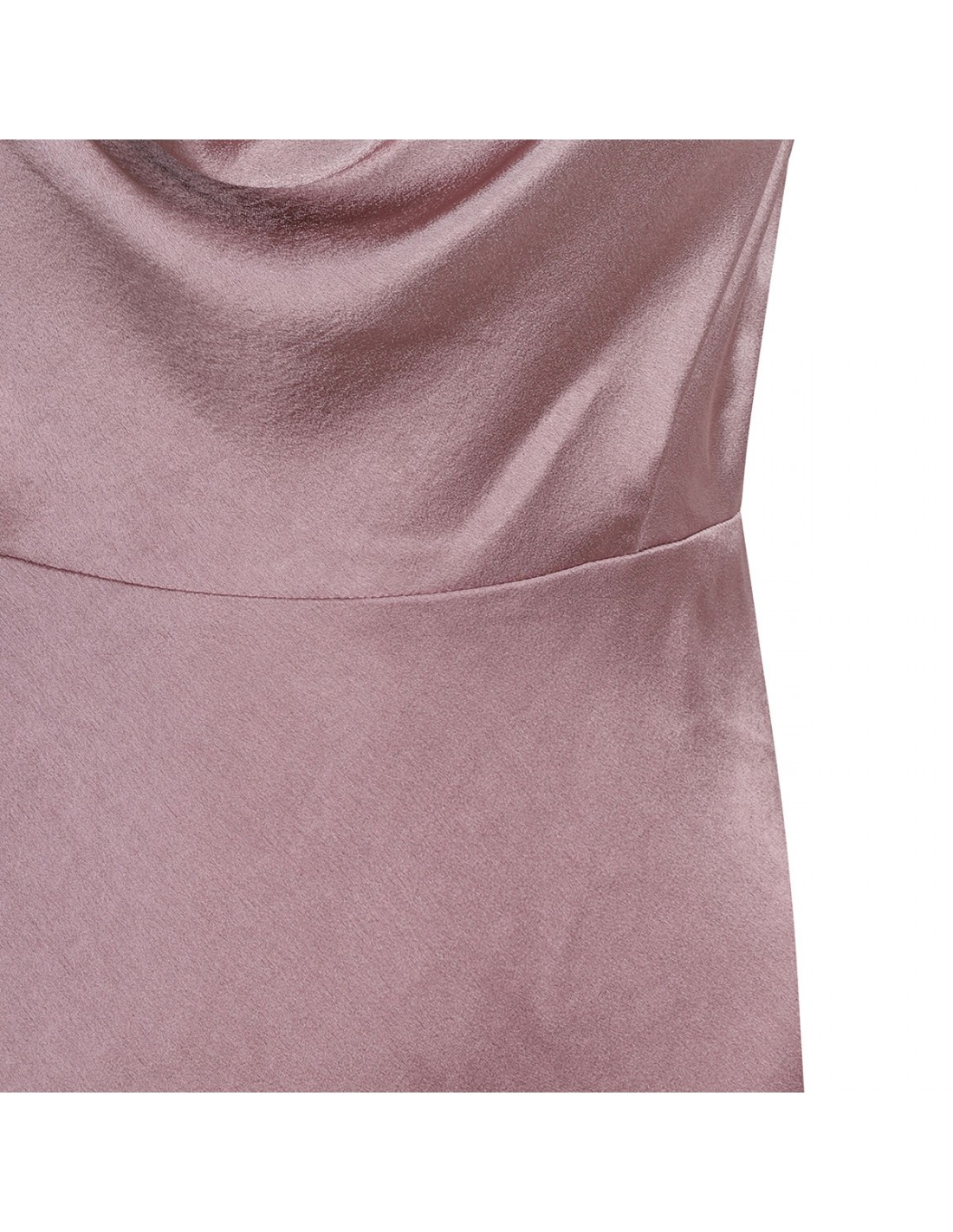 Powder pink satin maxi dress from Vince featuring cowl neck, bias cut, floor-sweeping silhouette, concealed zip fastening along side.