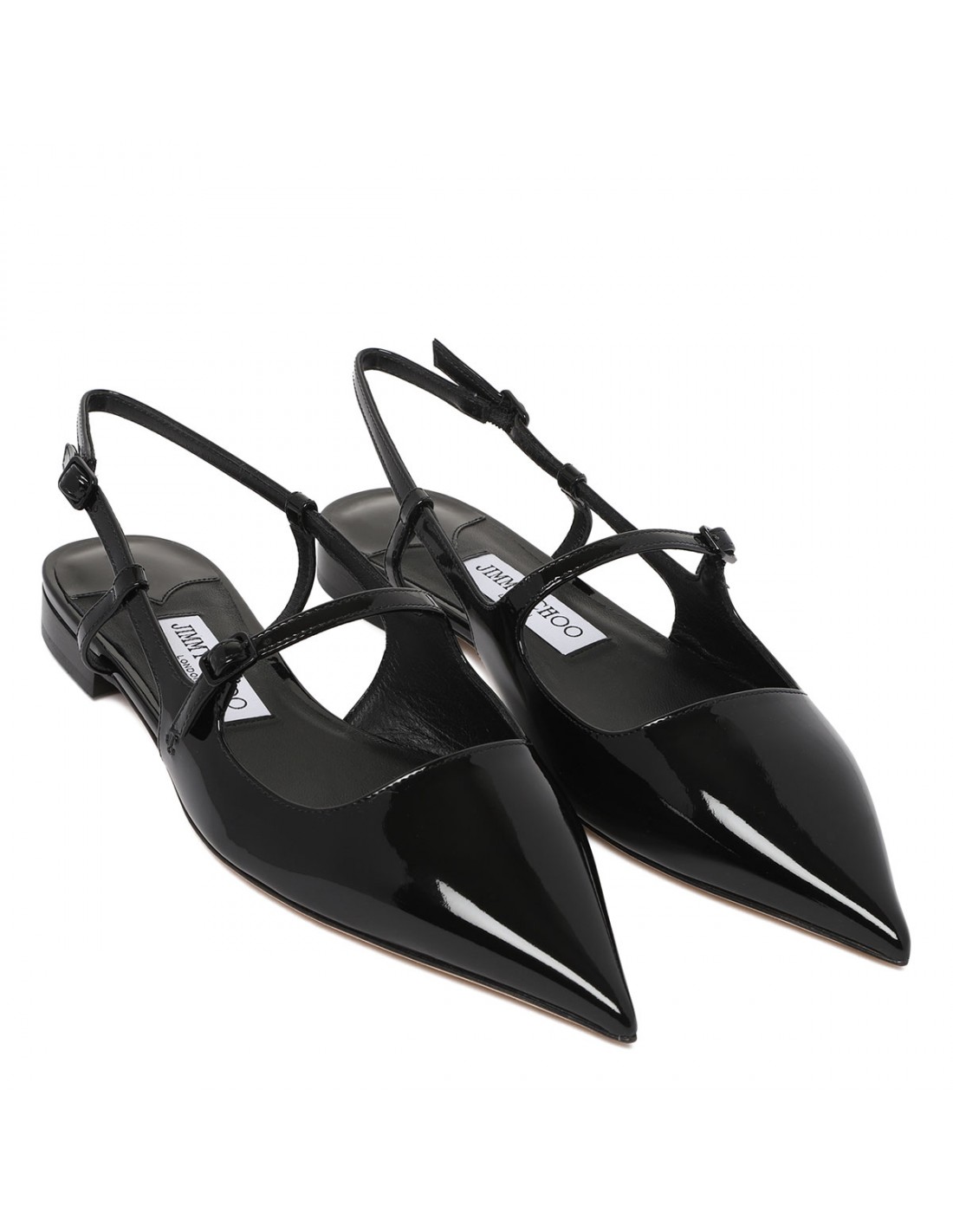 Black patent leather Didi slingback pumps from Jimmy Choo featuring pointed toe, elasticated slingback strap with buckle fastening, leather sole and lining.