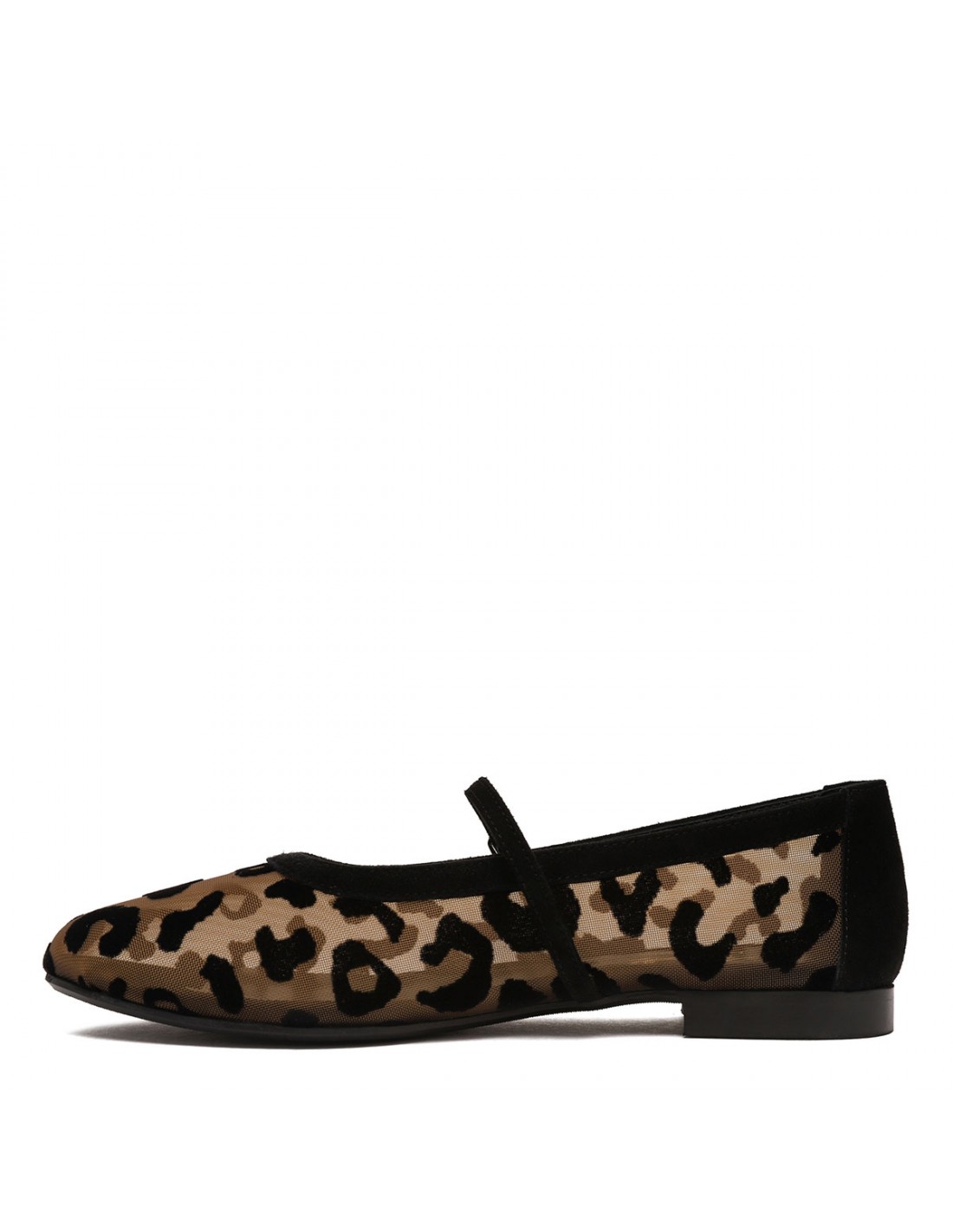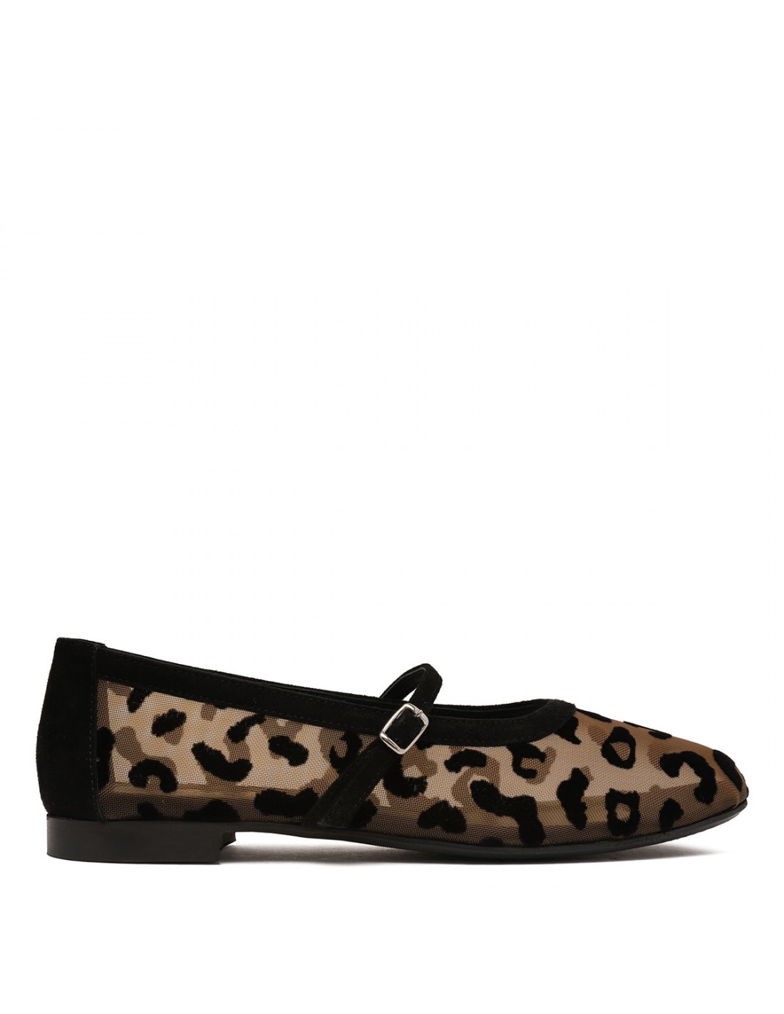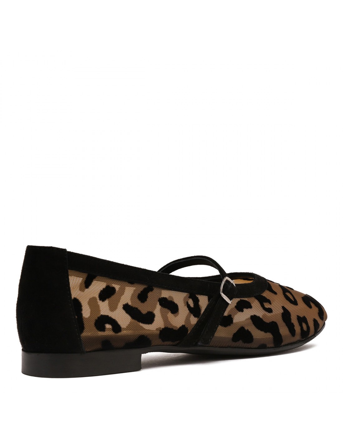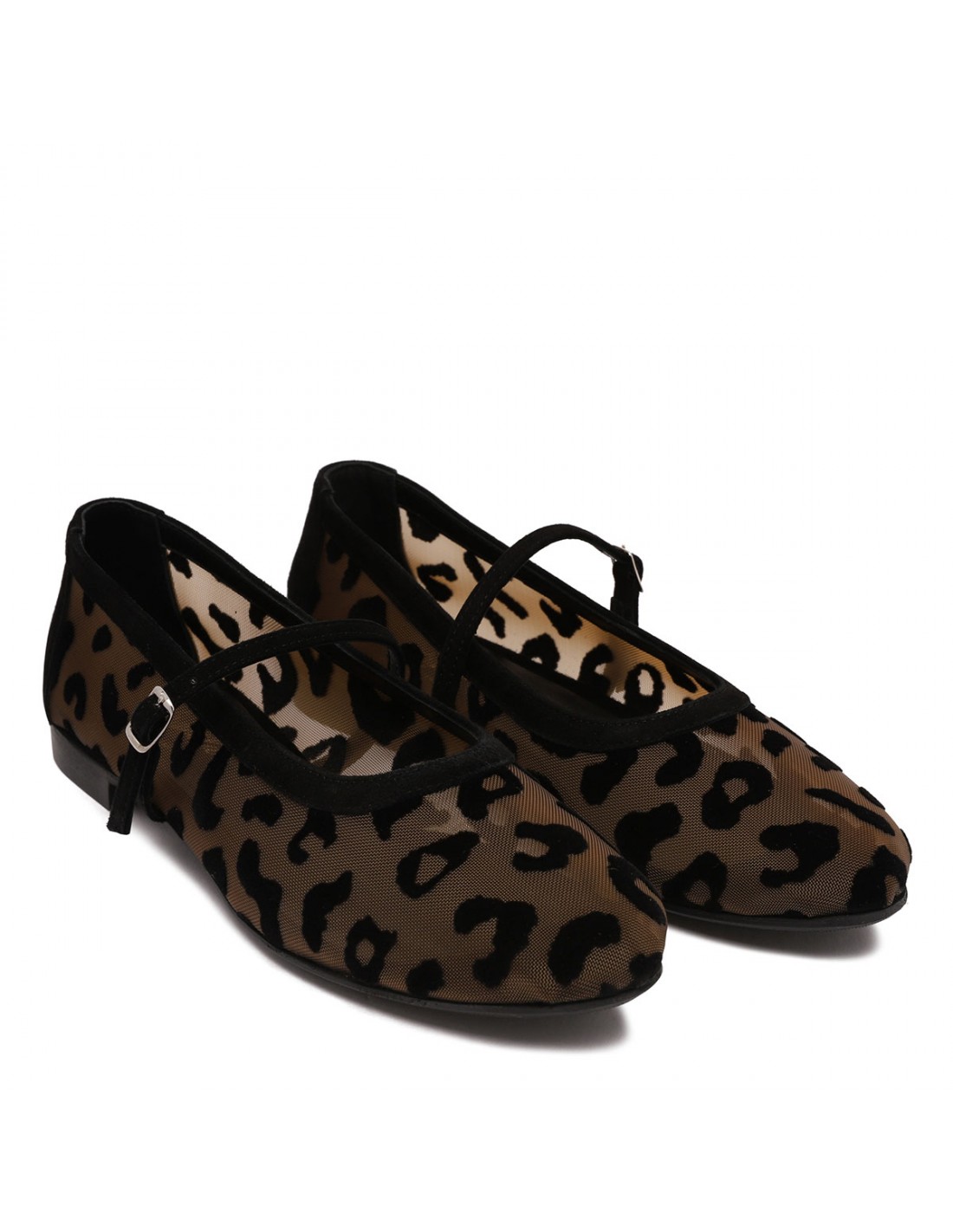 Hazelnut tulle Zante ballerinas from Argilla featuring flocked leopard motif, suede trims, strap with buckle closure, almond toe, leather insole and sole.