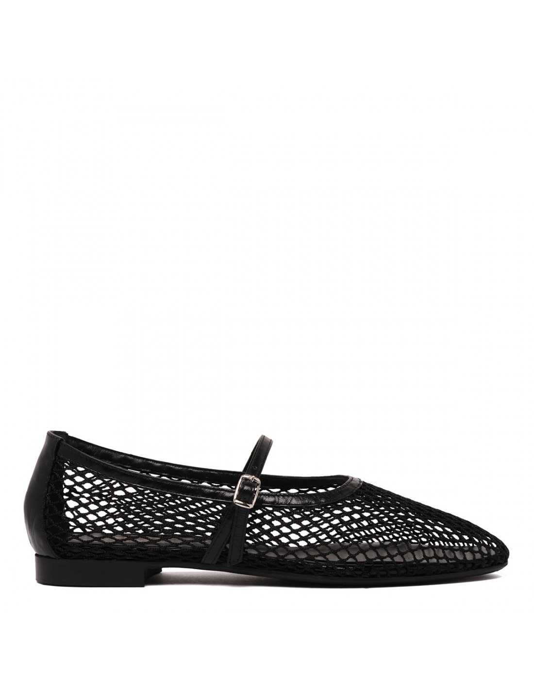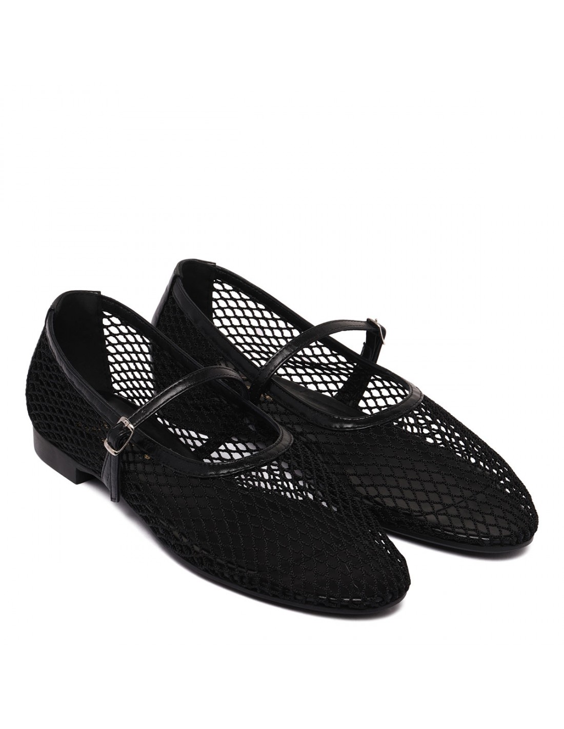 Black Zante ballerinas from Argilla featuring tonal leather trims, strap with buckle closure, almond toe, leather insole and sole.