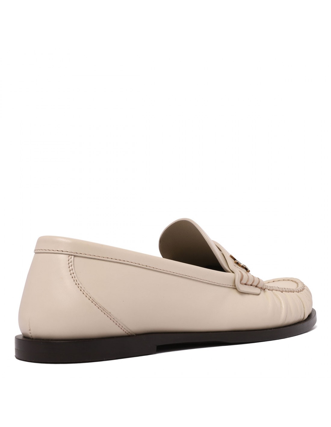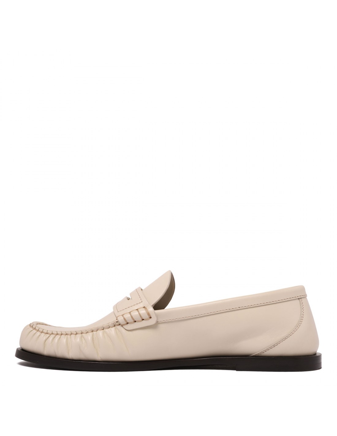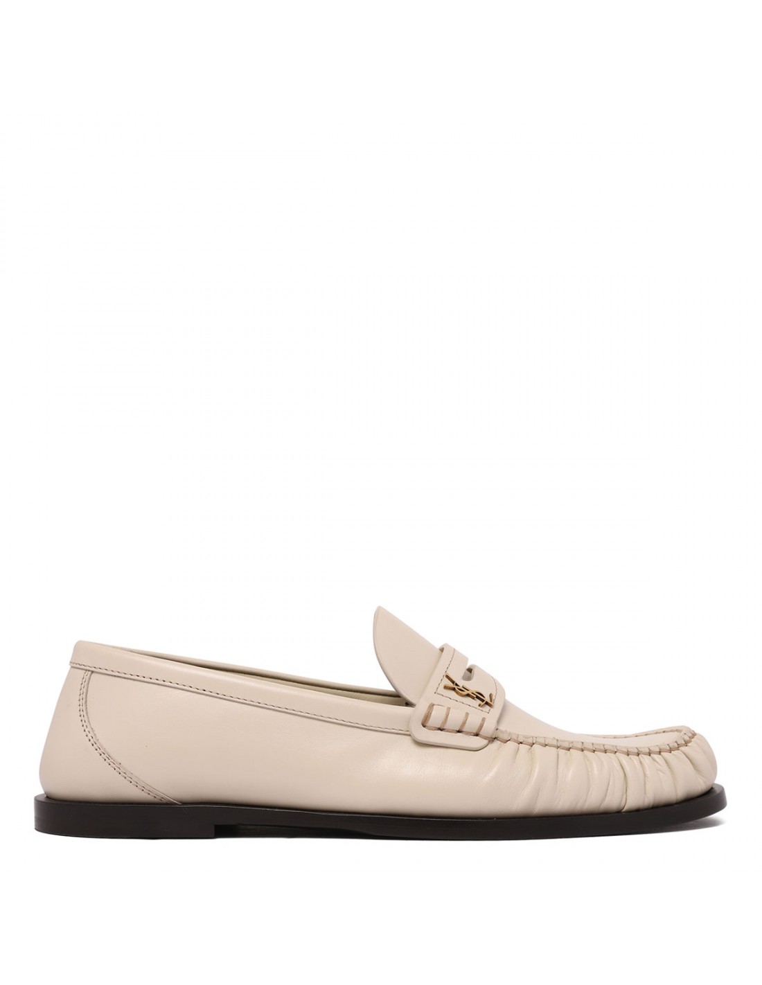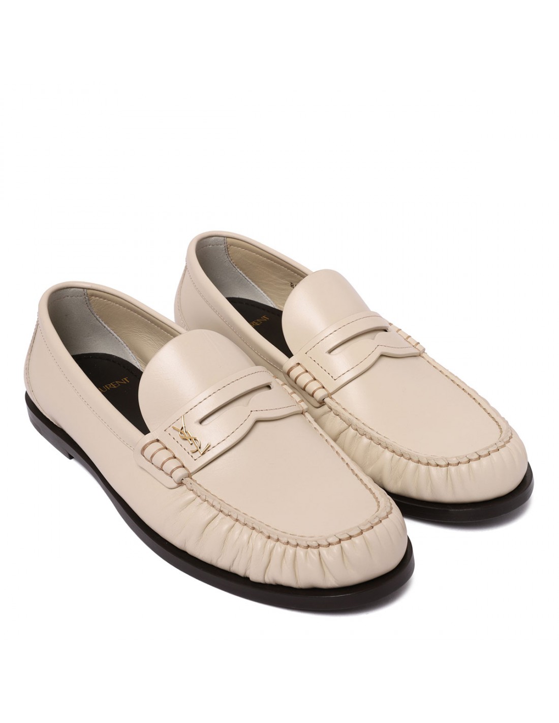 Natural white smooth leather Penny loafers from Saint Laurent featuring Cassandre detail, hand-stitched squared moc toe, leather lining and sole.