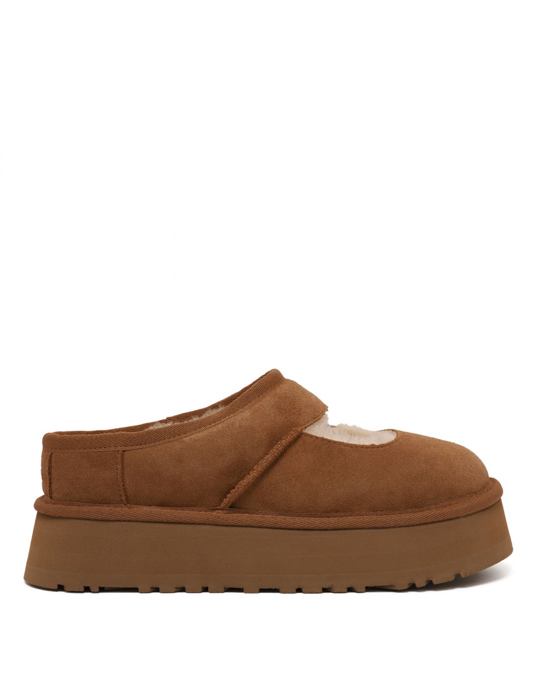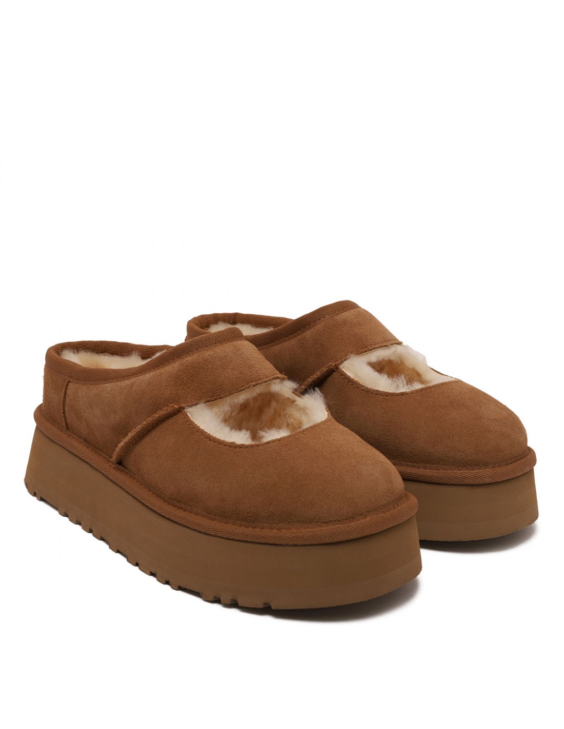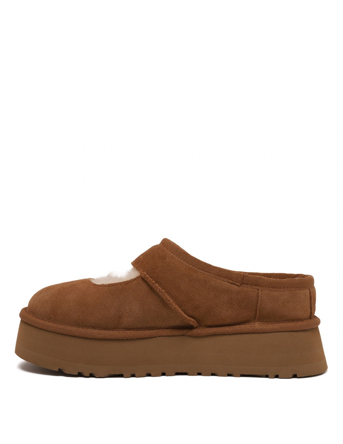 Chestnut hue suede Bea Mary Jane platform shoes from UGG featuring padded collar, twin seam and overstitched binding, foam footbed, sheepskin lining, EVA midsole, UGGplush™ insole, sugarcane EVA outsole.