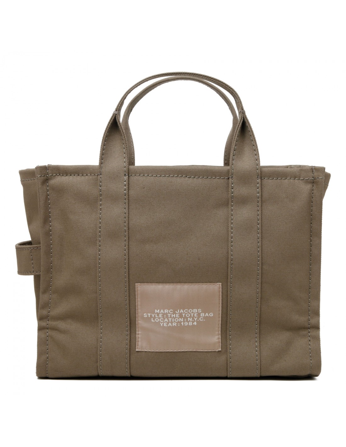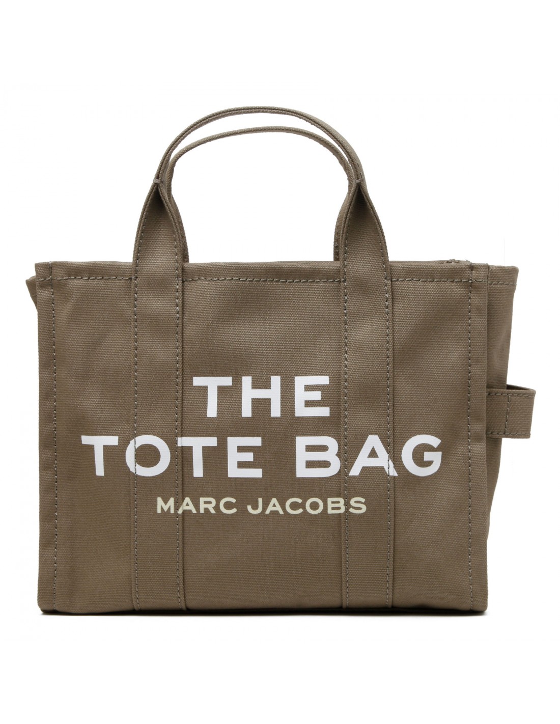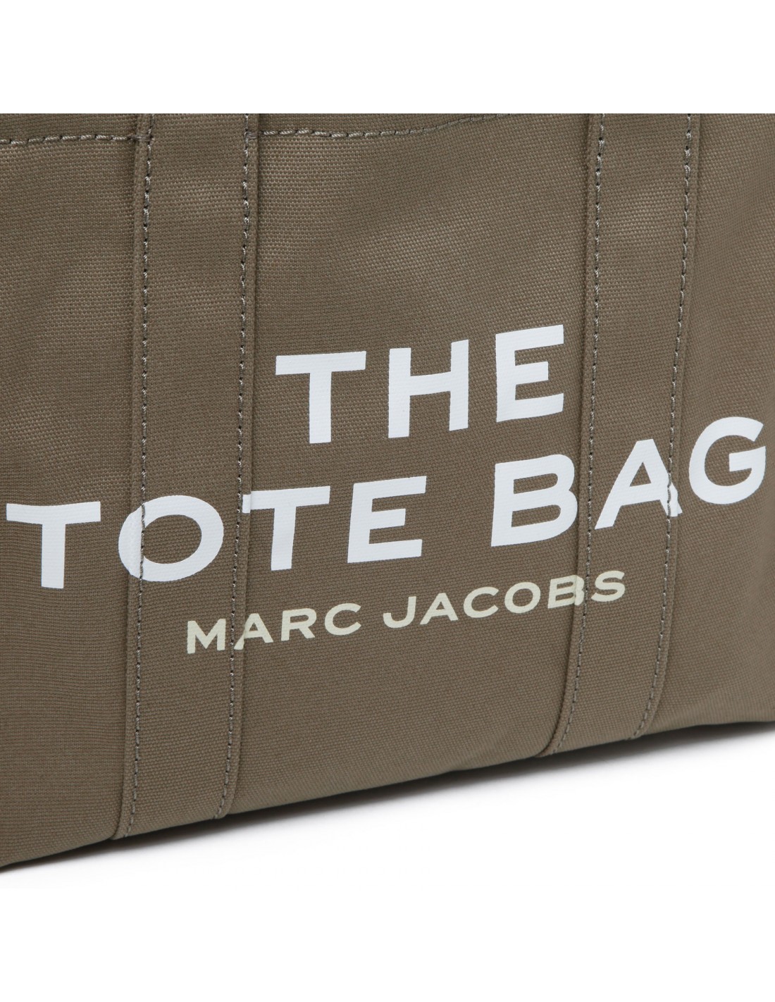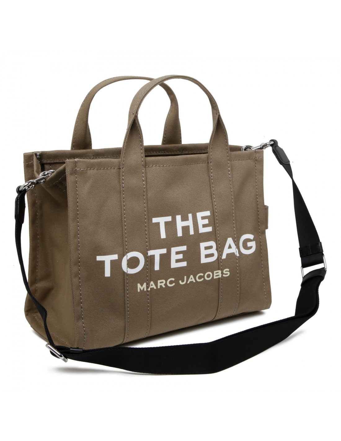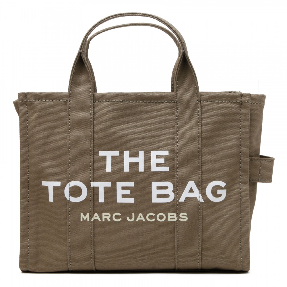 Deep green The Tote medium bag from Marc Jacobs featuring logo print, small logo patch, zip fastening along top, detachable and adjustable webbing shoulder strap, canvas top handles, internal zipped and open pockets.