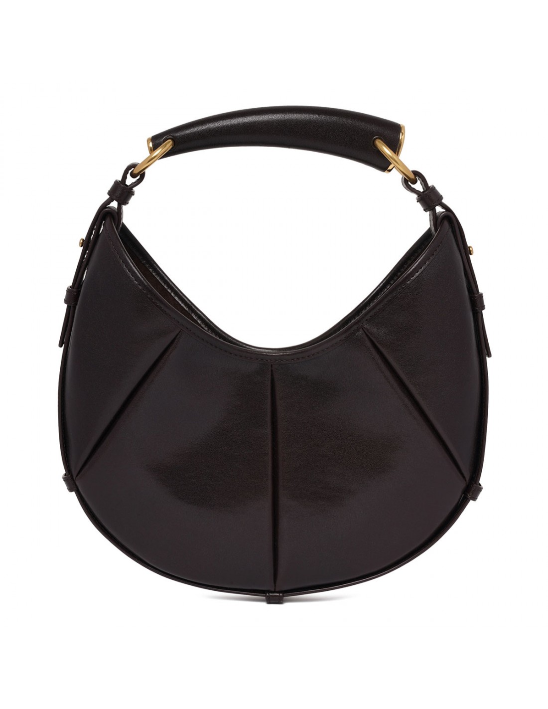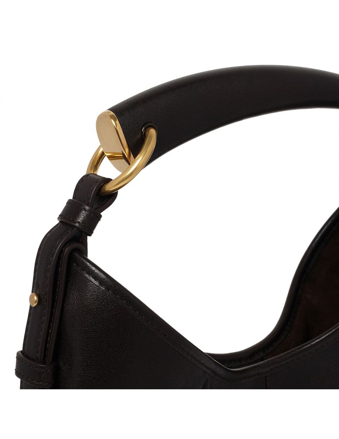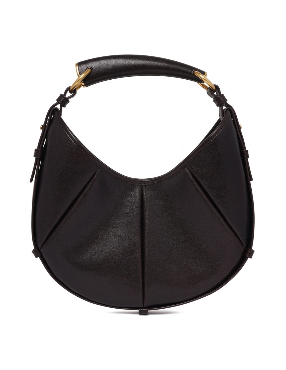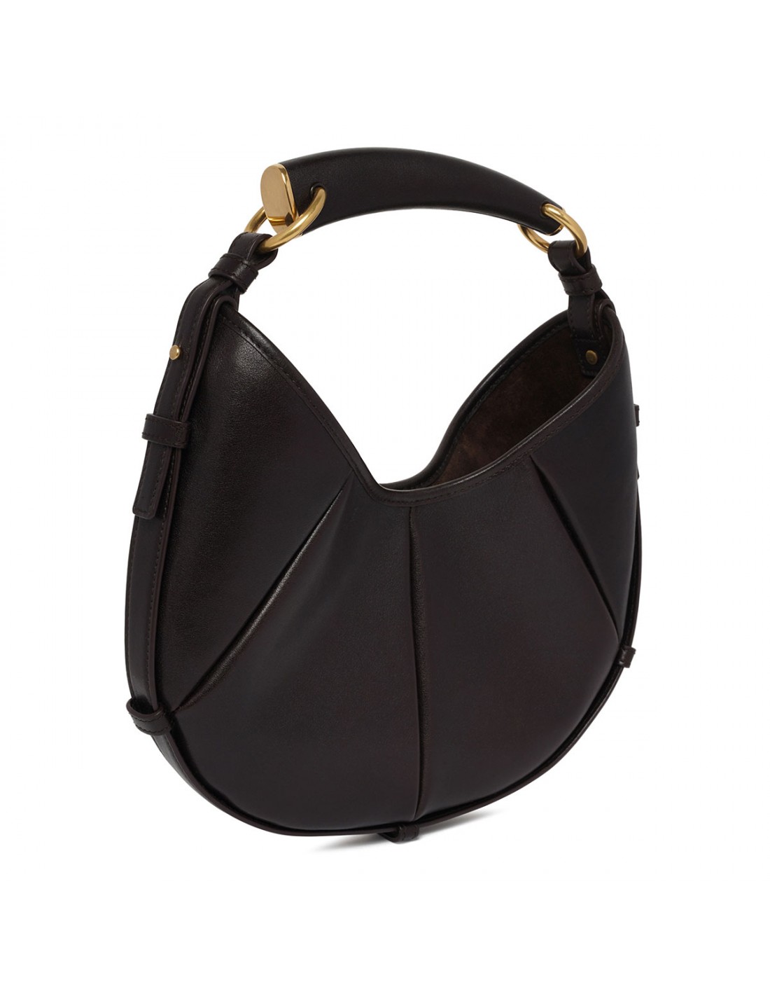 Dark chocolate padded leather Mombasa small hobo bag from Saint Laurent featuring leather covered handle, magnetic snap closure, bronze-tone hardware, tonal suede lining.