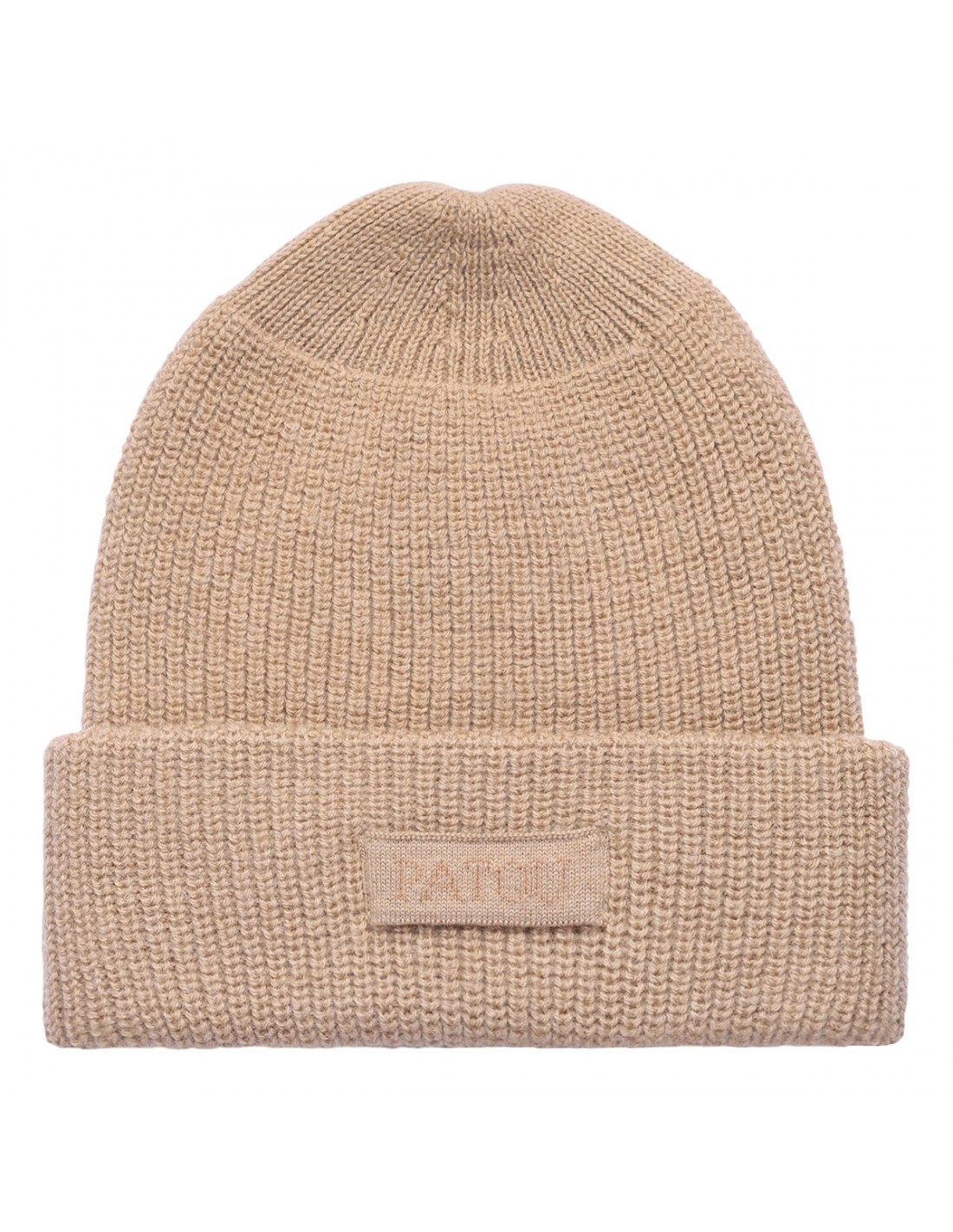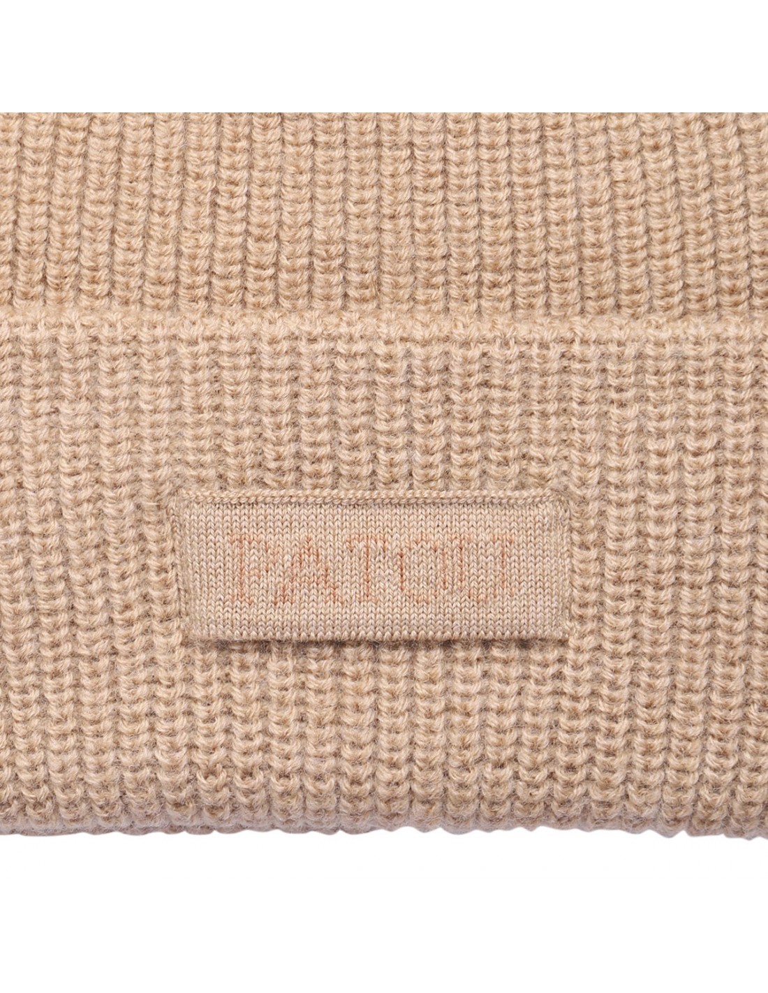 A beanie made from wool with a ribbed texture, featuring a cuff and a tone-on-tone logo detail.