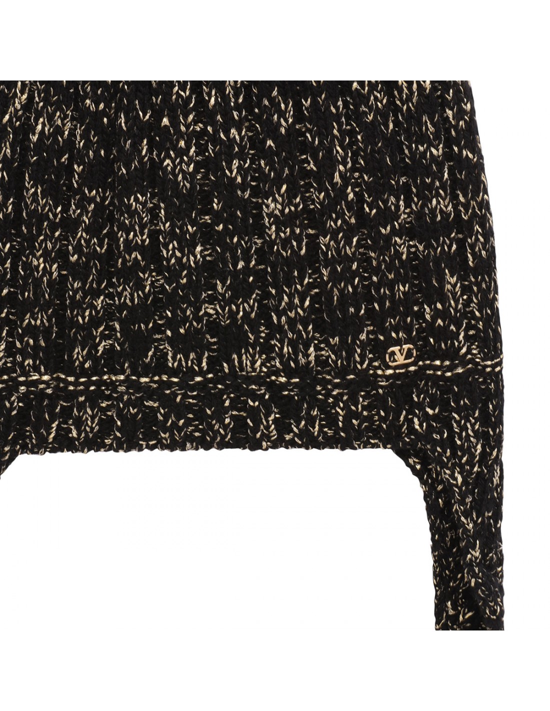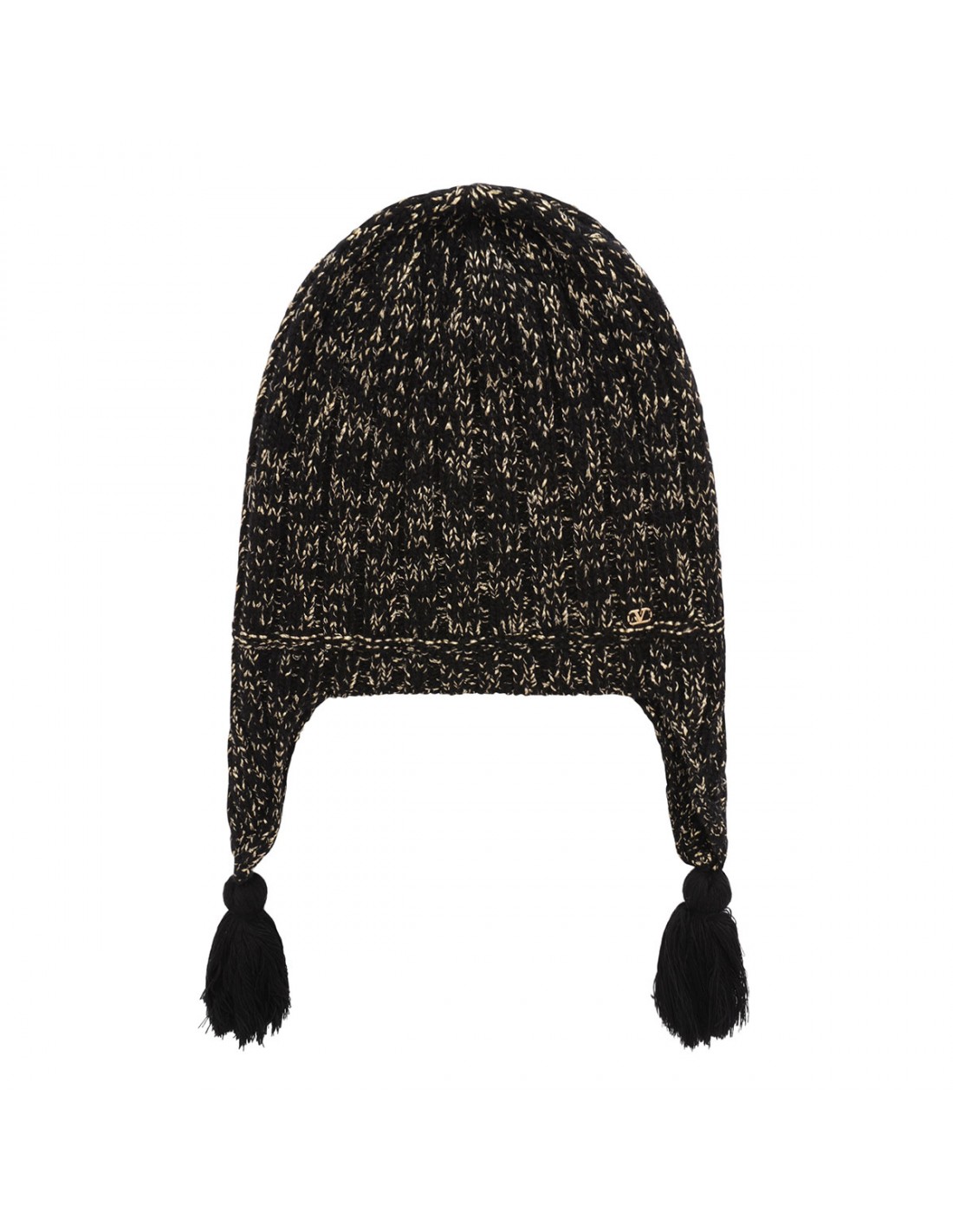 Black lurex wool blend beanie from Valentino featuring VLogo signature detail, tasseled trims.