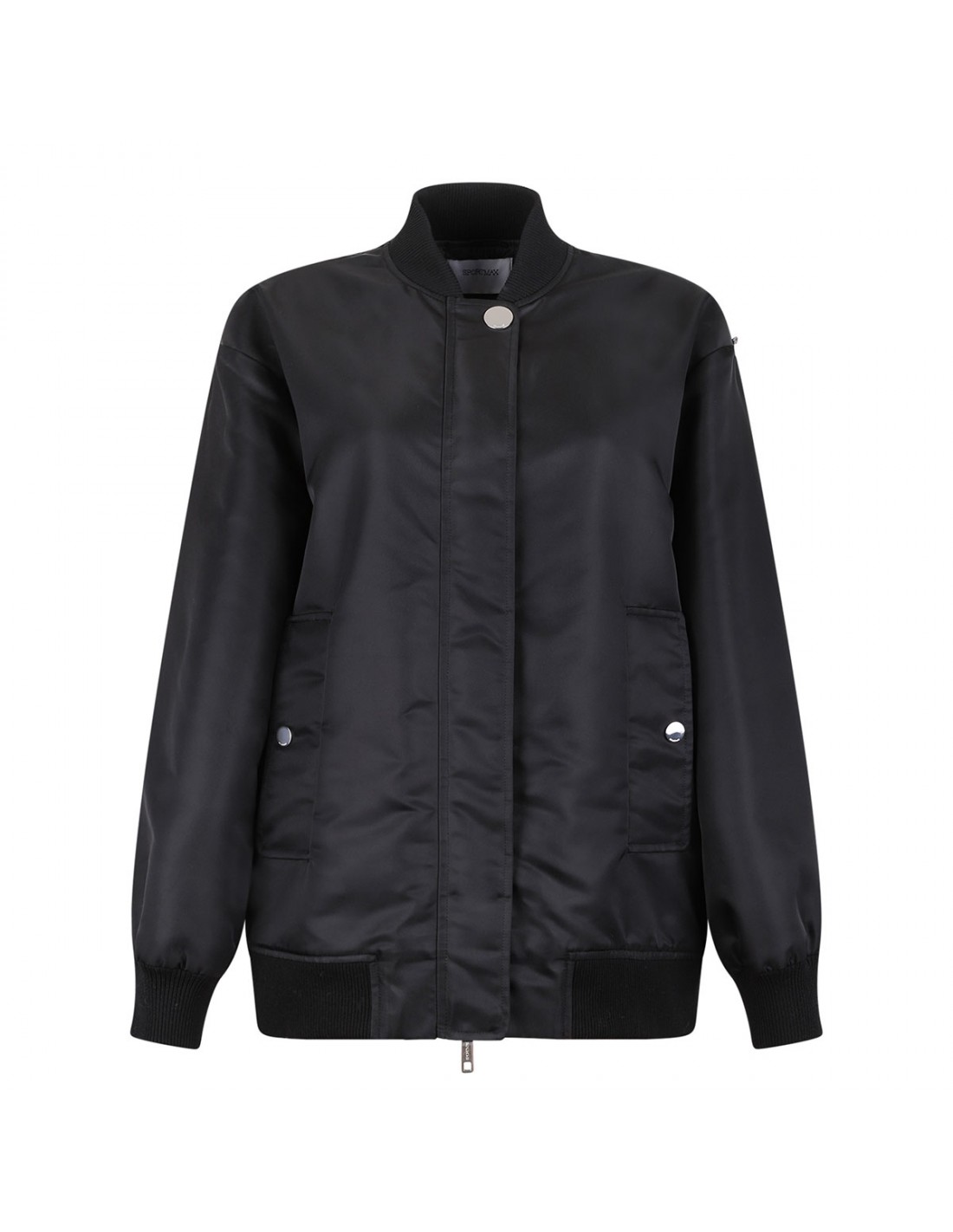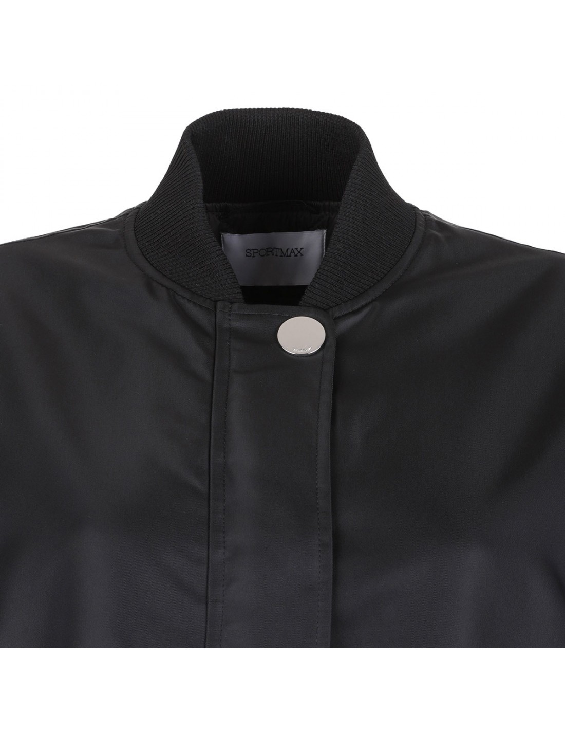 Black water-repellent twill Agape bomber jacket from Sportmax featuring internal padding, oversized silhouette, raised collar, concealed zip fastening with snap-buttons, ribbed details on collar, cuffs and hem, side pockets and quilted lining.