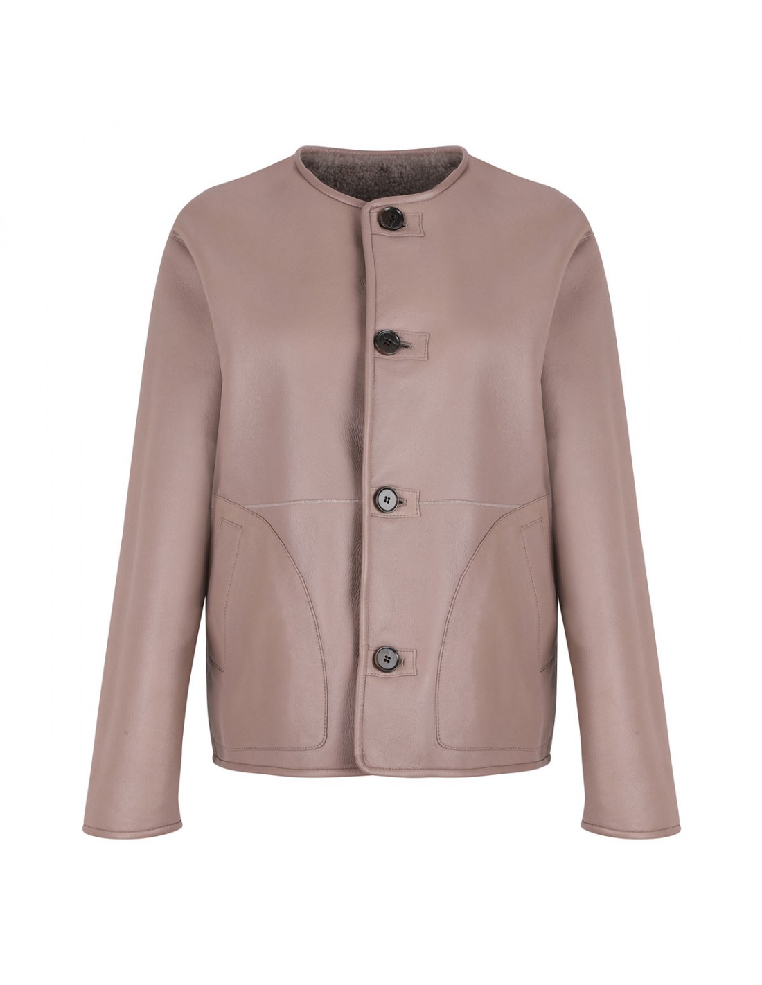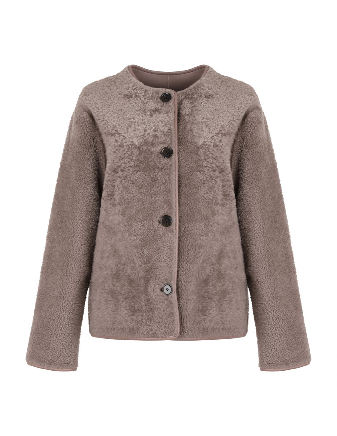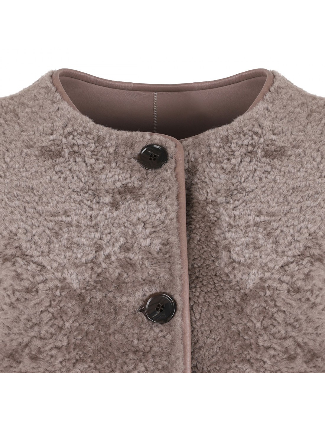 Lucine reversible jacket from Arma featuring one side in taupe nappa and other side in gray merinillo shearling, crew collar, button closure and long sleeves.