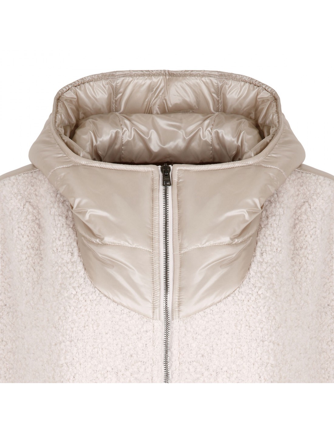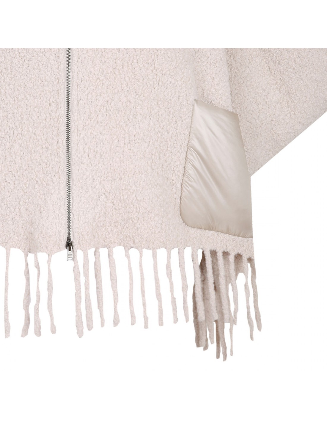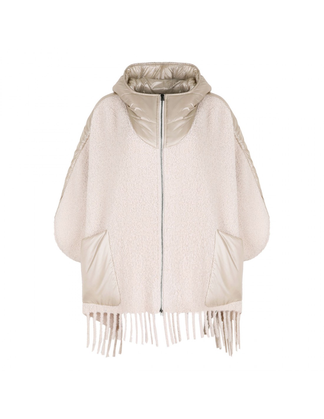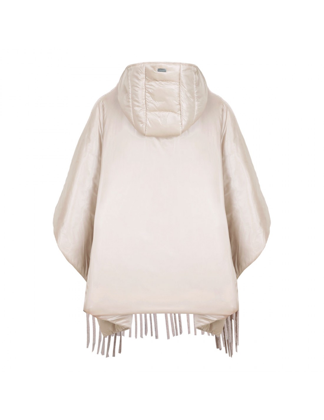 Chantilly hue alpaca and nylon poncho jacket from Herno featuring fixed hood, protective collar, zip fastening along side, front patch pockets, fringed hem.