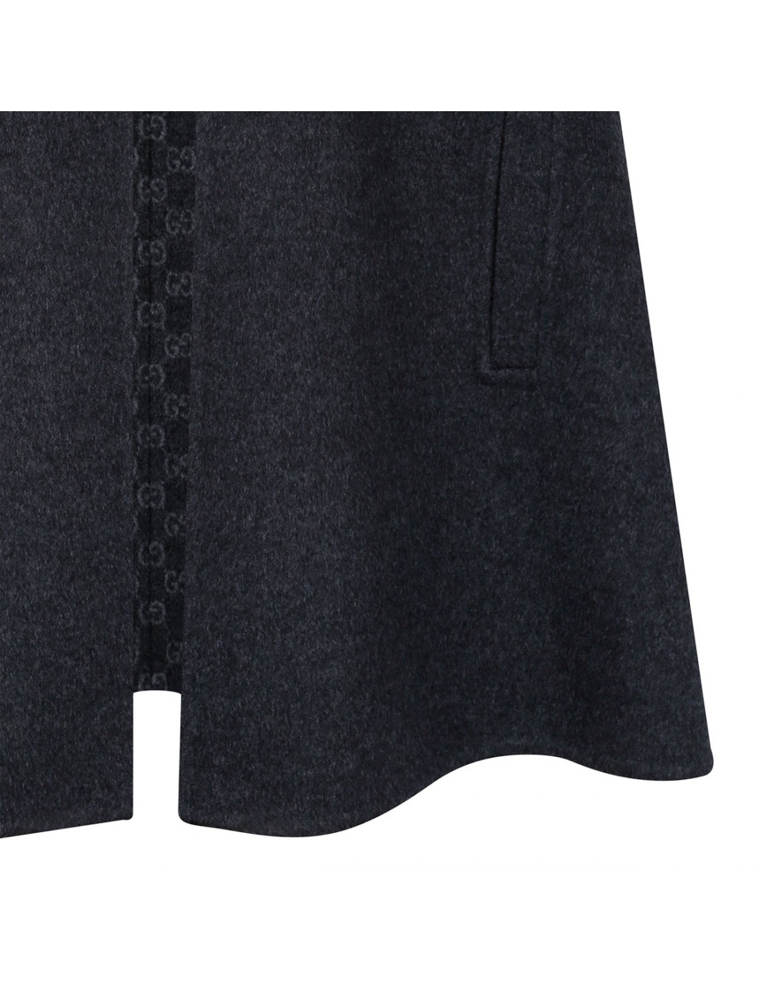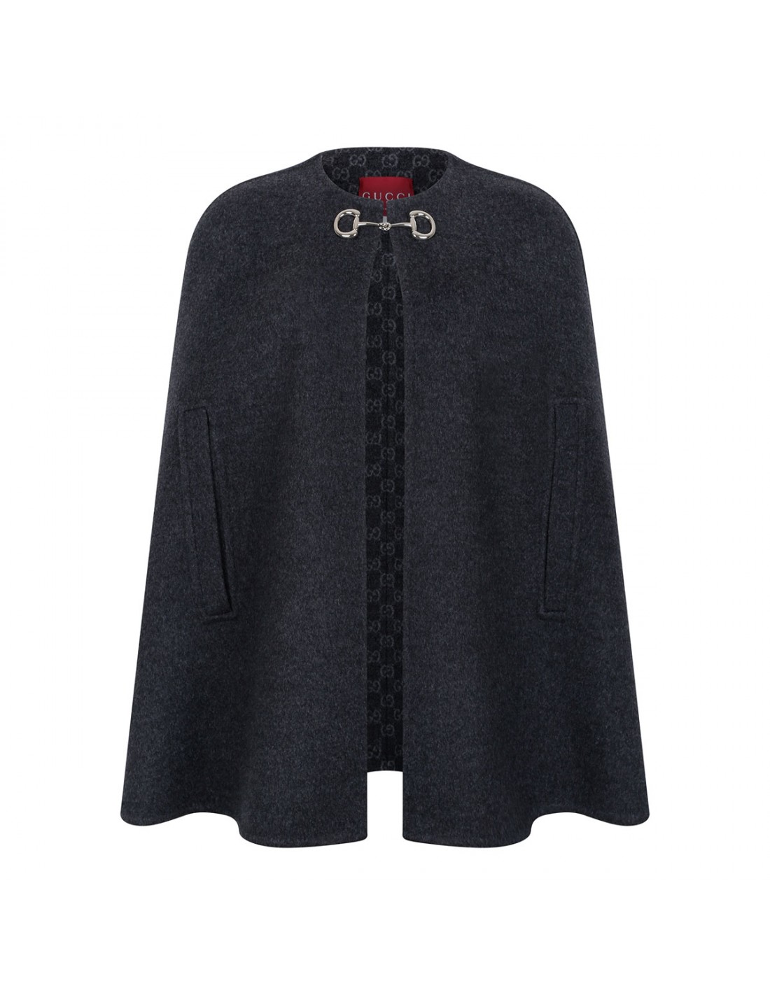 Dark gray silk wool cape from Gucci featuring inner side in GG silk wool, Horsebit, two side pockets.
