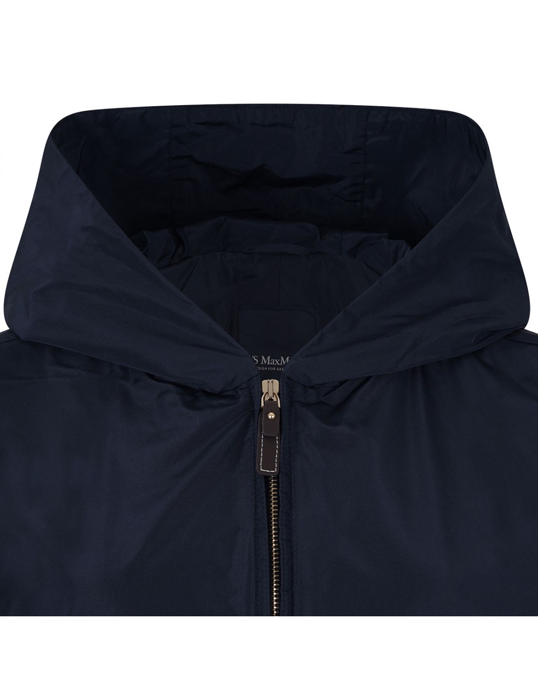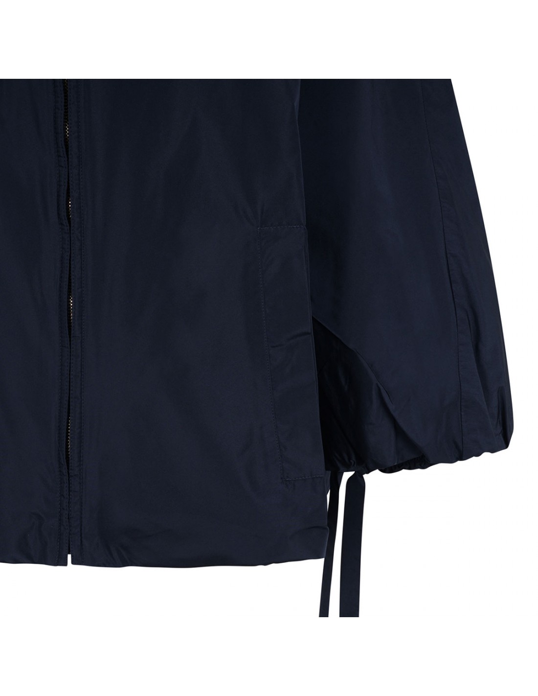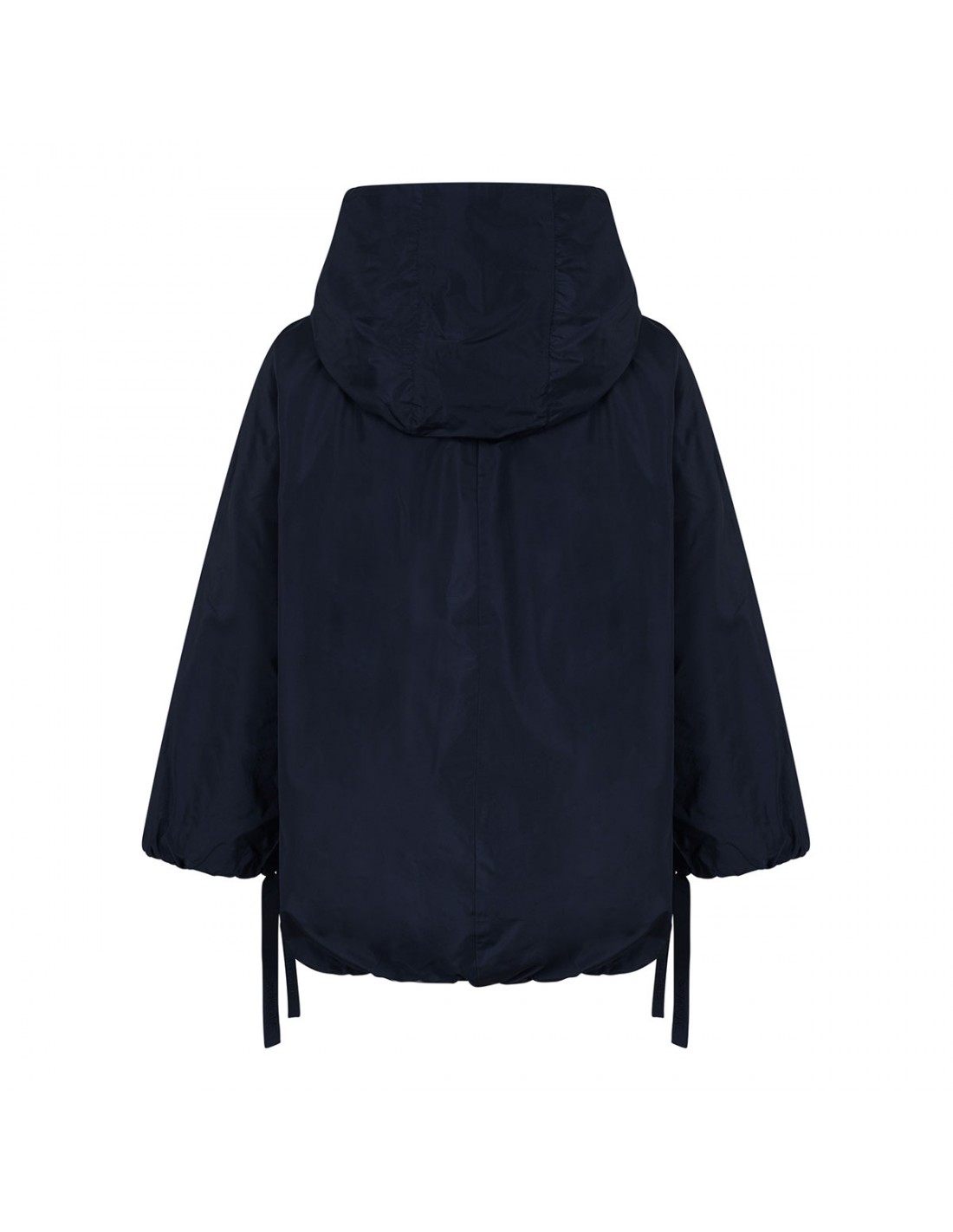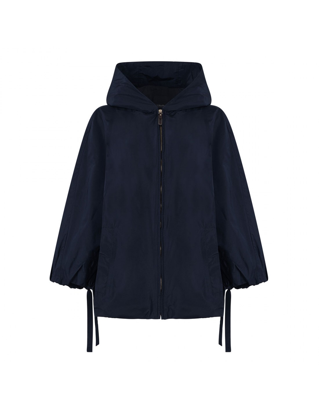 Marine blue water-repellent taffeta Pantone jacket from 'S Max Mara featuring oversized silhouette, elastic hem on the back, fixed hood, long kimono sleeves with branded drawstring at cuffs, zip fastening at the front, welt side pockets.
