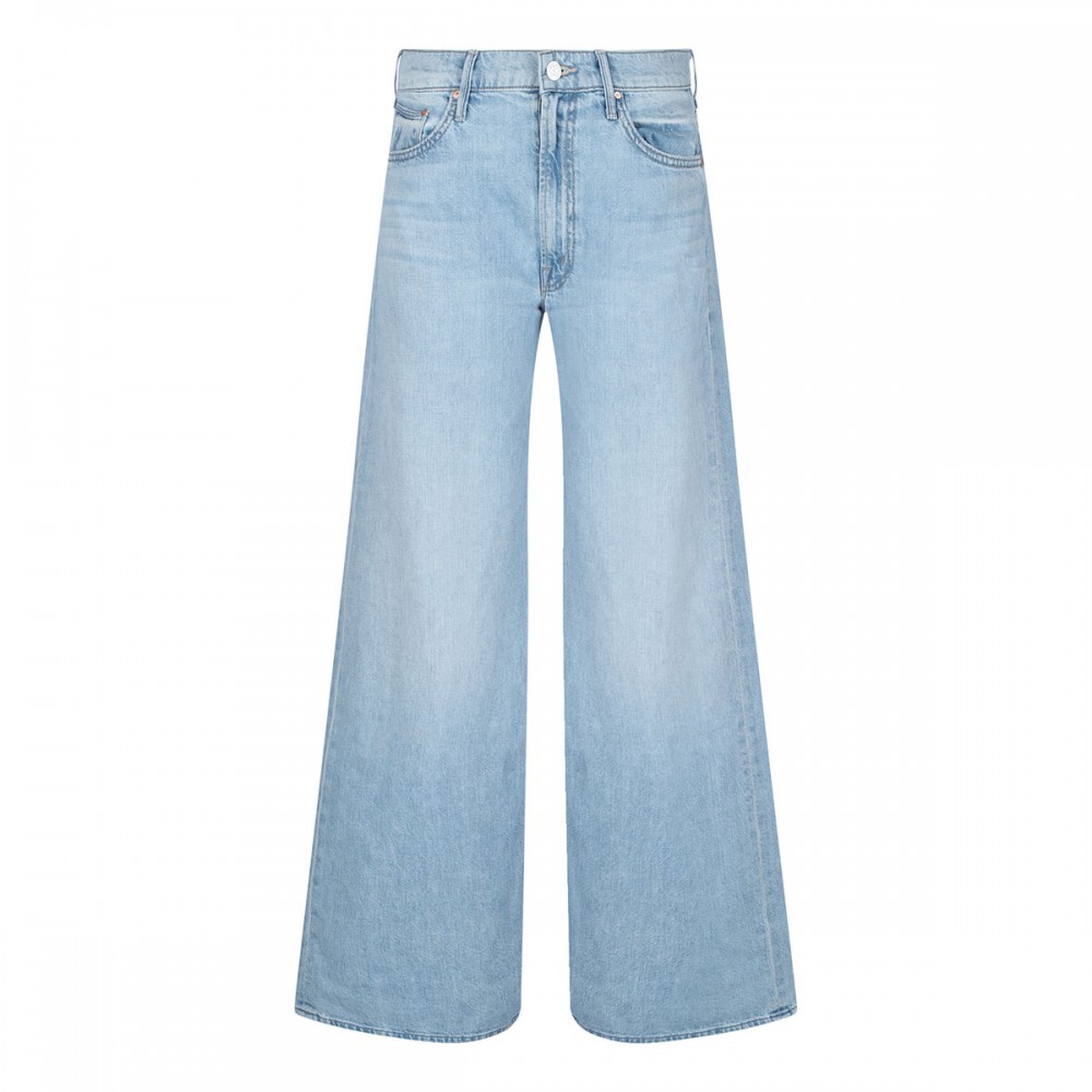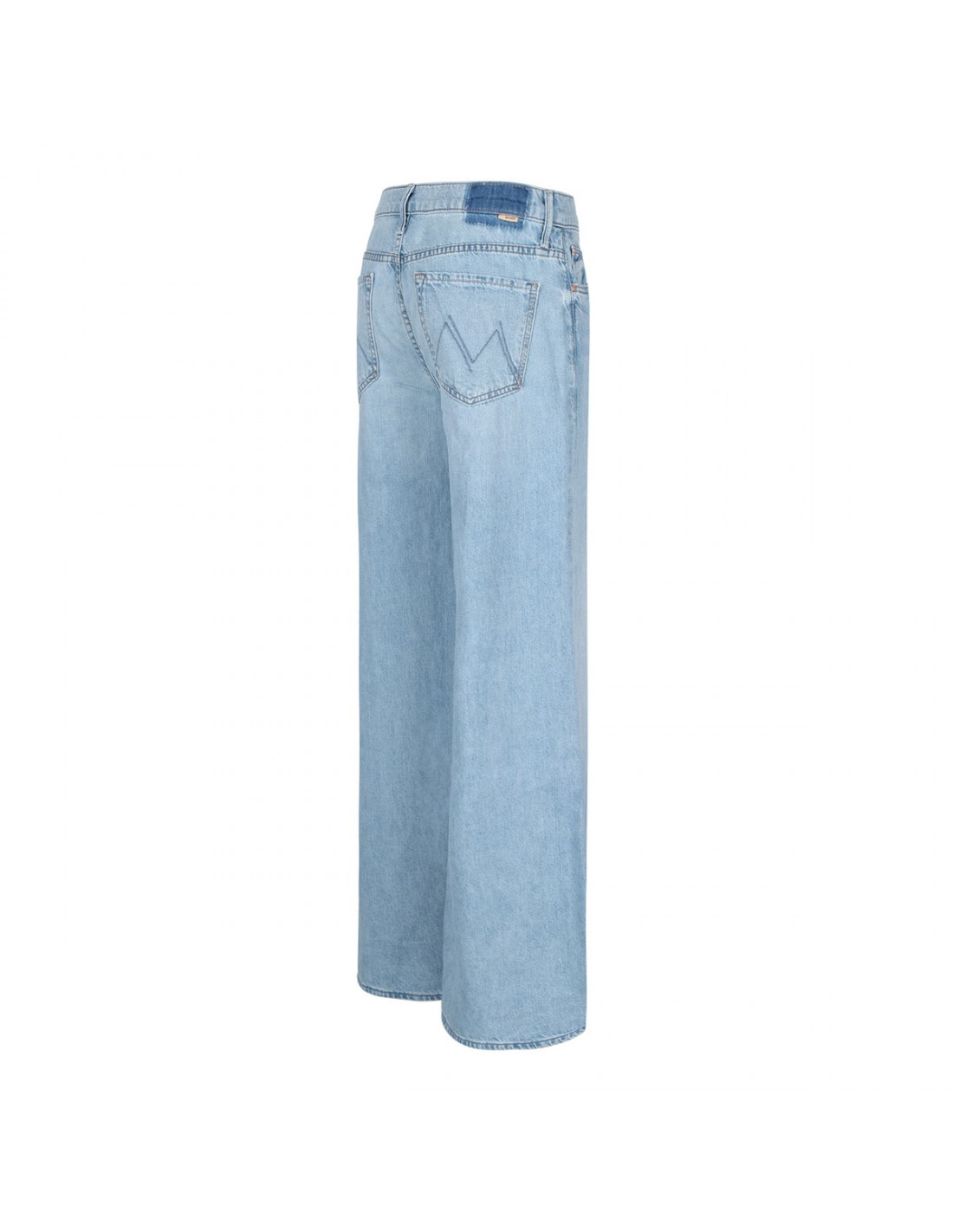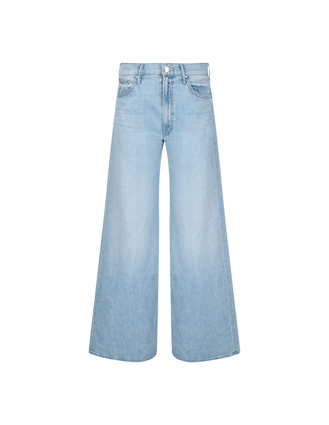 Light blue denim The Undercover jeans from Mother featuring wide leg, high rise, full length, clean hem, classic five pocket style, button closure, zip fly, belt loops on the waistband and M logo embroidery on back pockets.