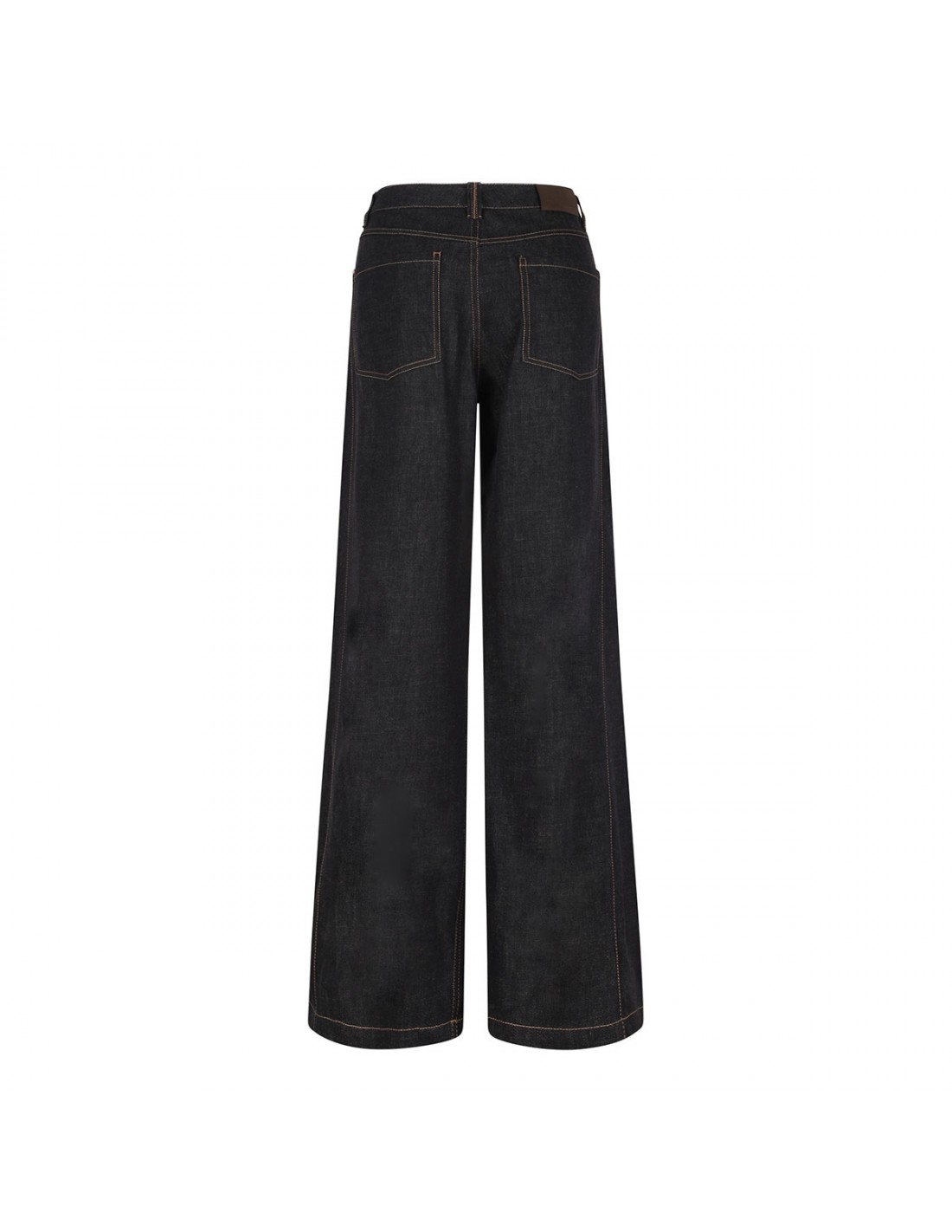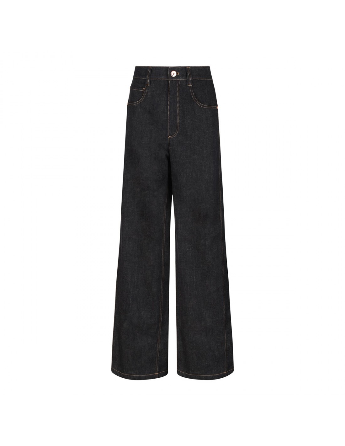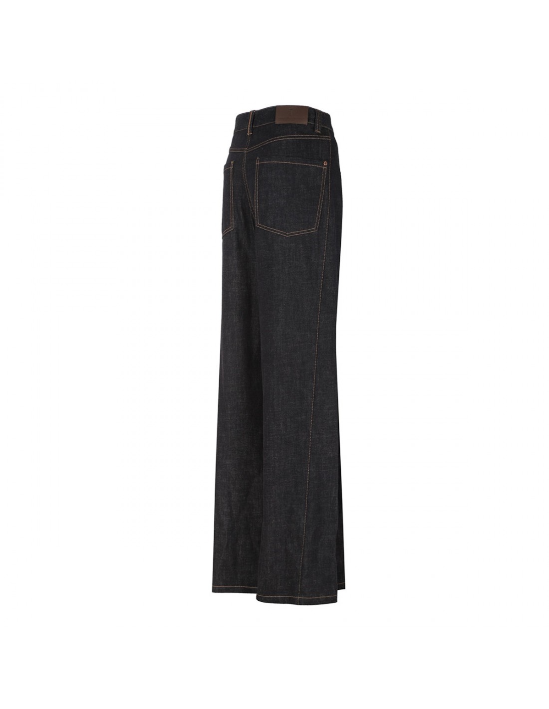 Blue no-fade denim jeans from Brunello Cucinelli featuring monili embroidery, wide and relaxed leg, zip closure with button, contrasting stitching, classic five-pocket style, belt loops on the waistband and leather label on back.