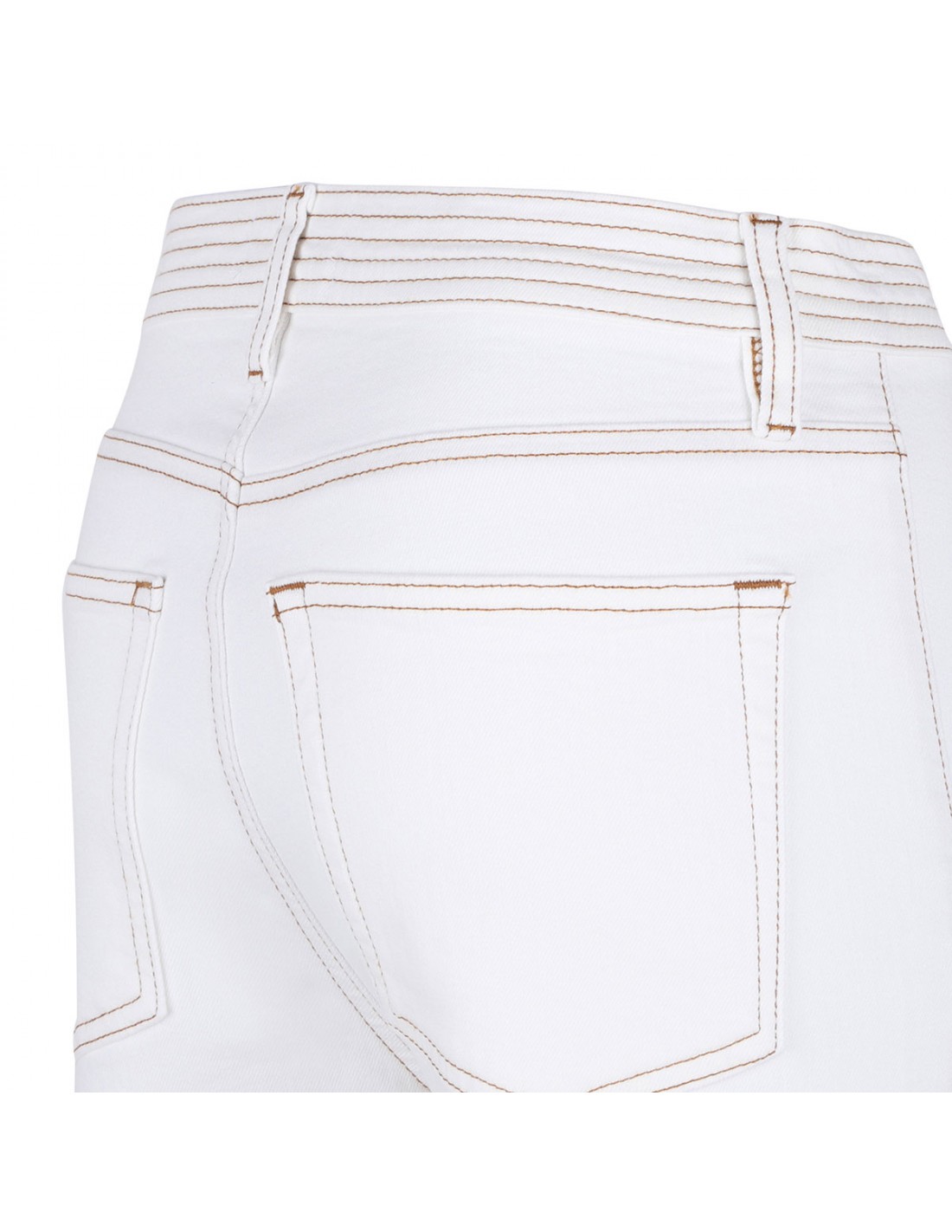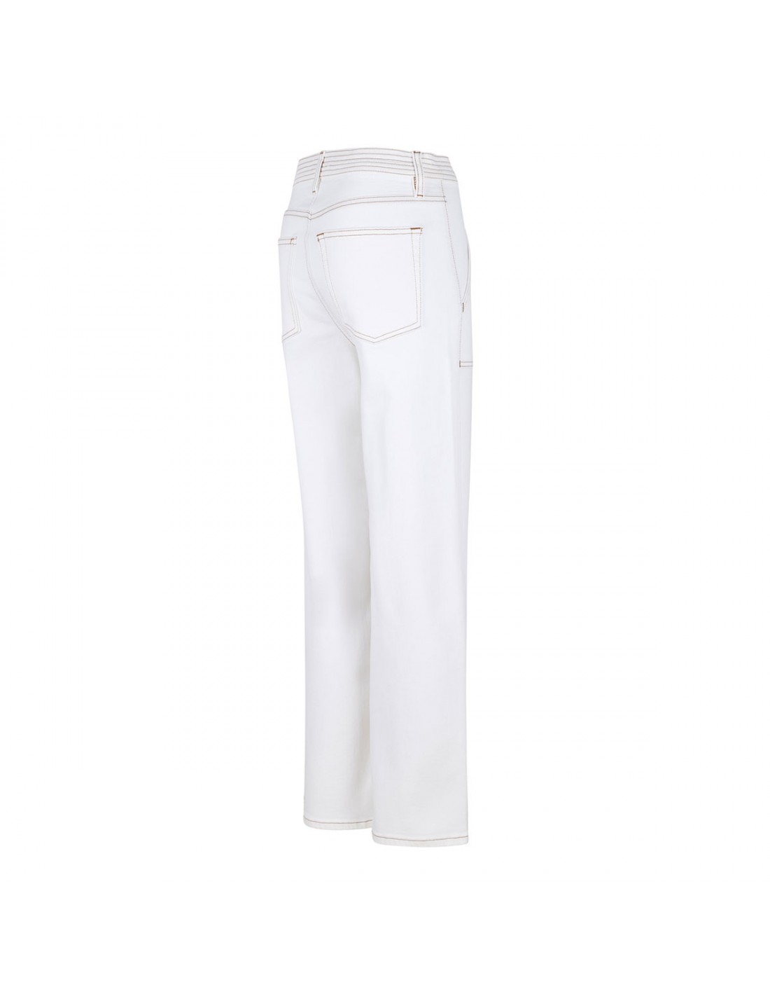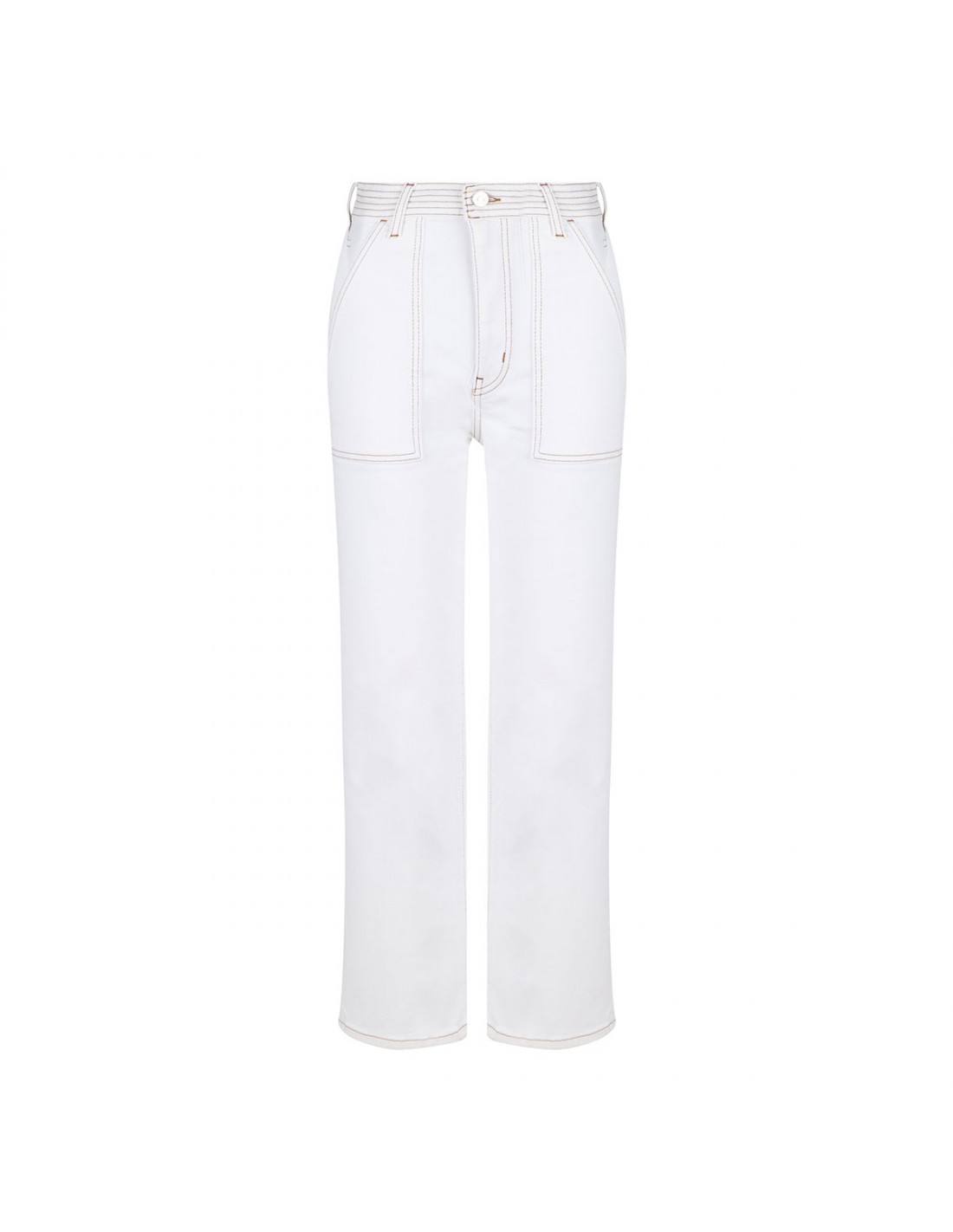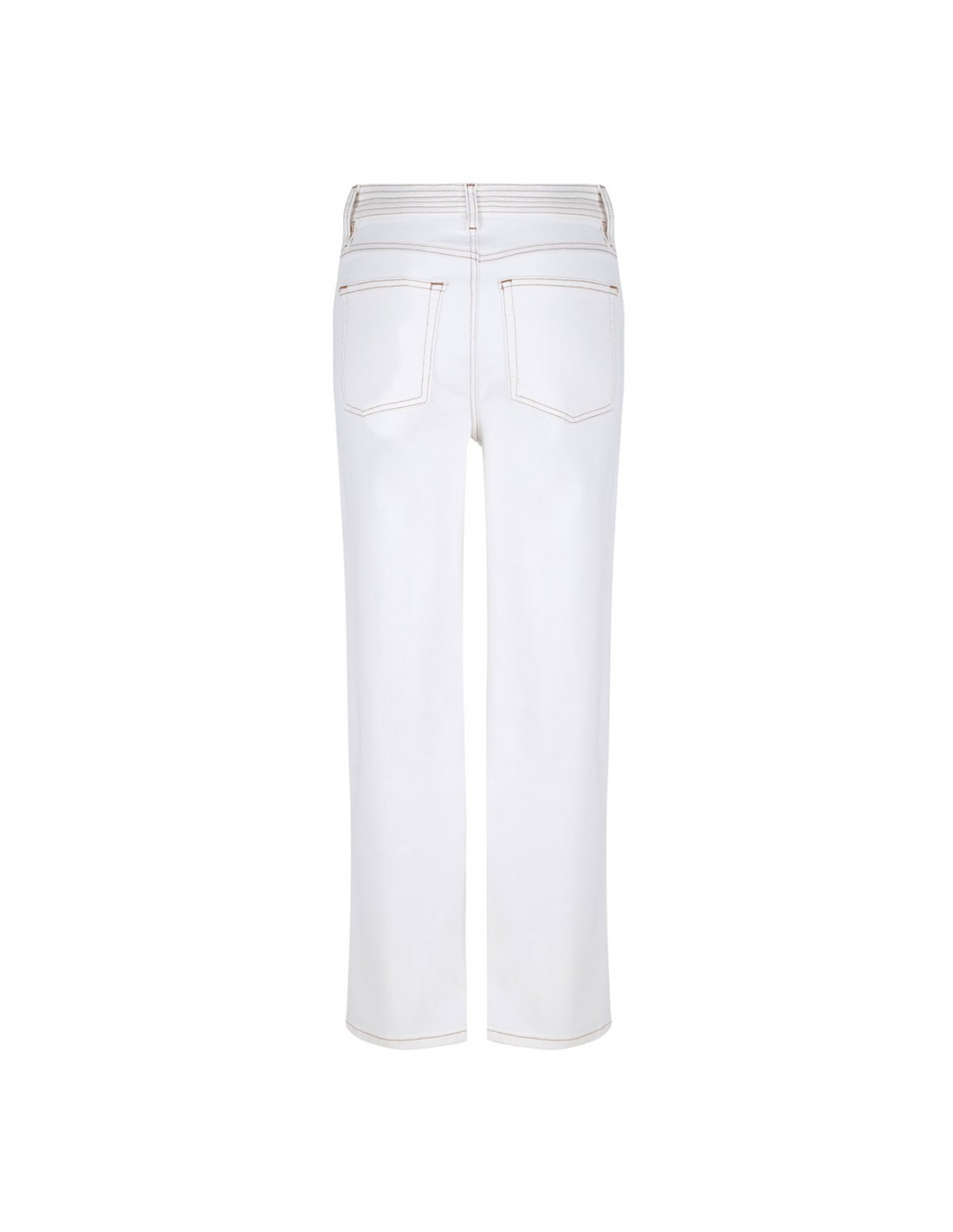 White premium cotton blend The Trapunto jeans from Frame featuring contrast stitching, utilitarian-inspired side pockets, straight leg, cropped length, button closure and zip fly, belt loops on the waistband, back patch pockets.