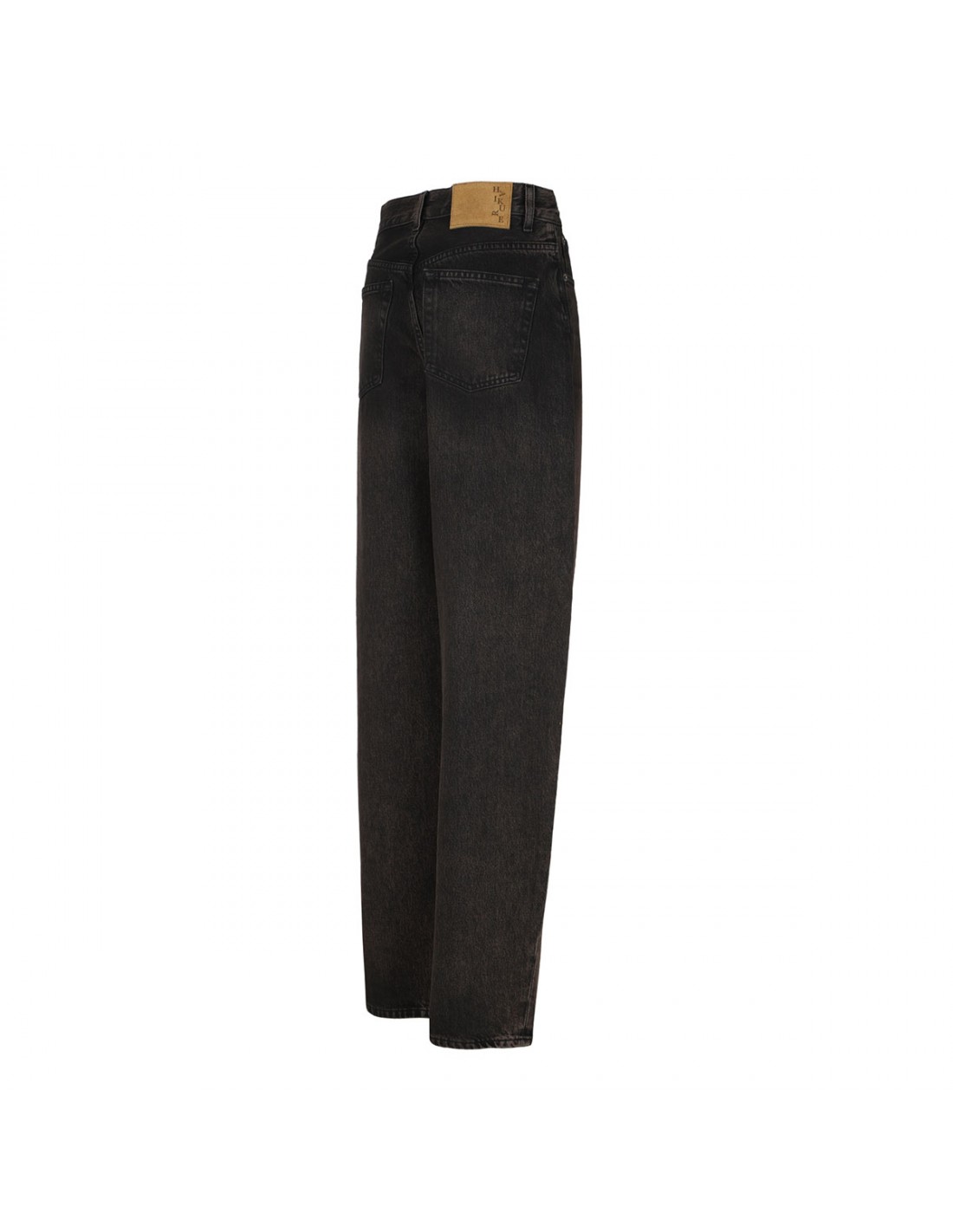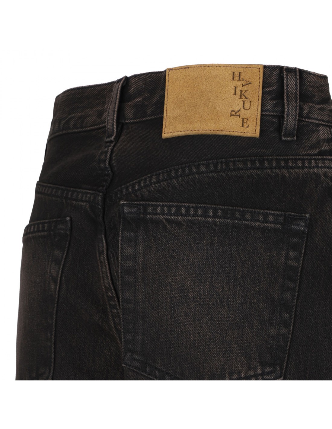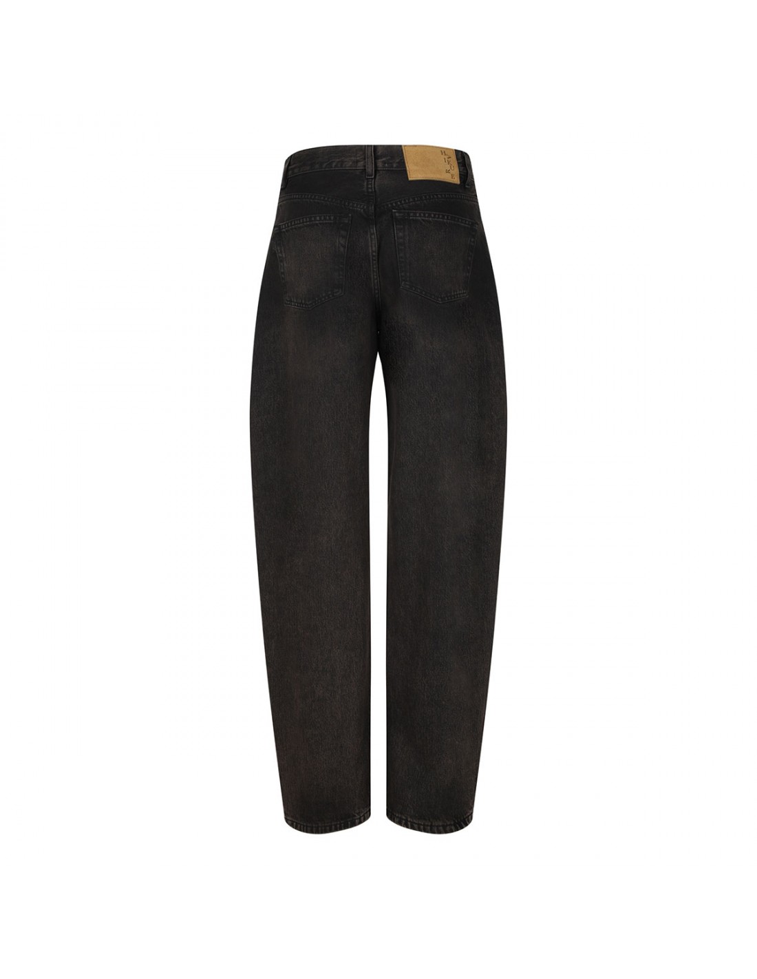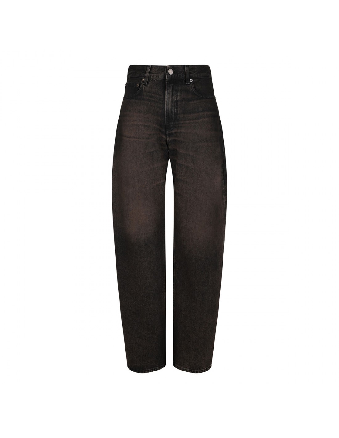 Black and brown denim Bibi jeans from Haikure featuring balloon silhouette, sculpted volume throughout the leg and tapered hem, button closure and zip fly, belt loops on the waistband, classic five-pocket style and leather logo tag at back waist.