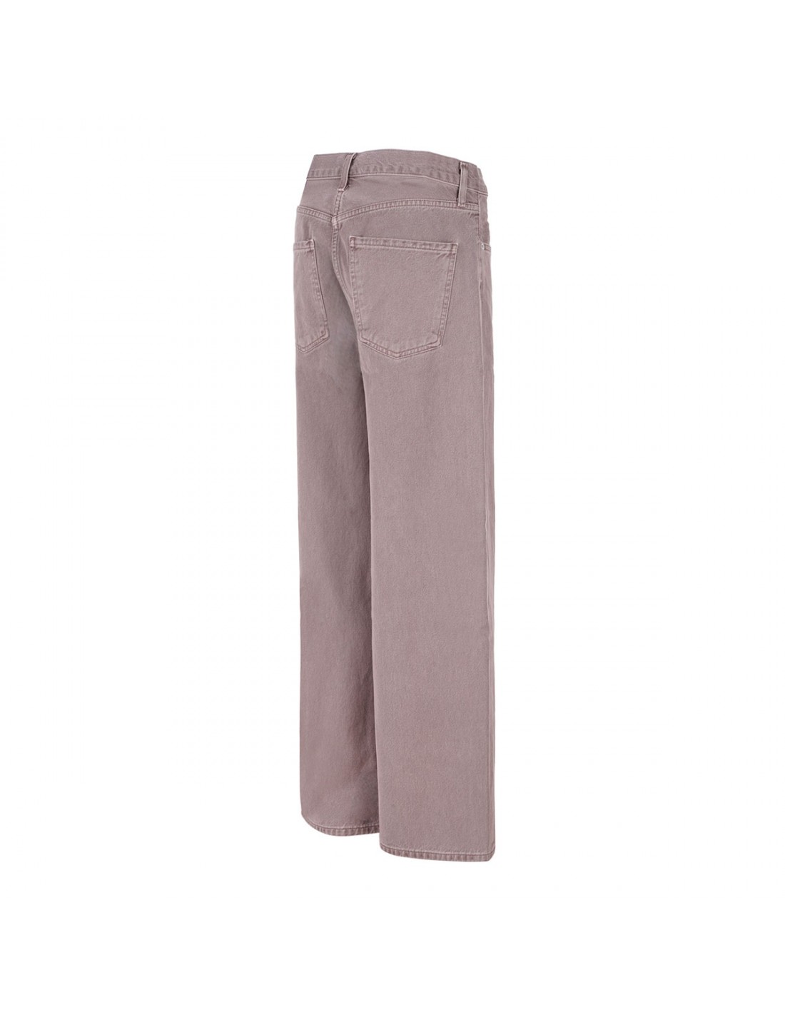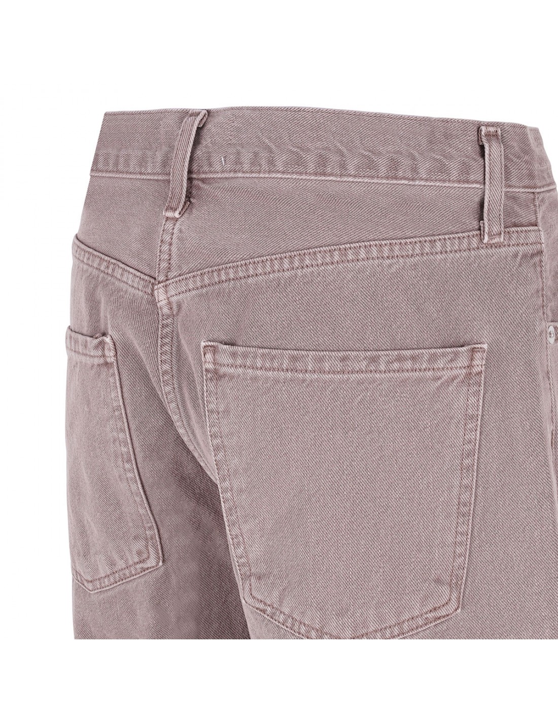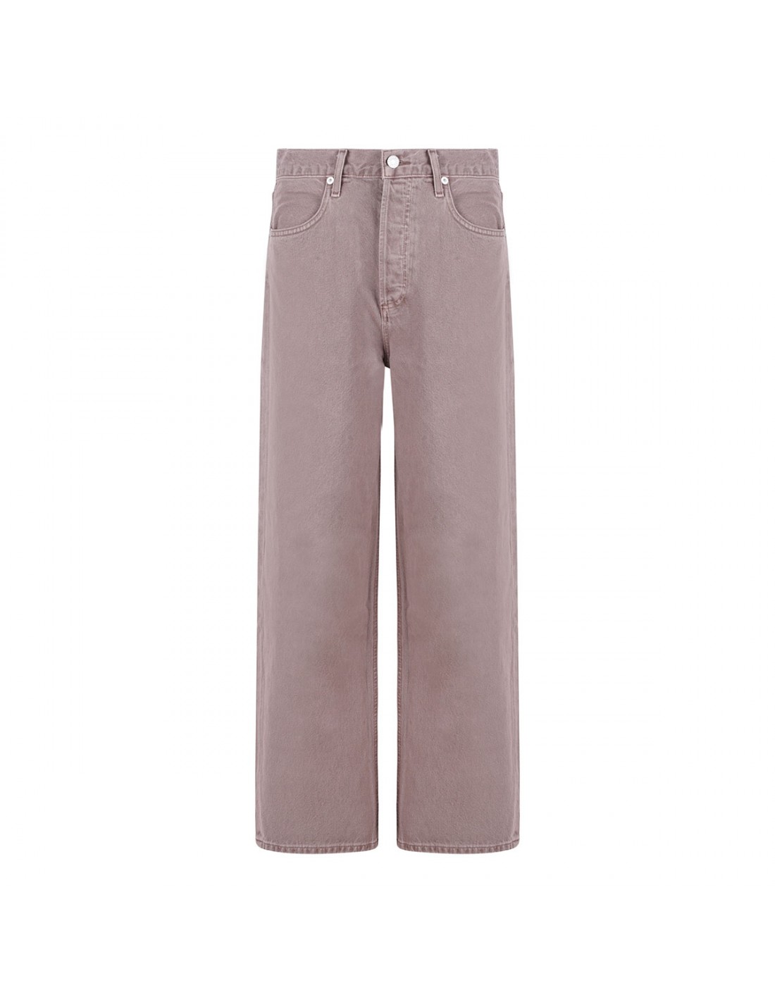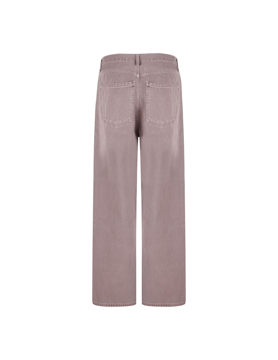 Dark dusty rose-tone denim Ren jeans from Agolde featuring wide-leg, high-rise, subtle marbling, cropped length, relaxed silhouette, button closure and zip fly, side pockets, belt loops on the waistband, back pockets.