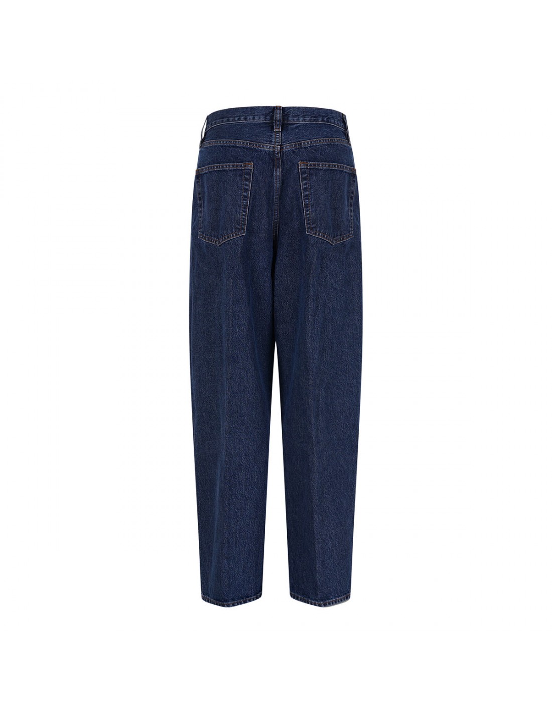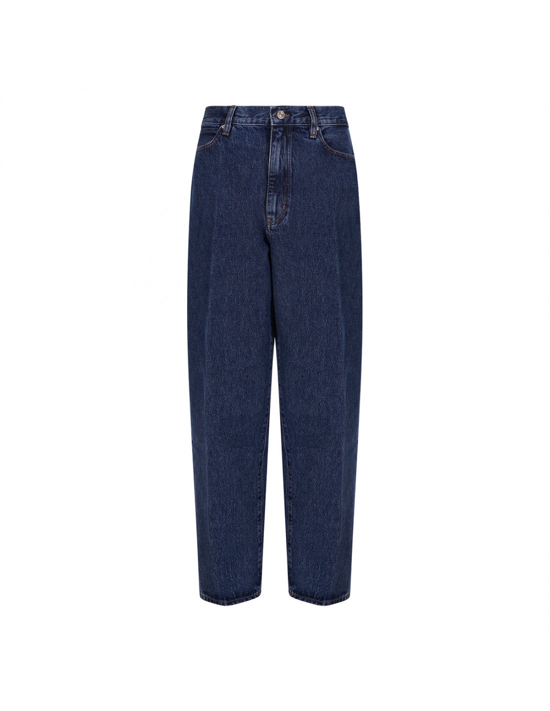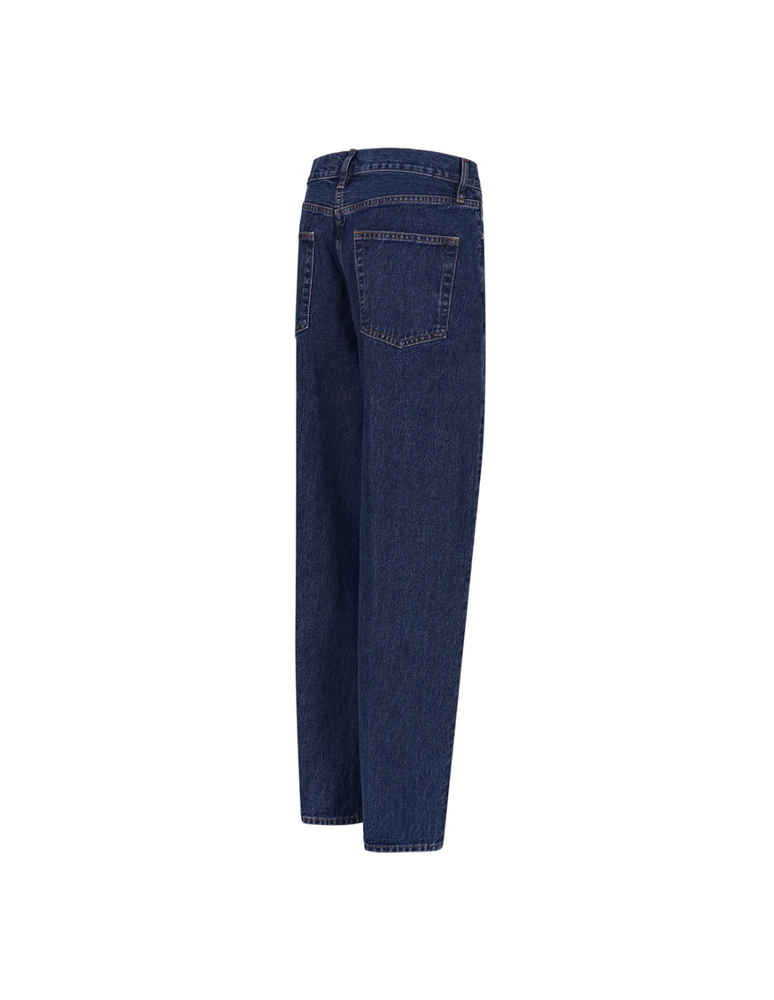 Blue denim The Neat jeans from Frame featuring straight-leg, high-rise, zip fly and button fastening, classic five-pocket style, belt loops on the waistband, ankle length.
