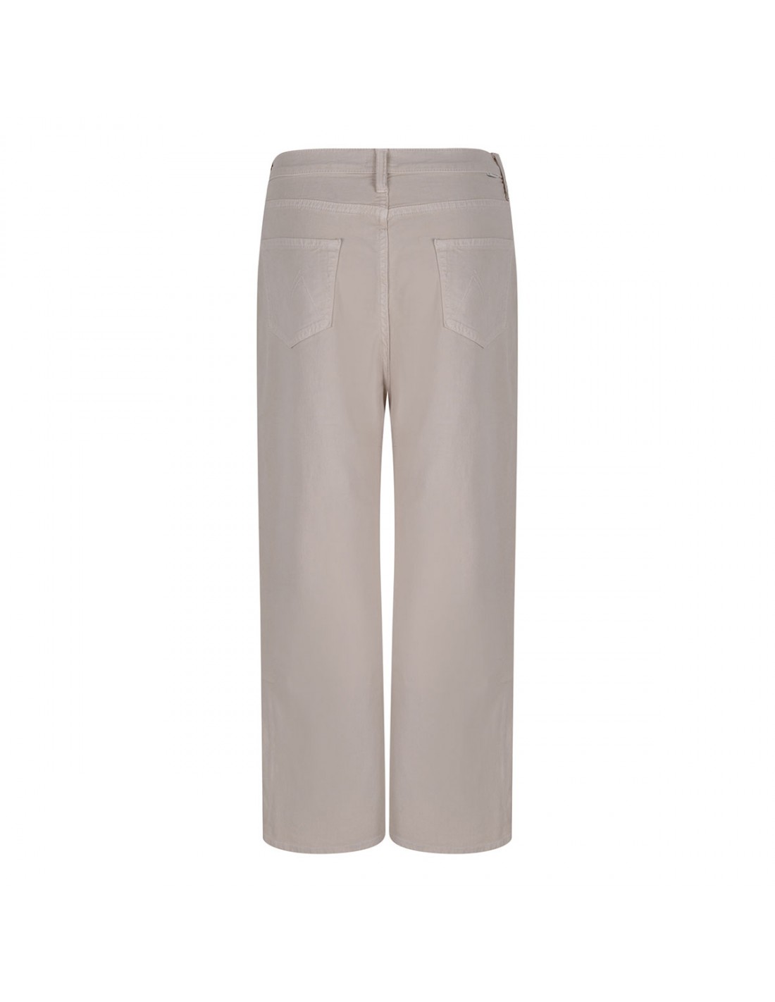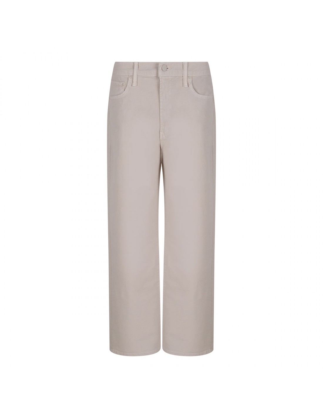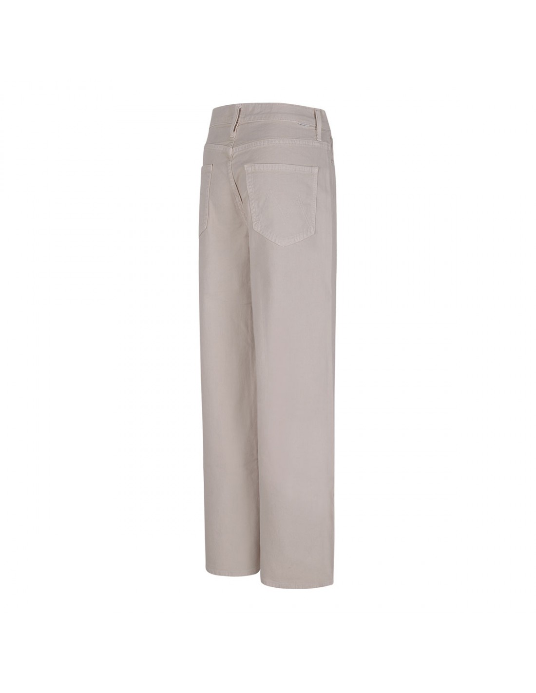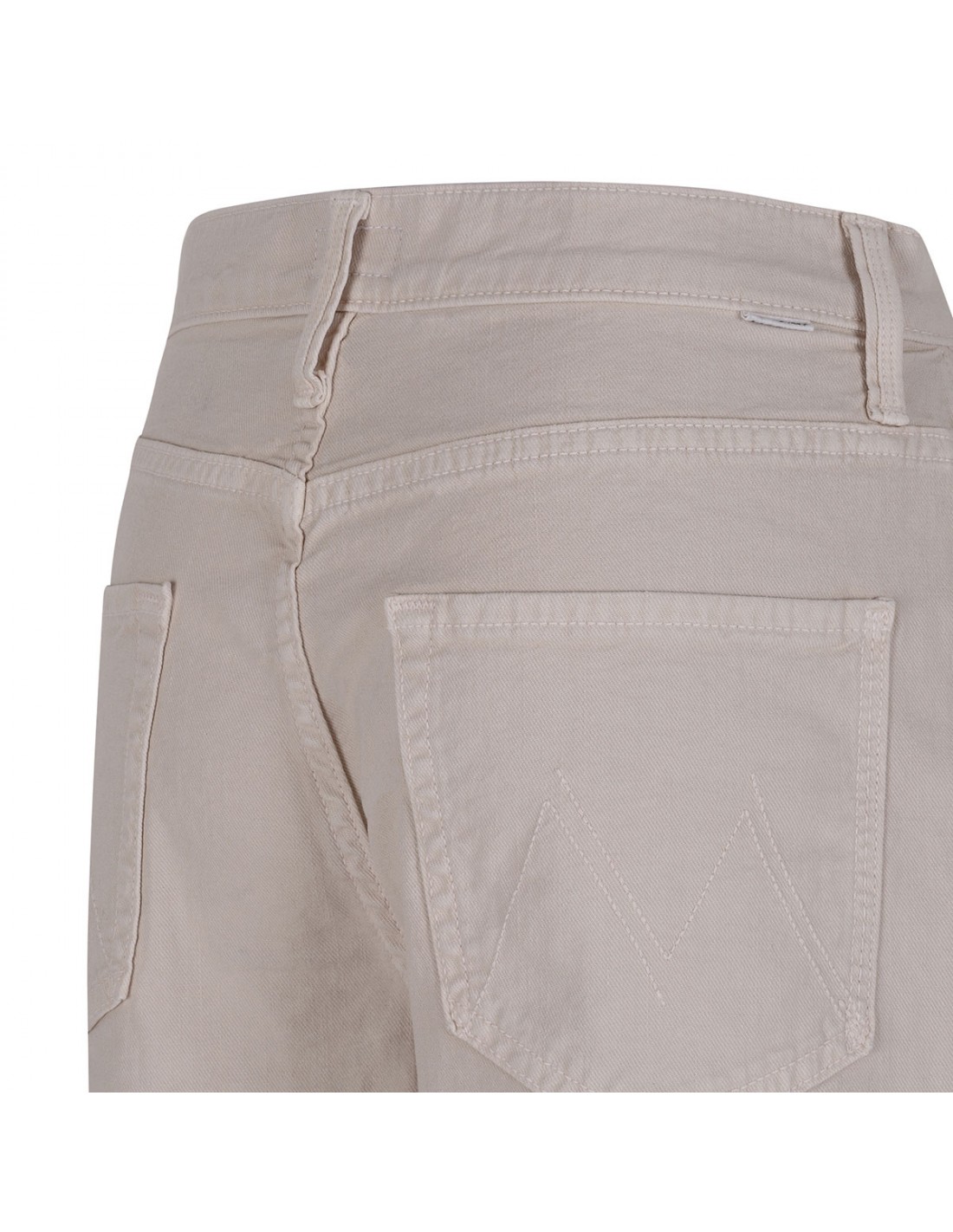 Light gray stretch denim The Dodger Flood jeans from Mother featuring slouchy fit, loose straight leg, clean hem, classic five pocket style, button closure, zip fly, belt loops on the waistband and M logo embroidery on back pockets.