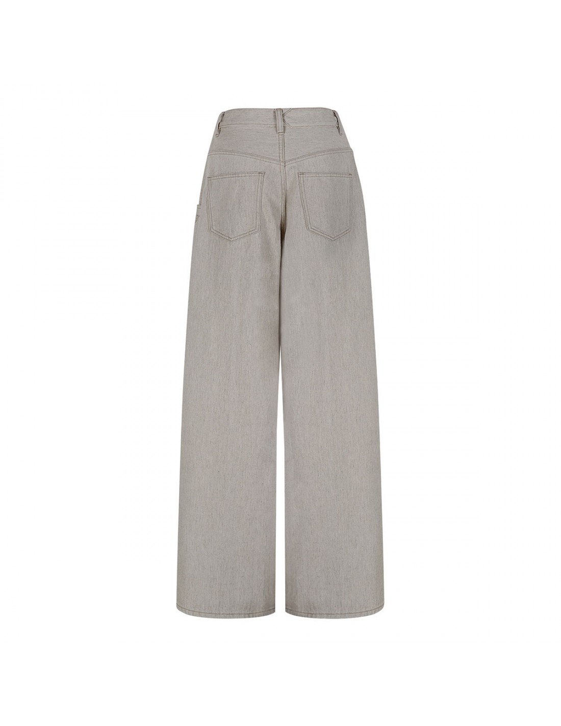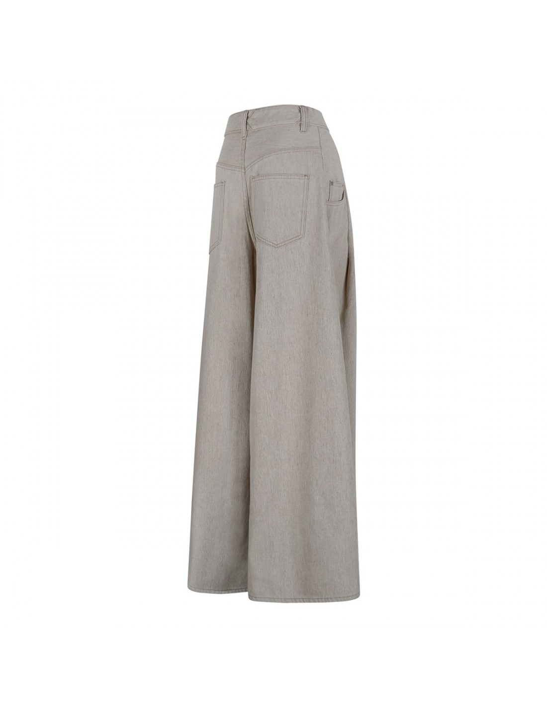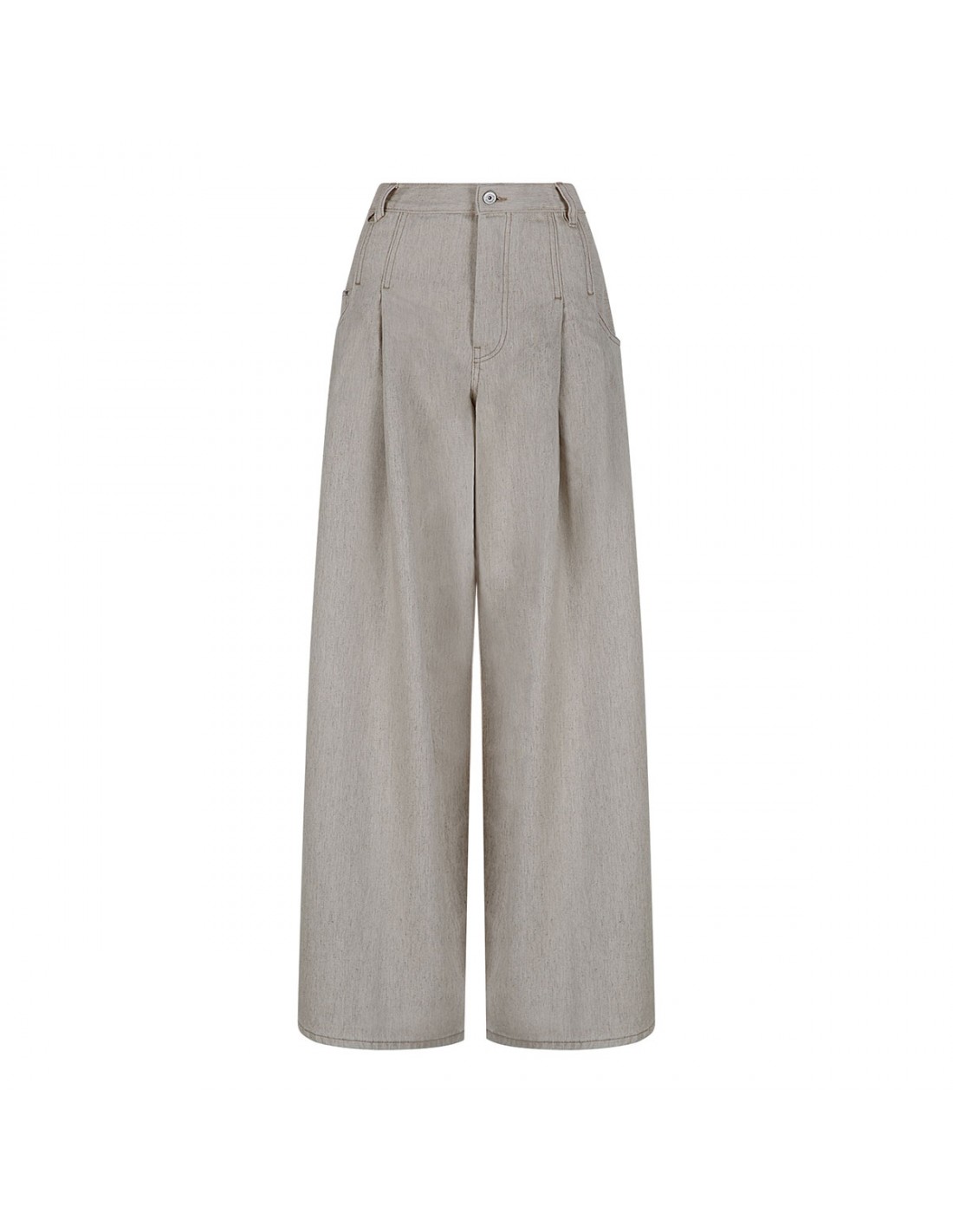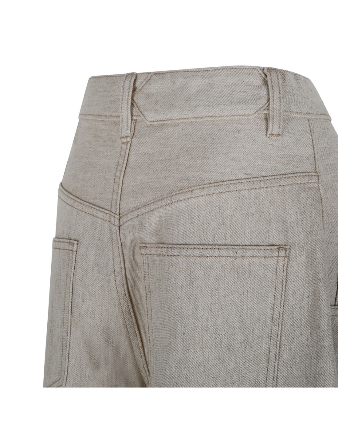 Light beige denim The Souro de-Nîmes denim pants from Jacquemus featuring wide pleated silhouette, contrast stitching, belt loops on the waistband, button closure and zip fly, classic five-pocket style, triangular notch on the back, embroidered J detail.