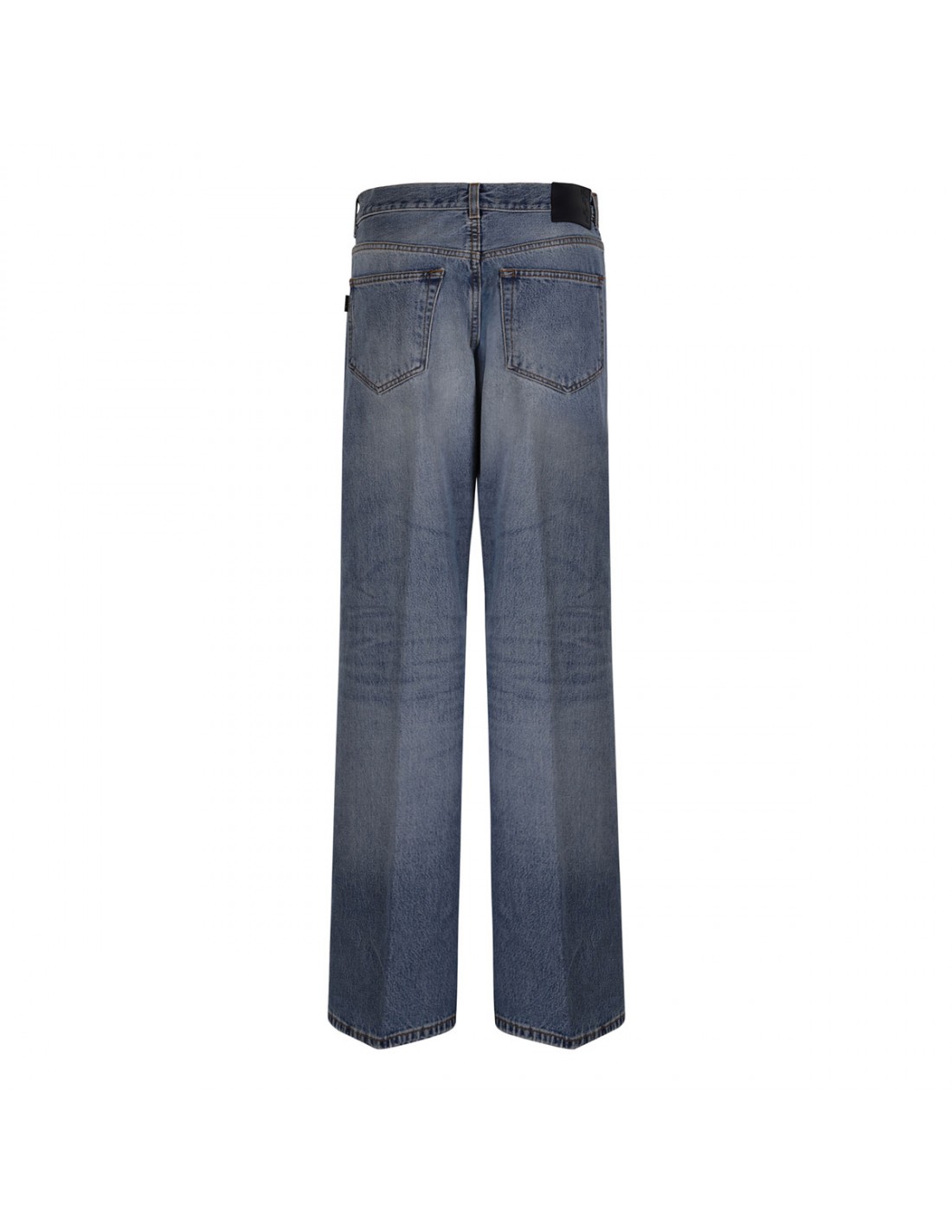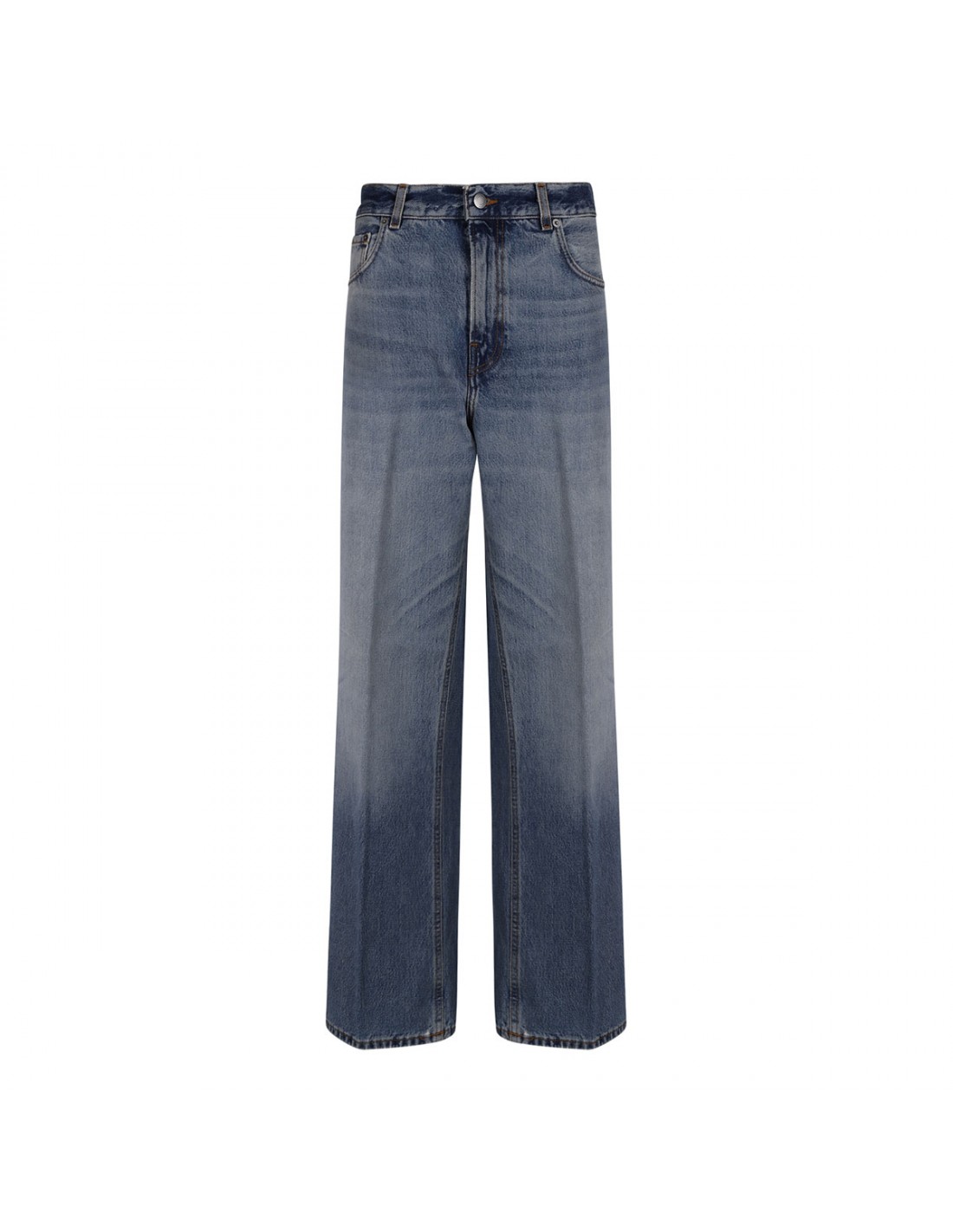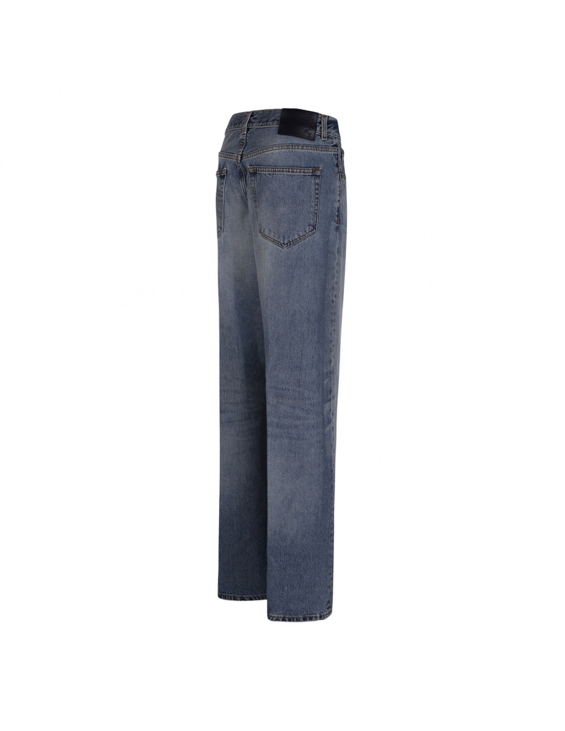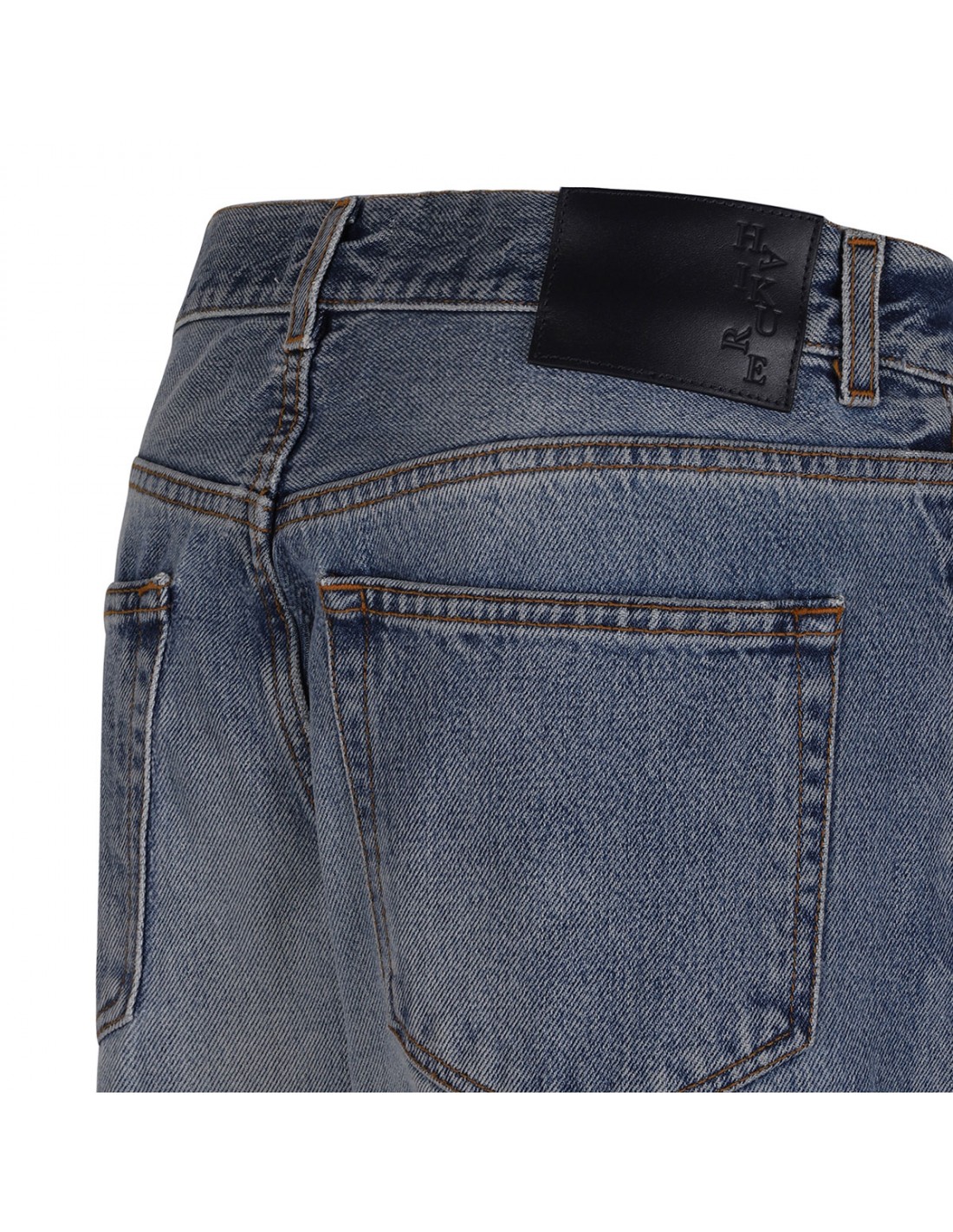 Blue denim Bonnie jeans from Haikure featuring whiskering and fading throughout, belt loops on the waistband, logo label on back waist, classic five-pocket style, button closure and zip fly, straight leg.
