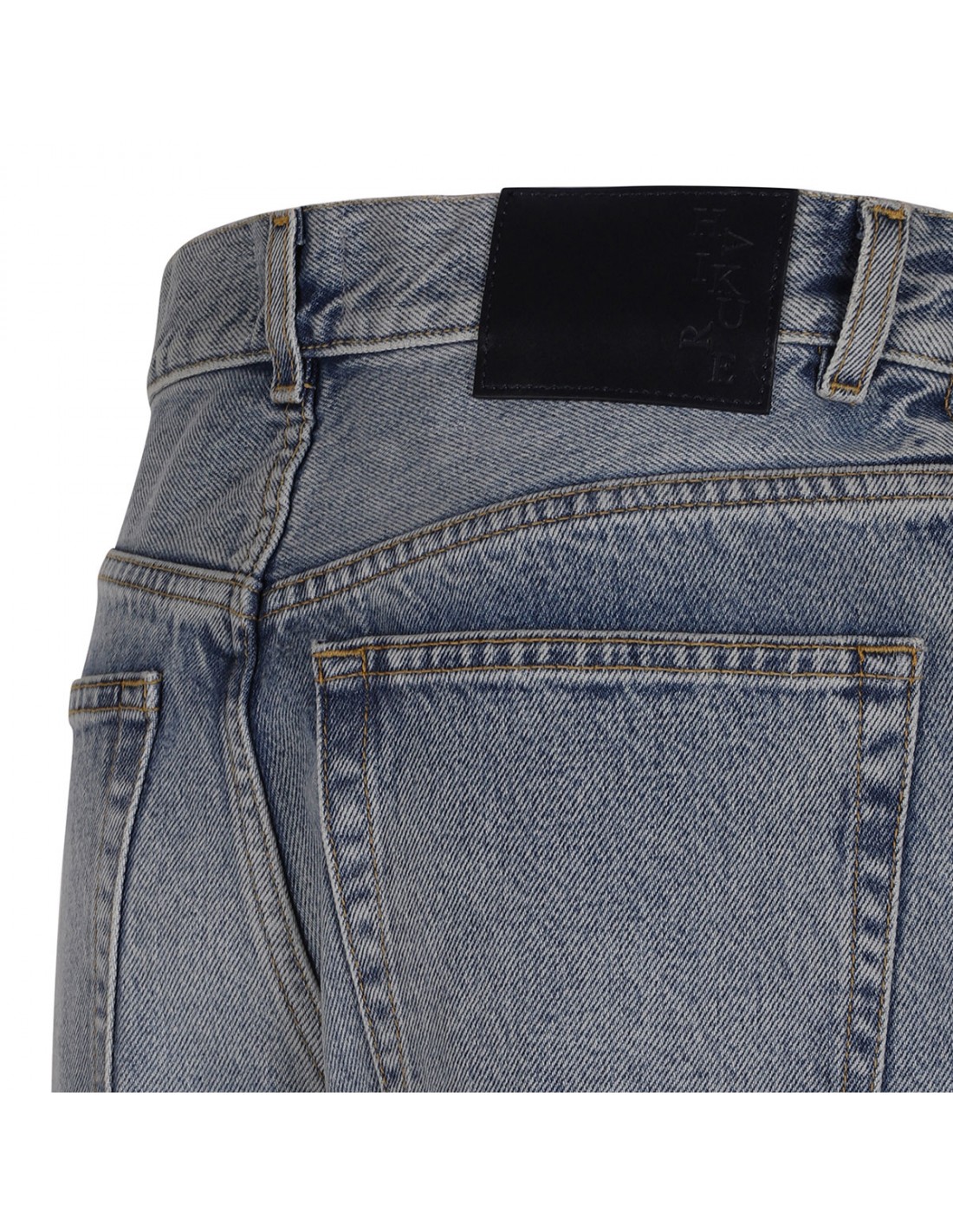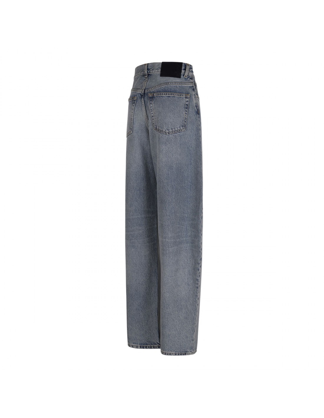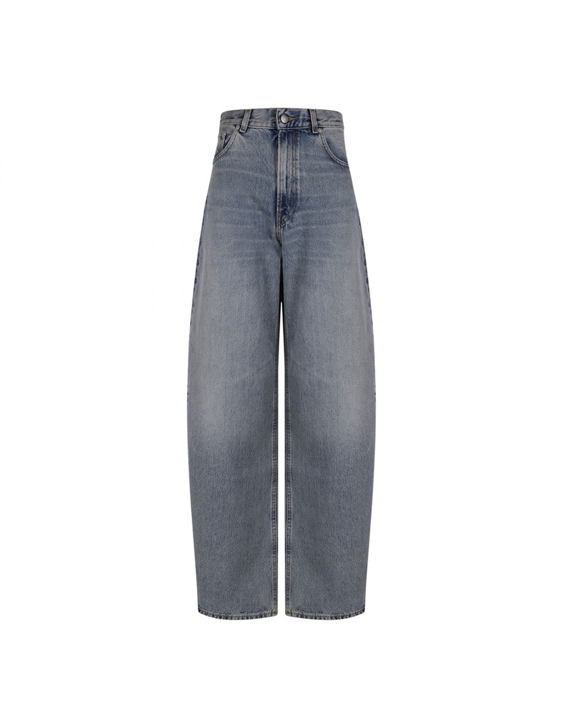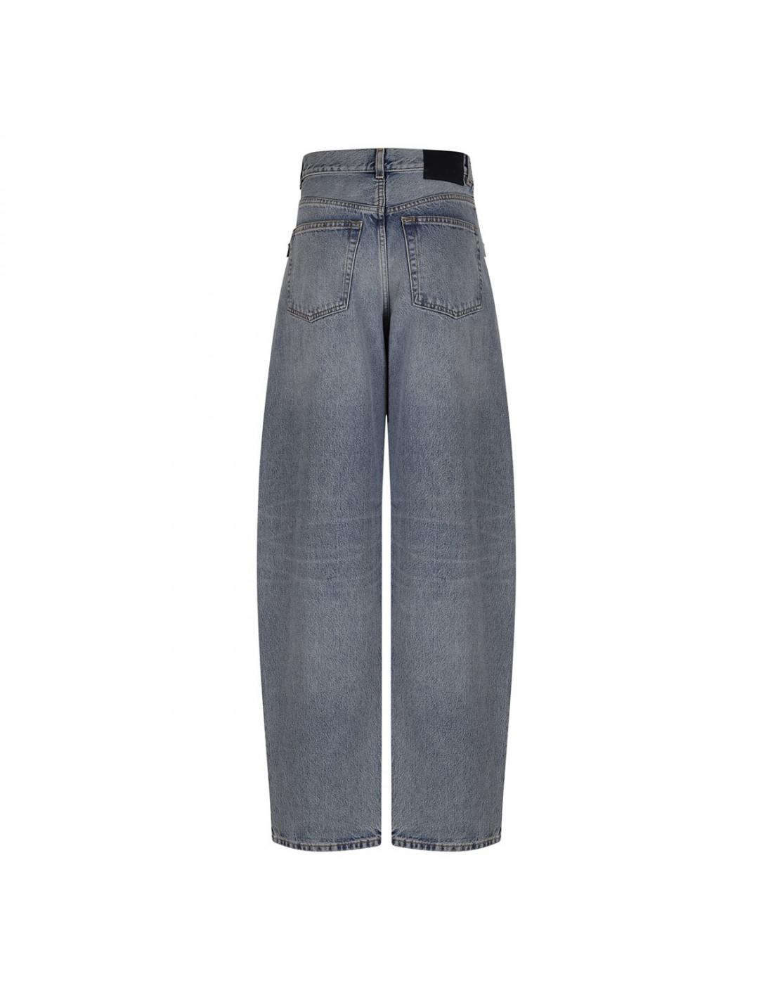 Blue denim Bibi jeans from Haikure featuring balloon silhouette, sculpted volume throughout the leg and tapered hem, button closure and zip fly, belt loops on the waistband, classic five-pocket style and leather logo tag at back waist.