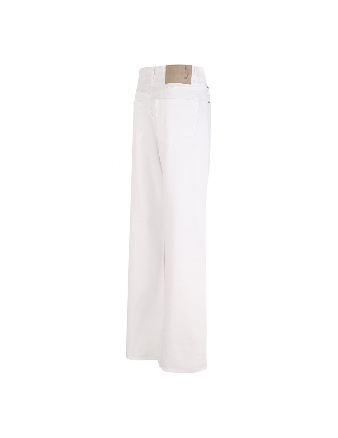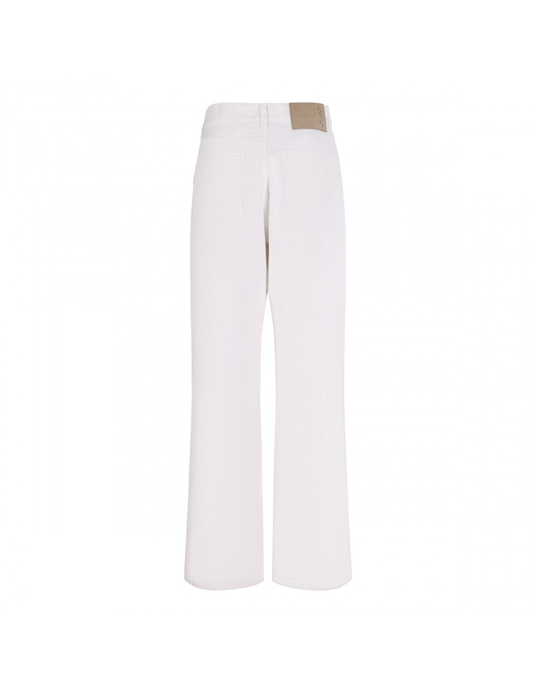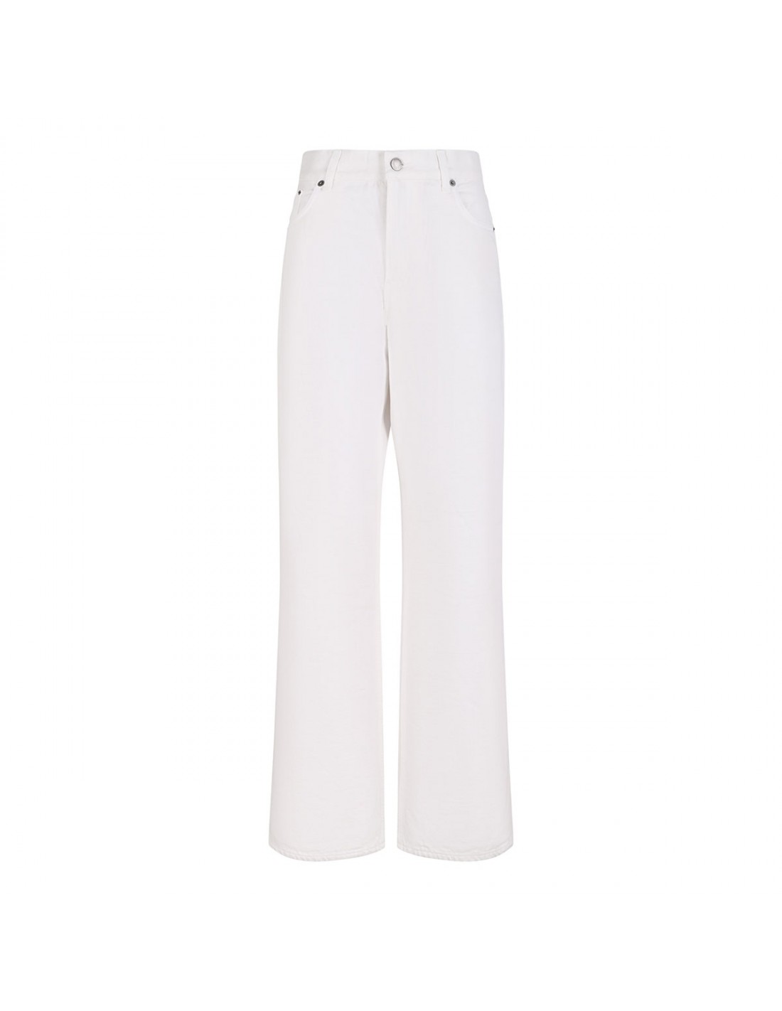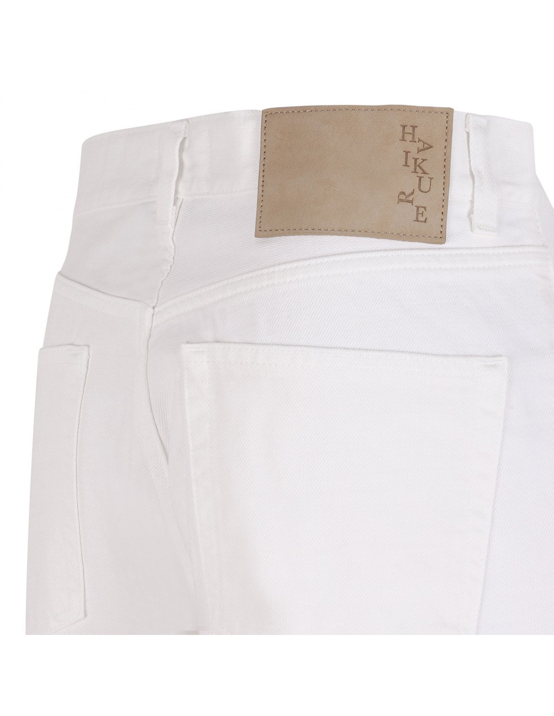 Off-white denim Korea Bull 44 jeans from Haikure featuring wide leg, button closure and zip fly, classic five-pocket style, belt loops on the waistband, leather logo tag on back-waist.